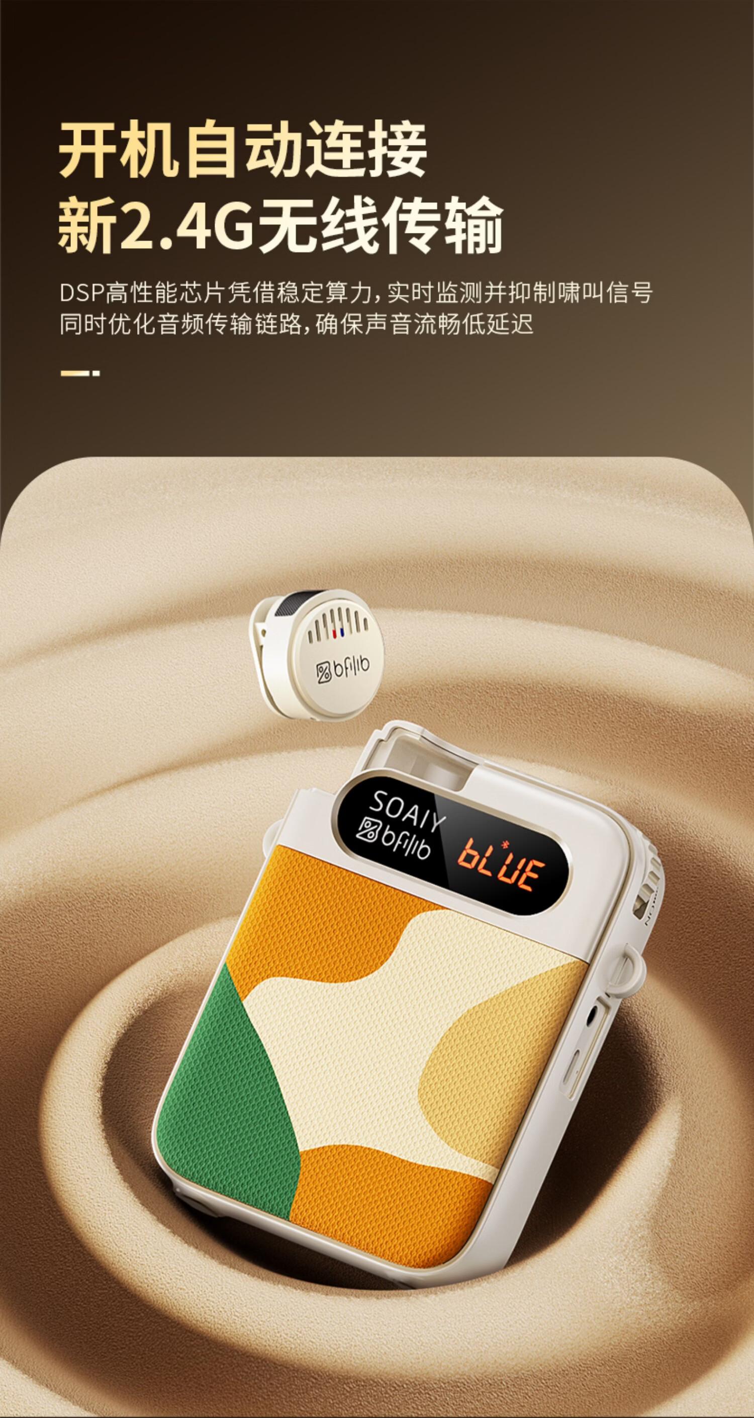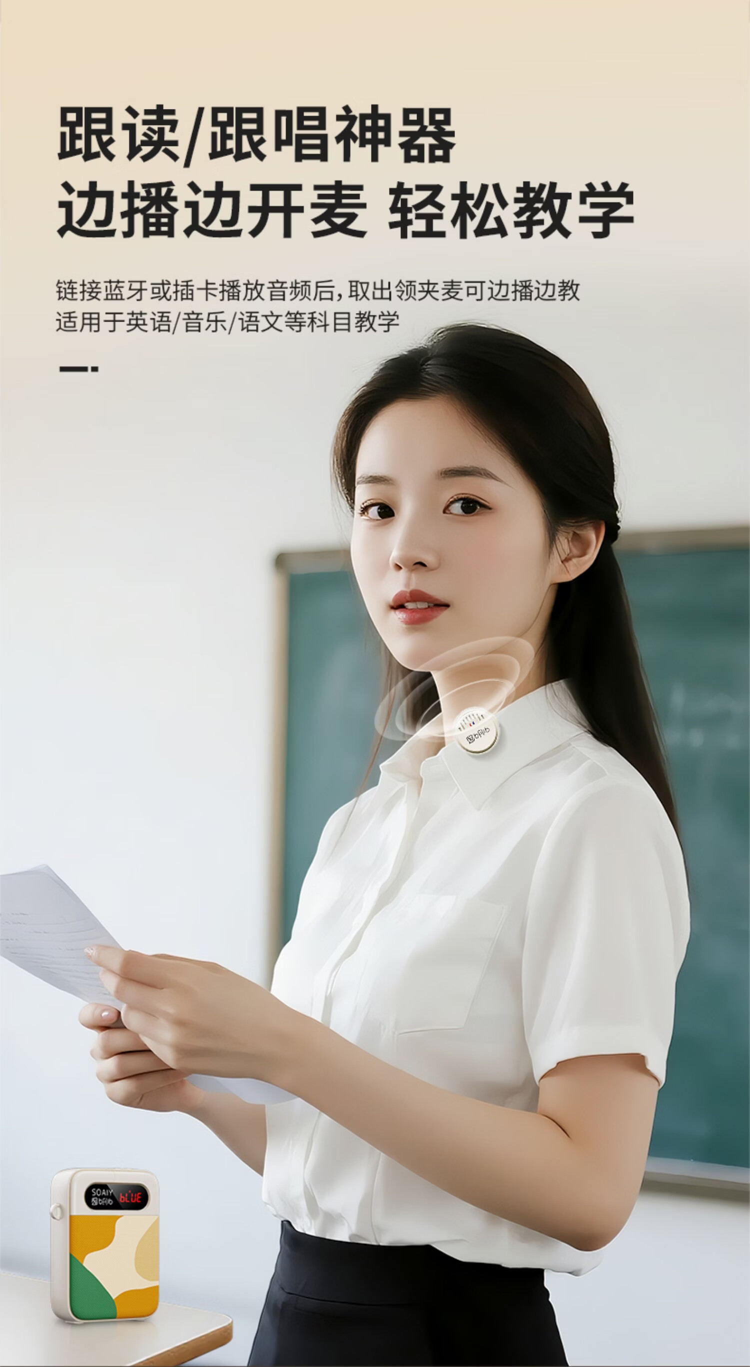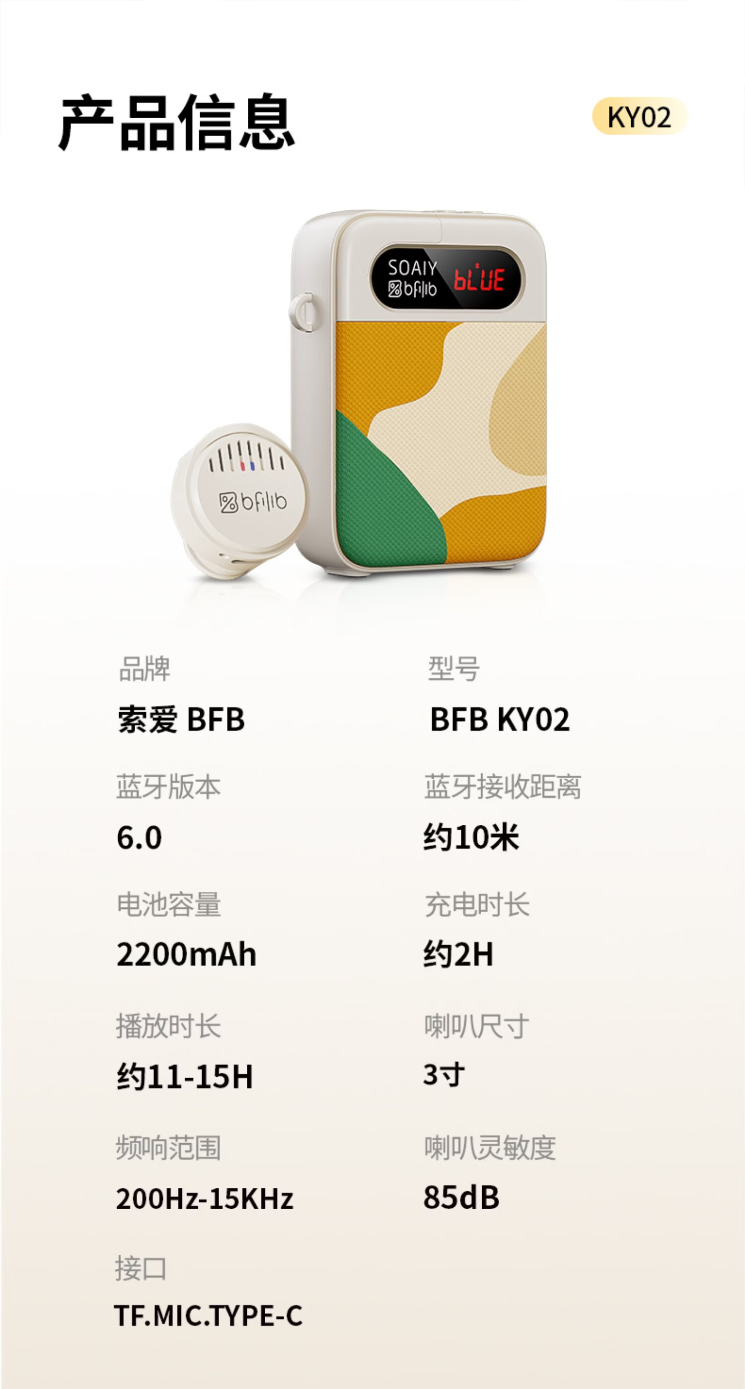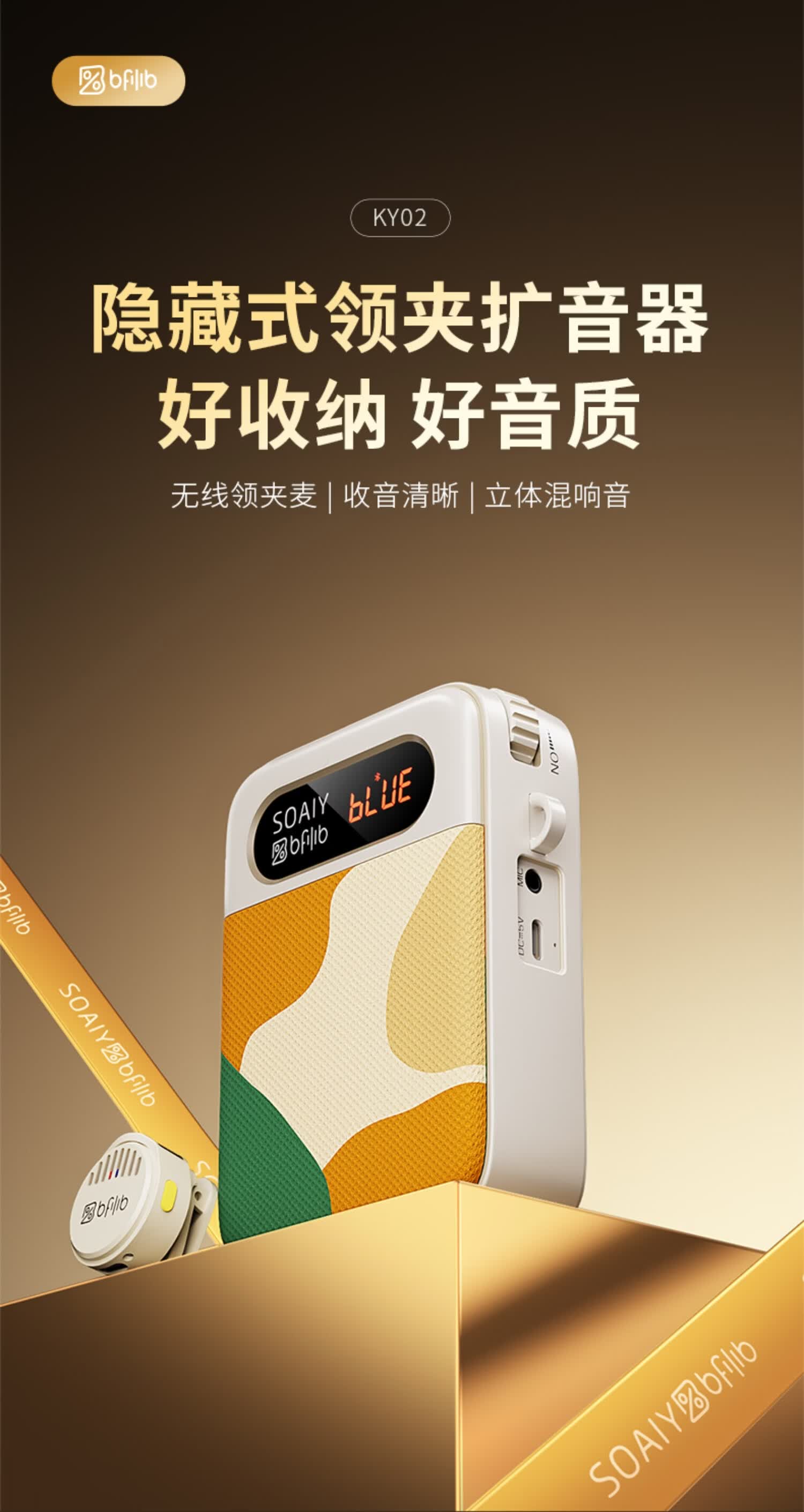 索爱(soaiy)KY02无线领夹防啸叫小蜜蜂扩音器教师专用长续航蓝牙音箱音响麦克风上课教学导游户外背带便携白