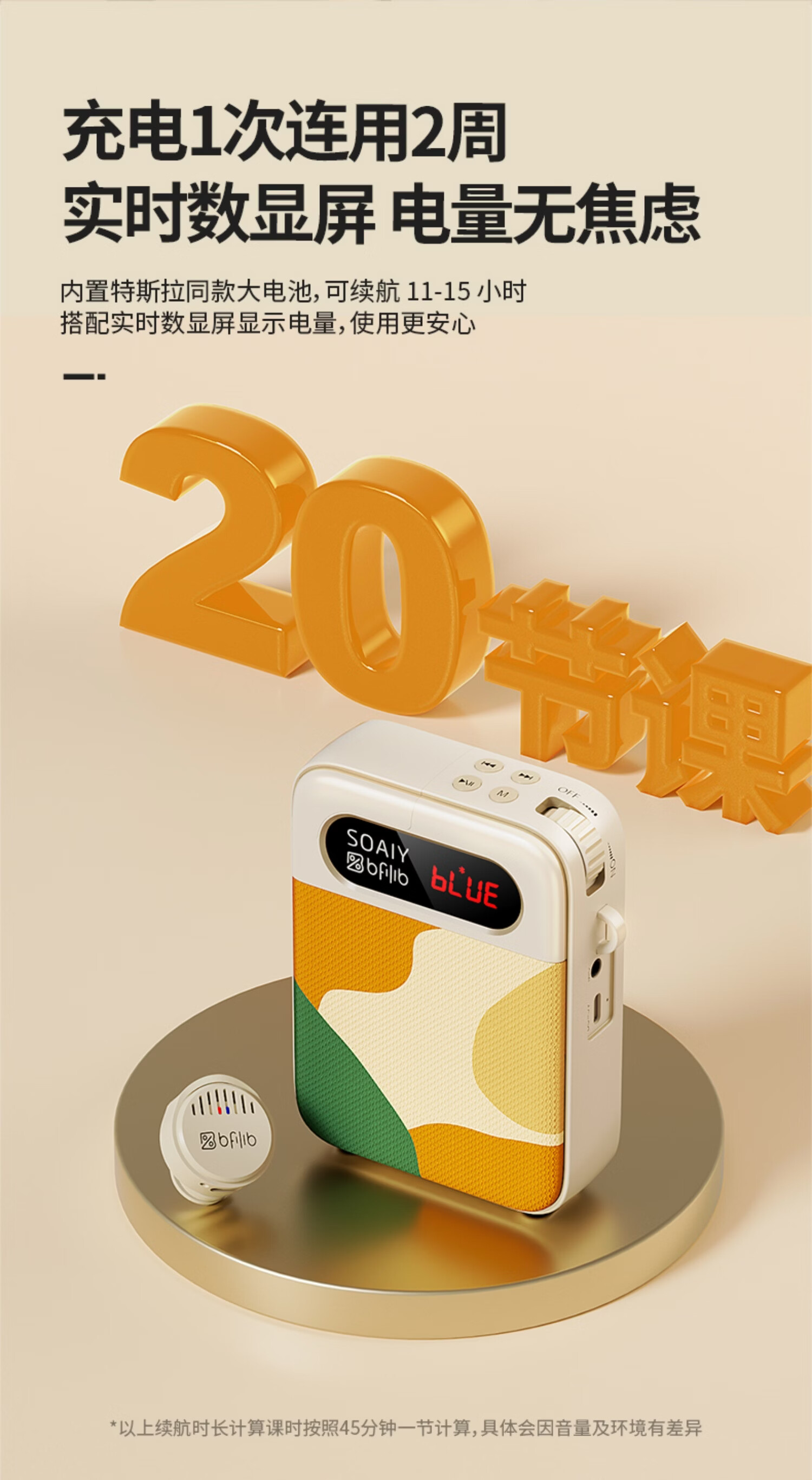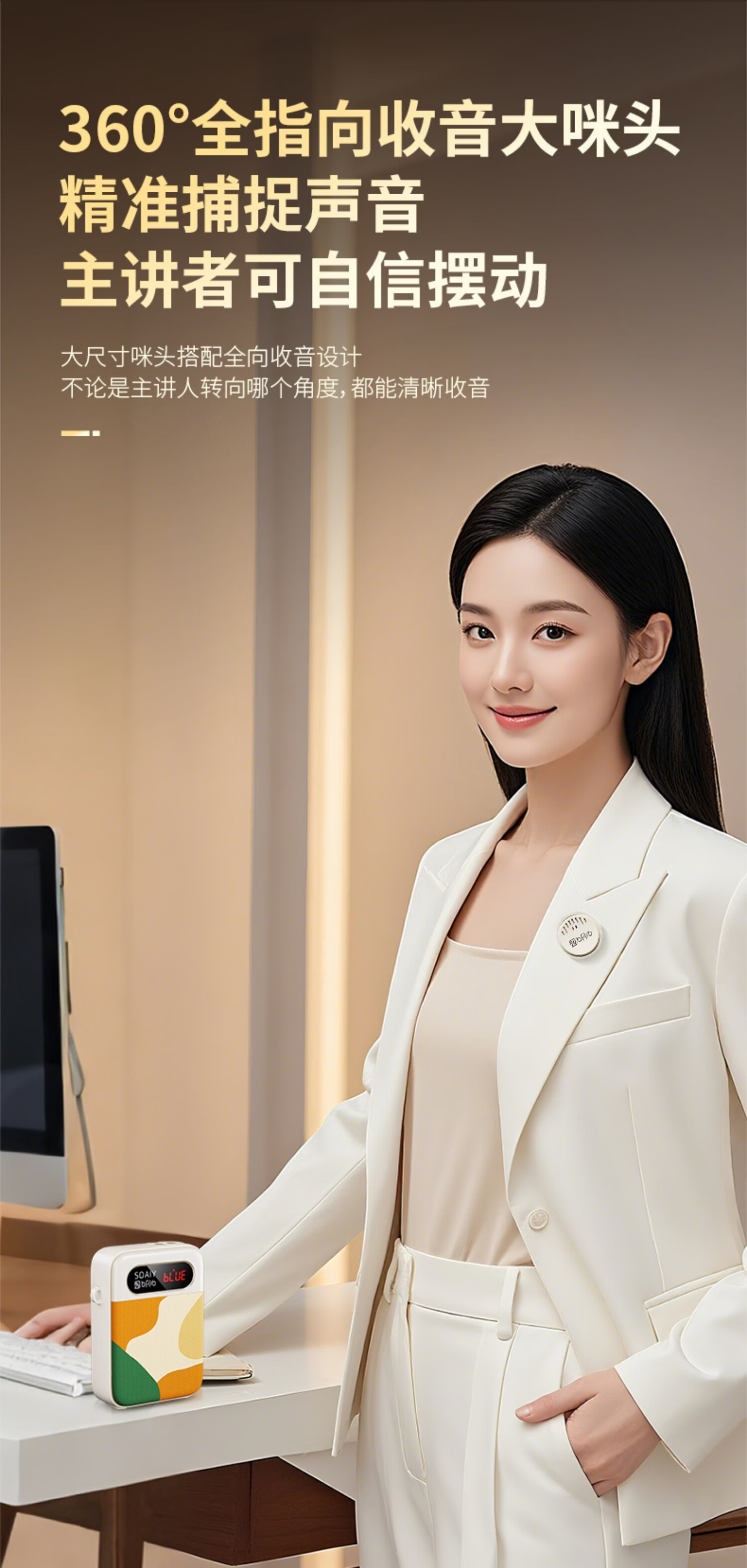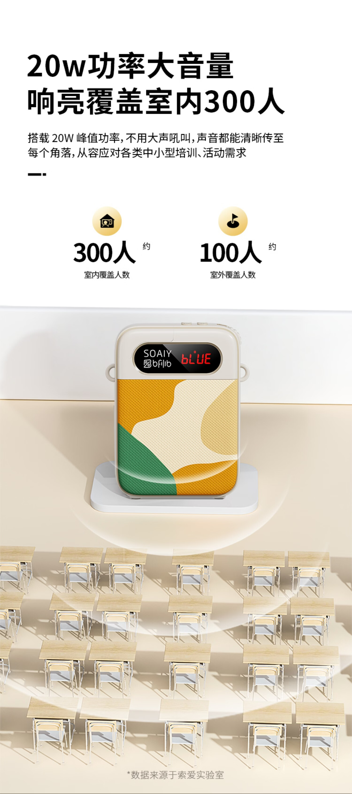 索爱(soaiy)KY02无线领夹防啸叫小蜜蜂扩音器教师专用长续航蓝牙音箱音响麦克风上课教学导游户外背带便携白