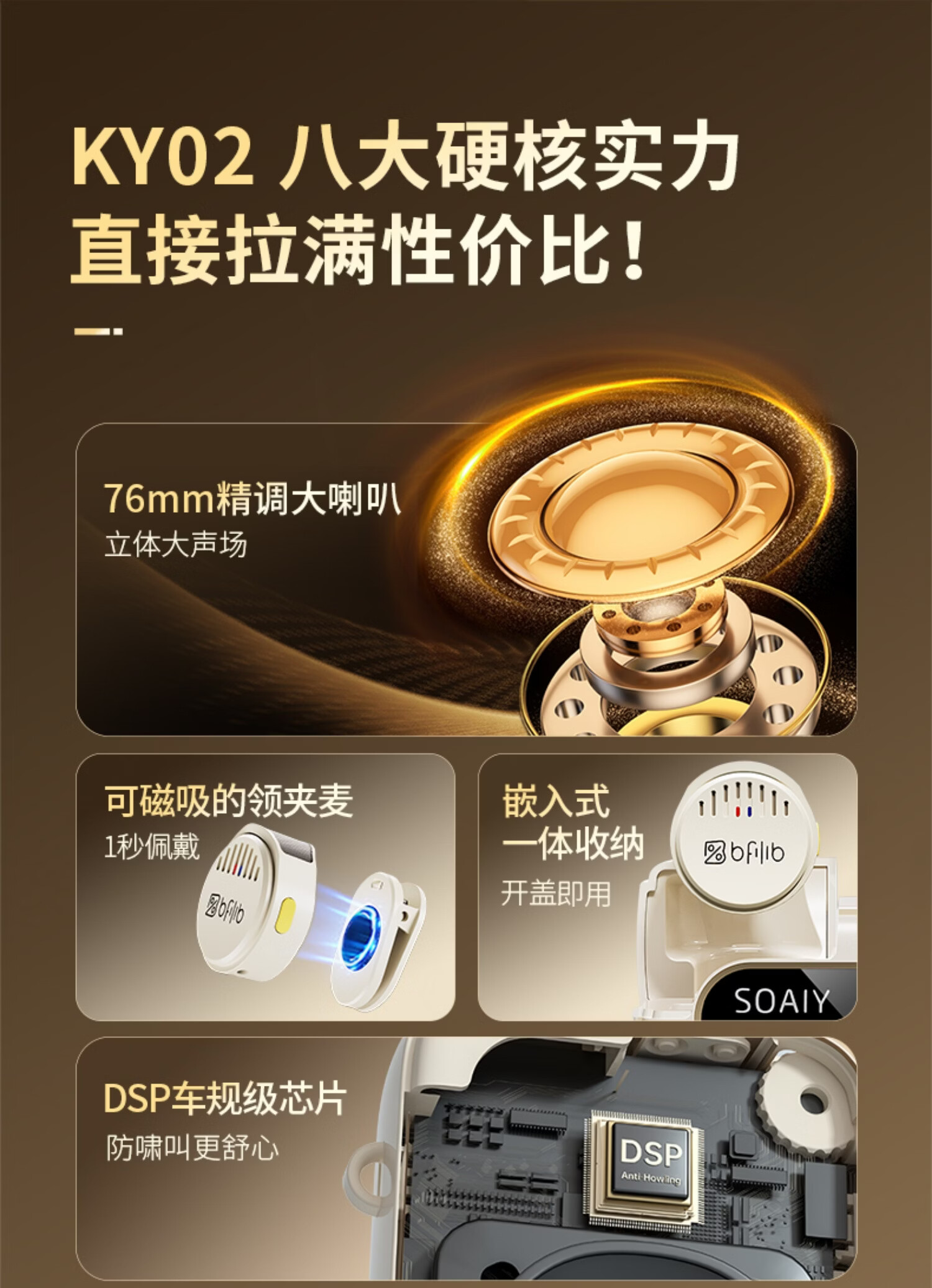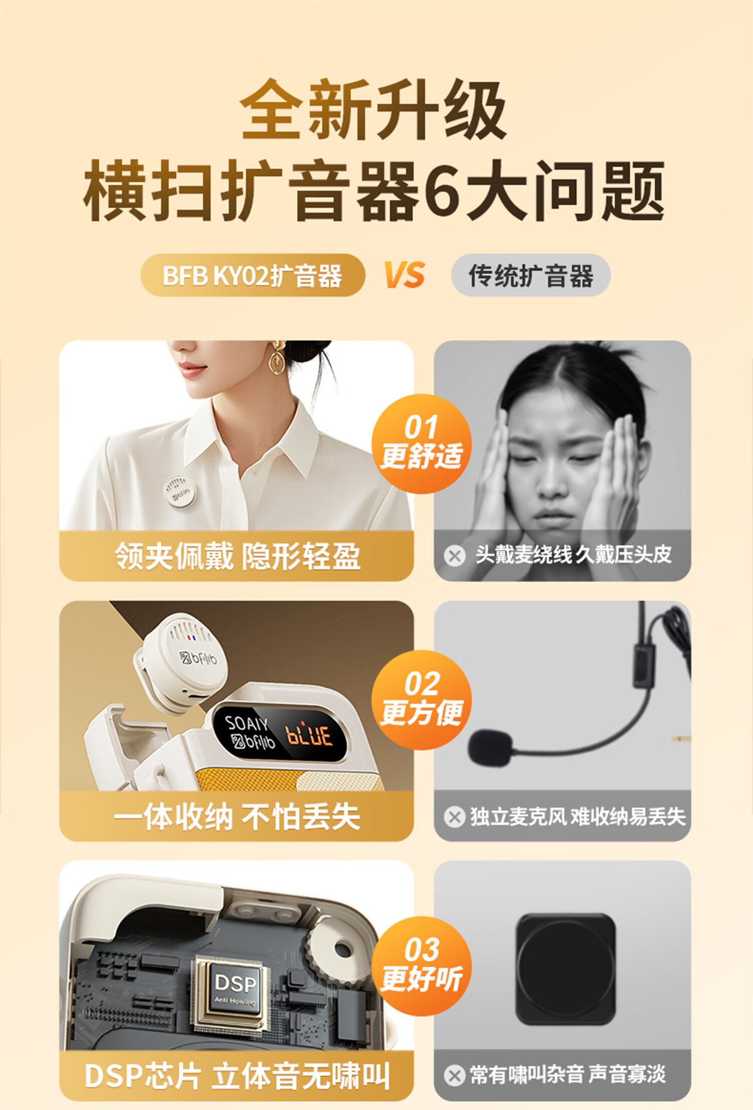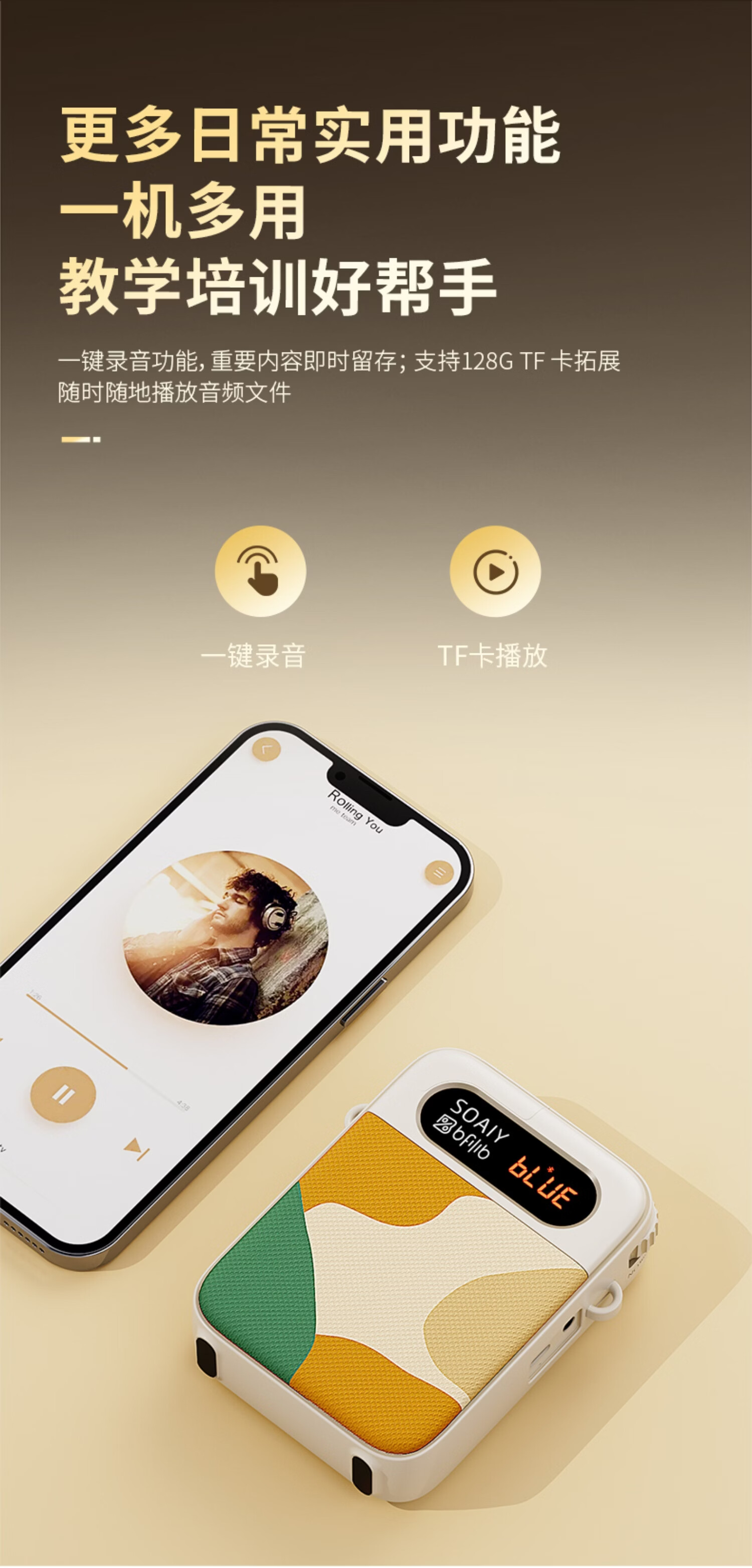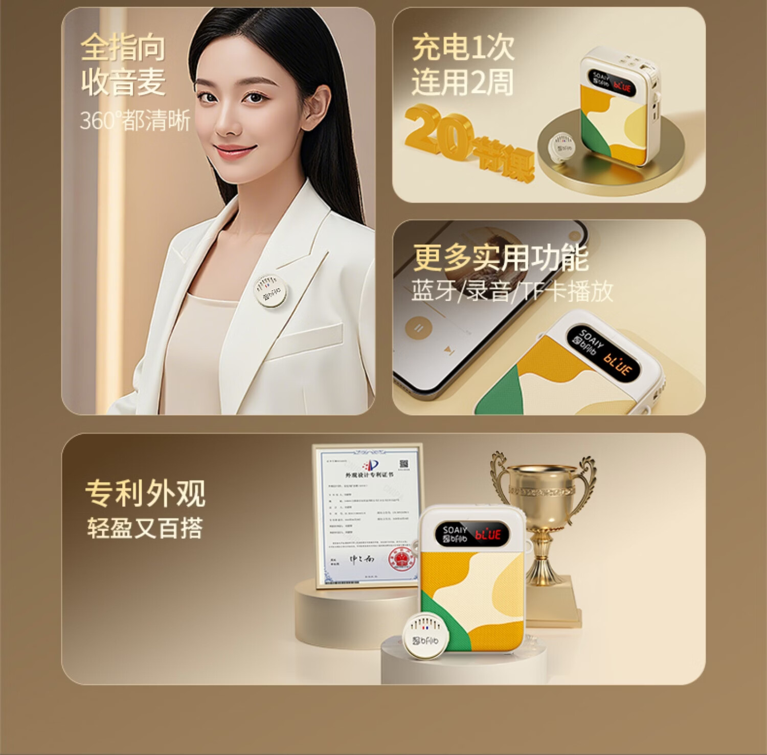 索爱(soaiy)KY02无线领夹防啸叫小蜜蜂扩音器教师专用长续航蓝牙音箱音响麦克风上课教学导游户外背带便携白