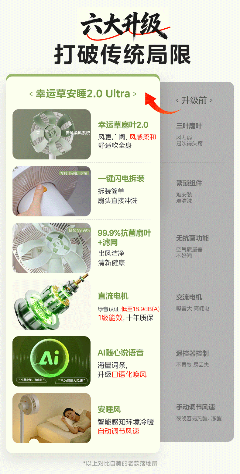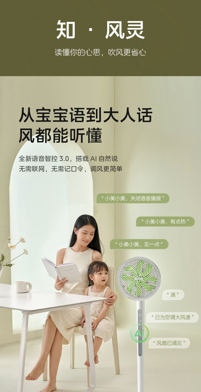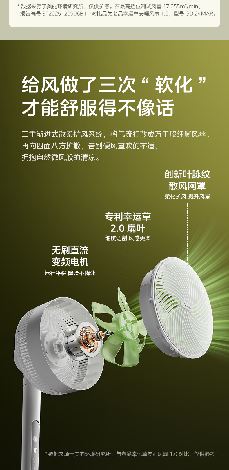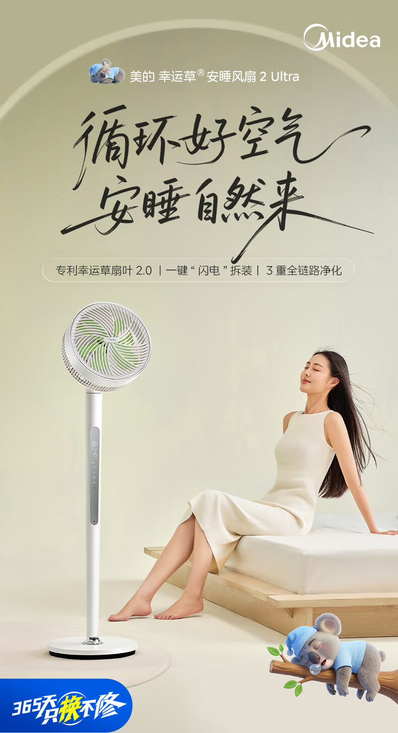 美的(Midea)【幸运草安睡2.0 Ultra】直流变频/闪拆空气循环扇卧室静音家用语音遥控电风扇一级能效小型落地扇
