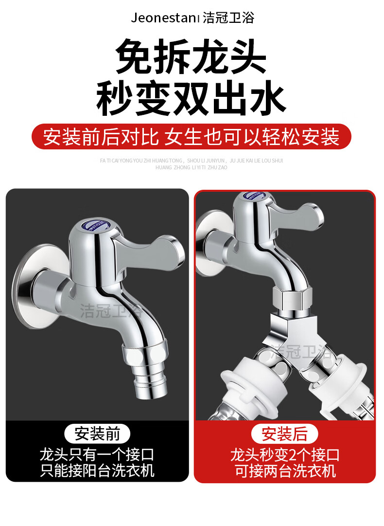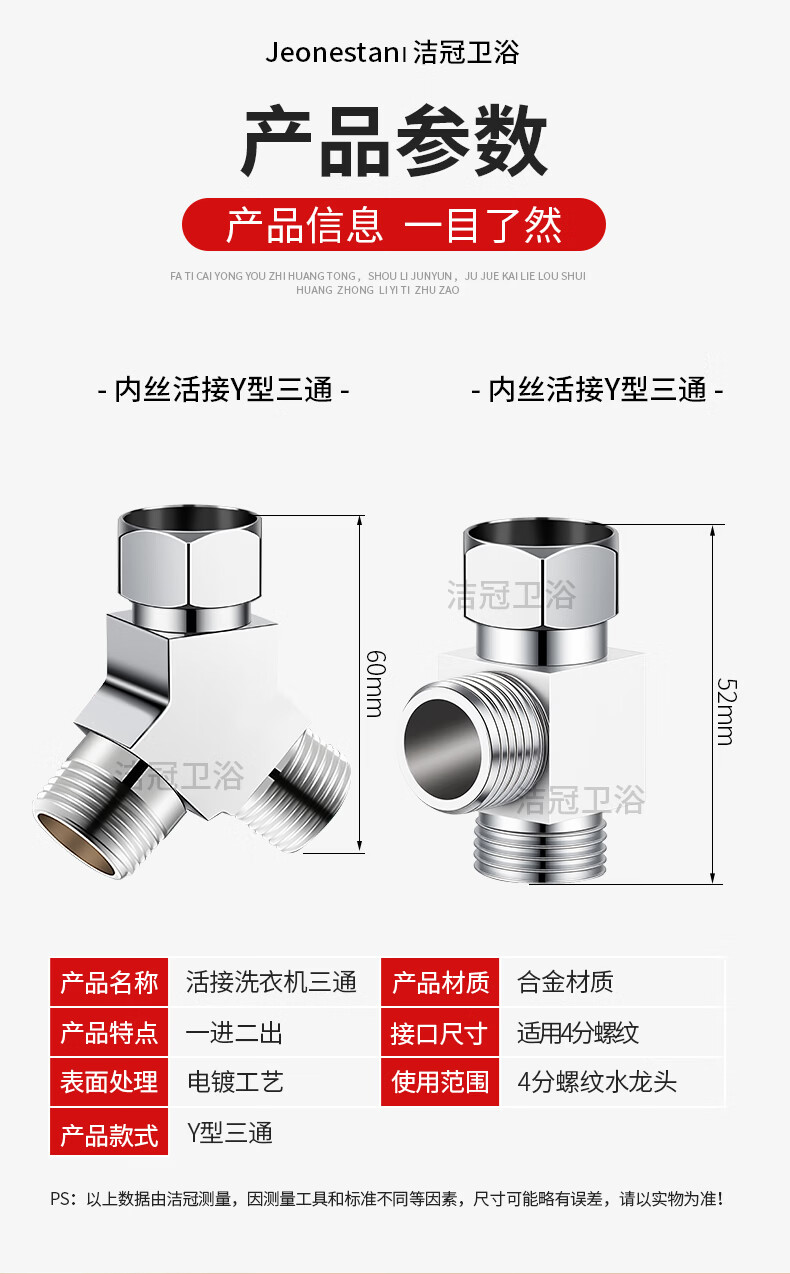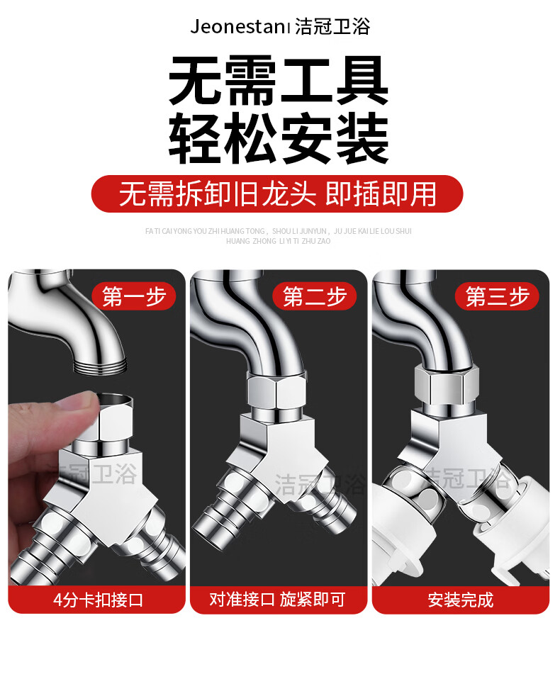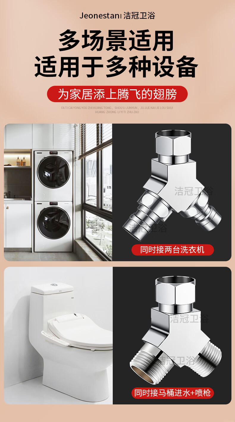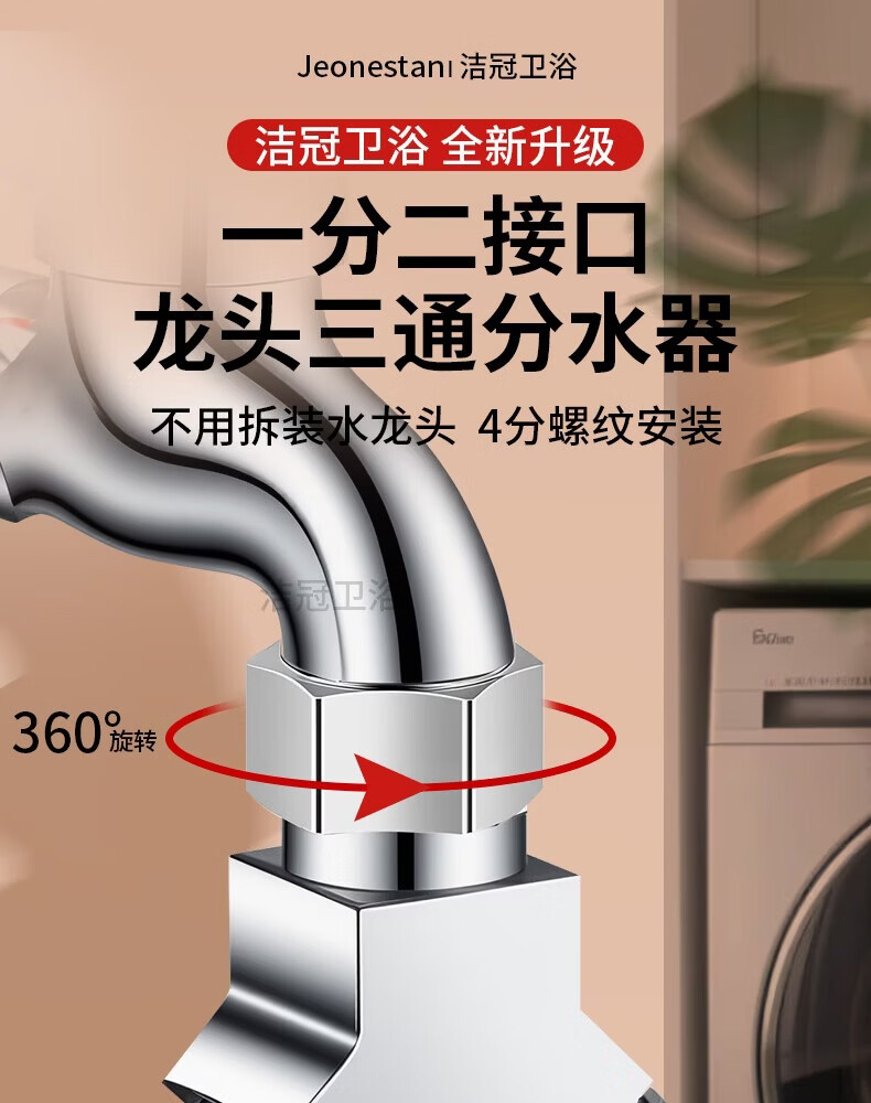 Jeonestan洗衣机水龙头一进二出三通接头双出转接头分流器快接头分水器 【Y型三通】4分螺纹+4分螺纹