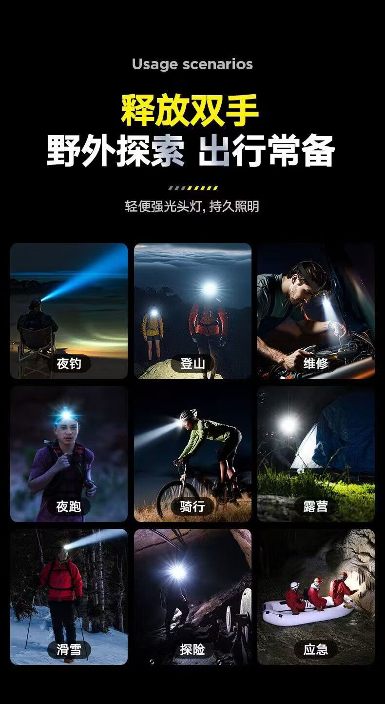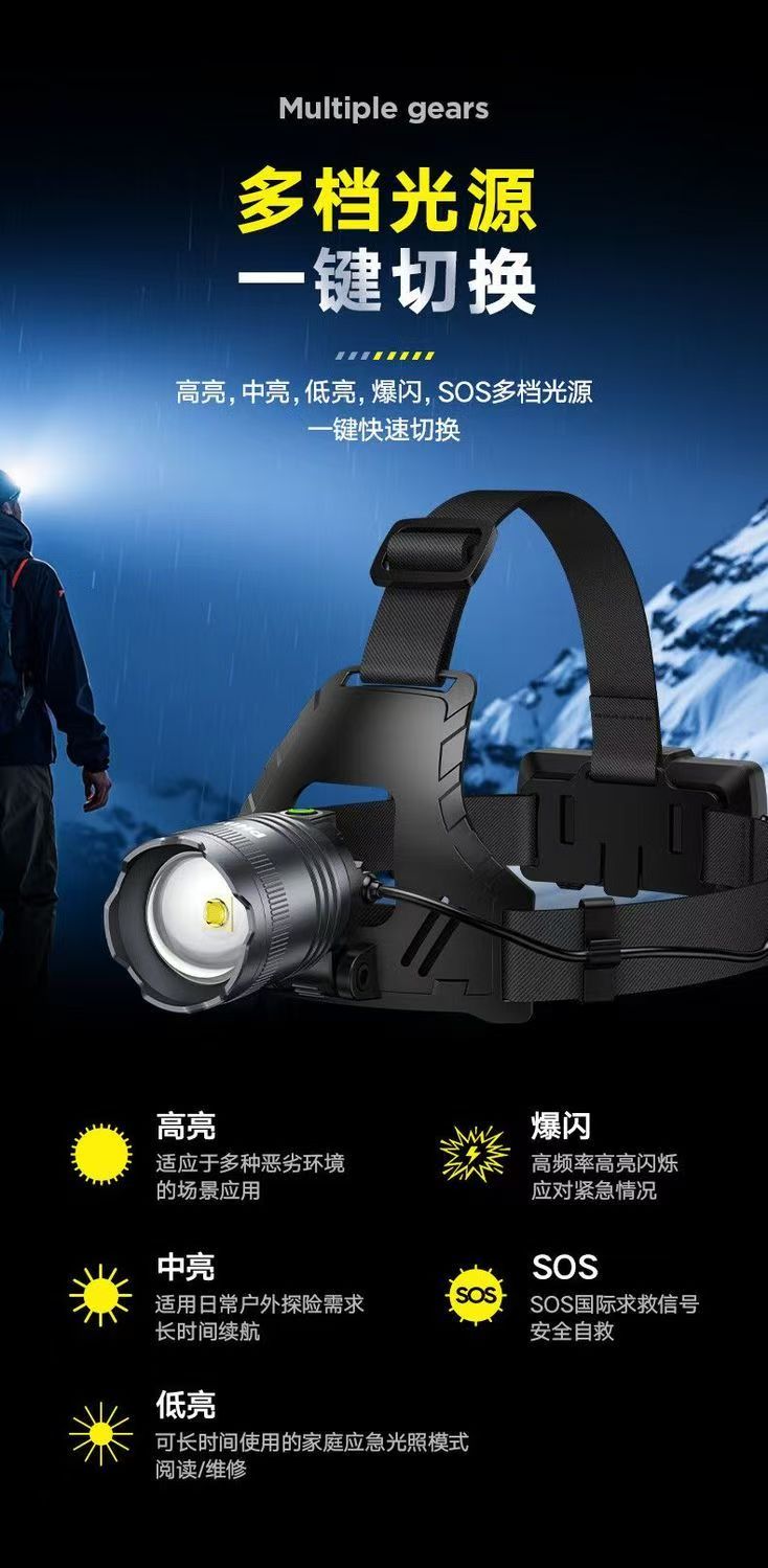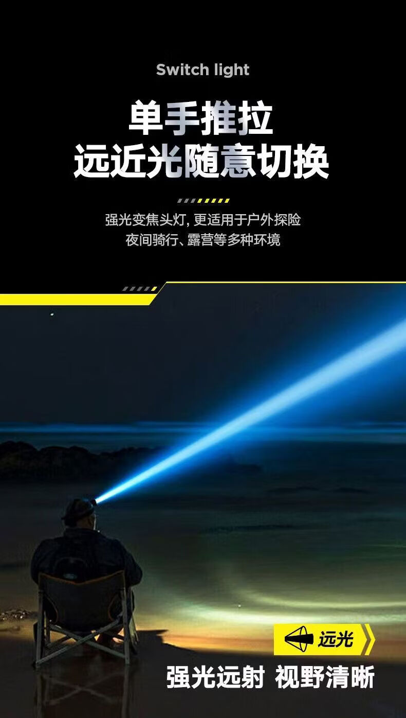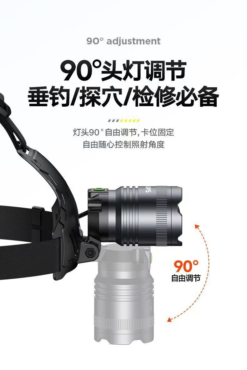 飞利浦(PHILIPS)头灯强光充电头戴式超亮超长续航90度调节垂钓灯SFL3341RH 10W/3600毫安/SFL3341RH