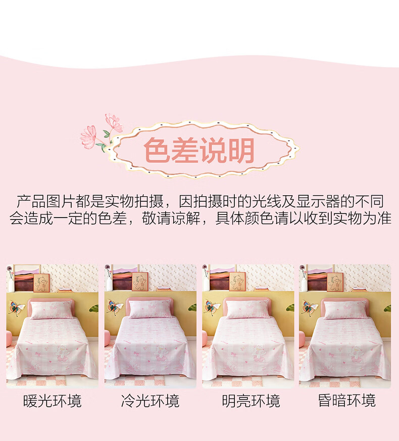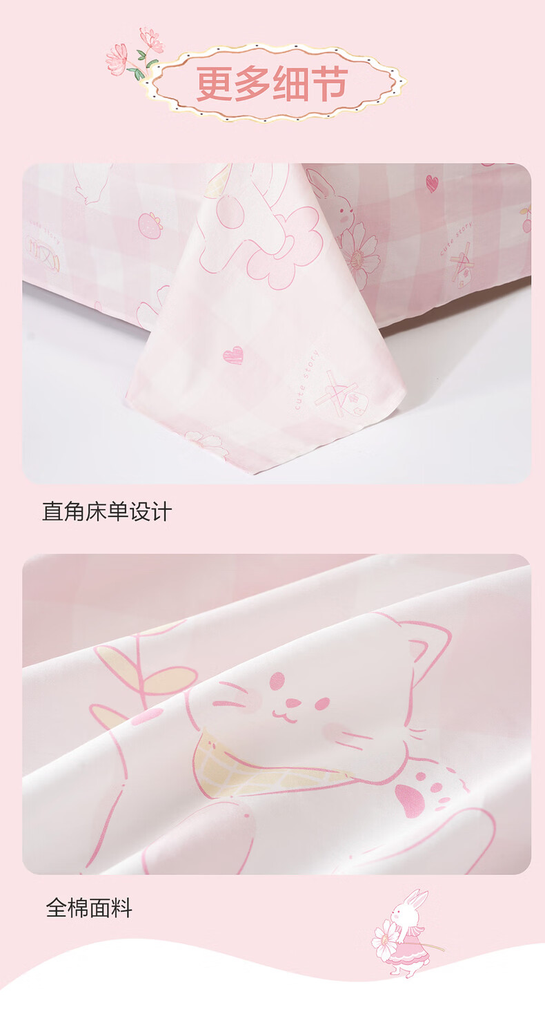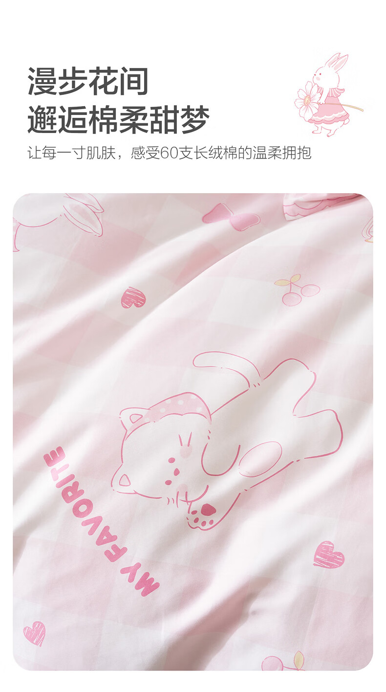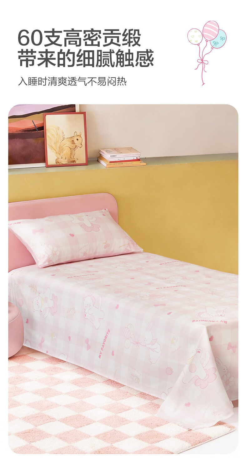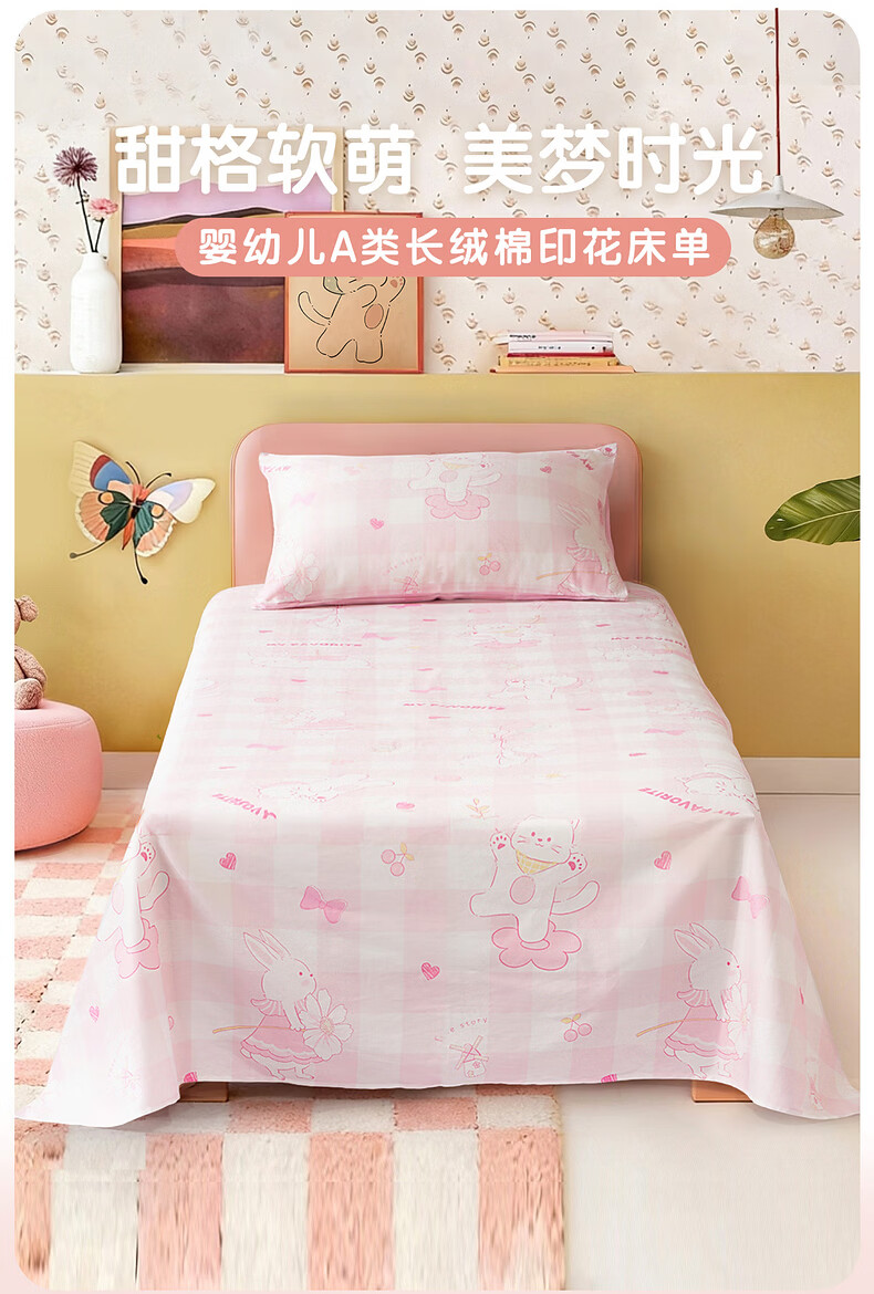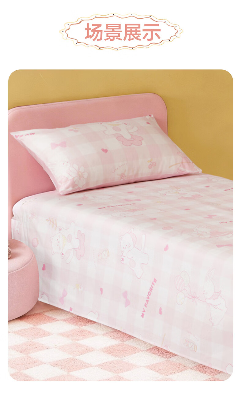 水星家纺甜格软萌长绒棉印花床单 甜格软萌长绒棉印花床单 230cm*160cm