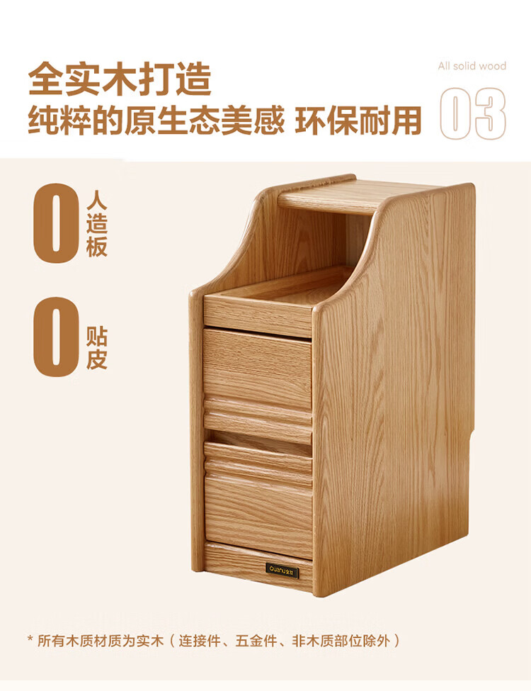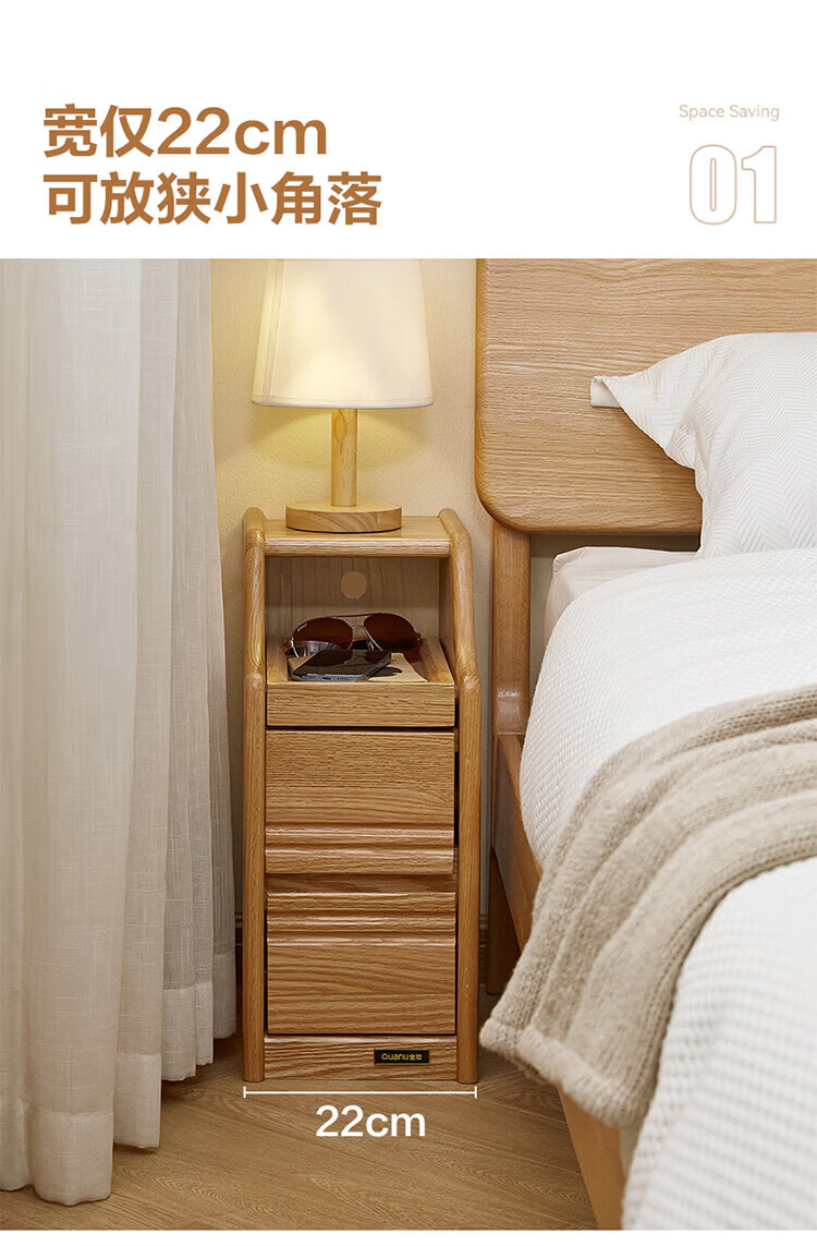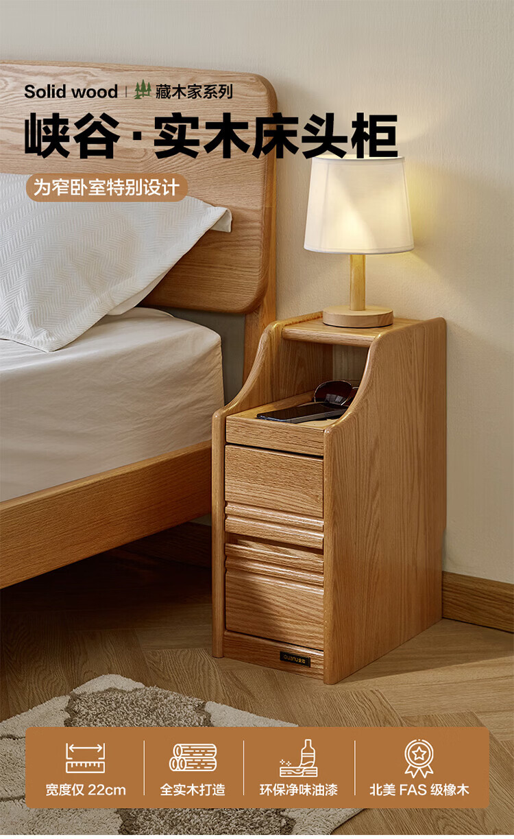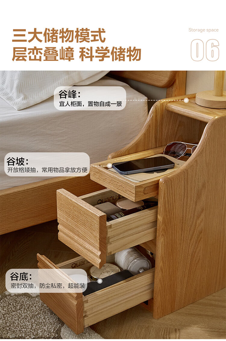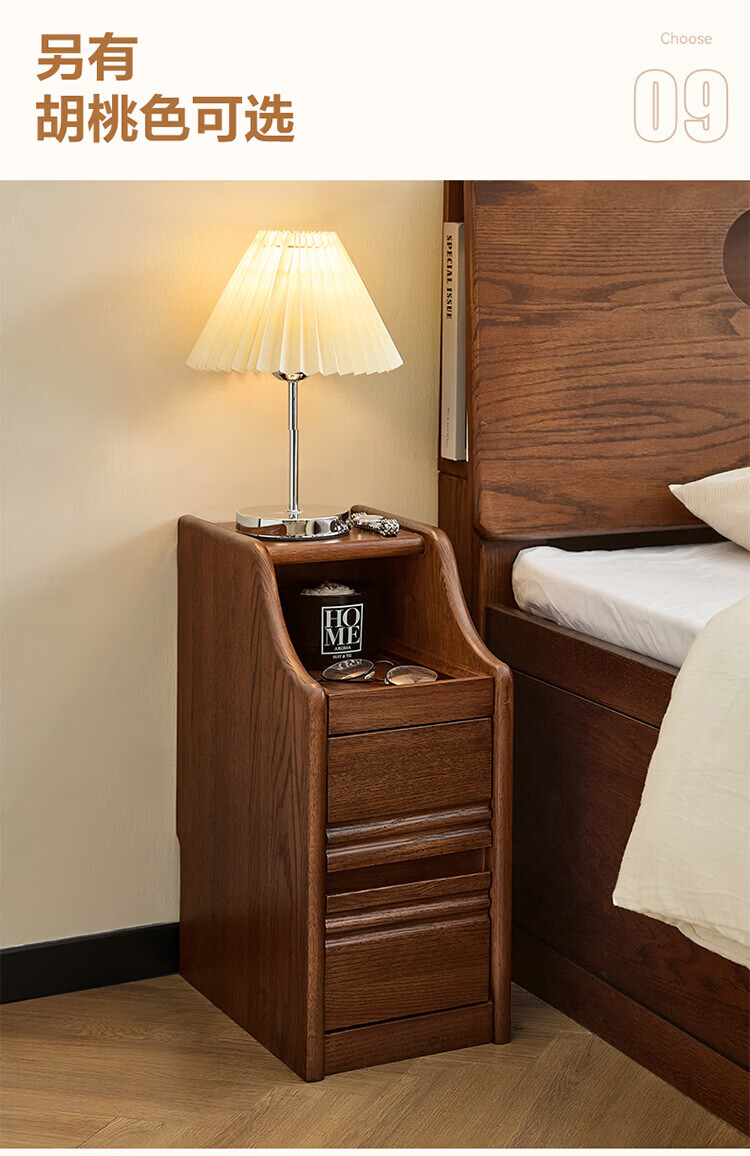 全友(QUANU)【迷瞪清仓货盘】峡谷实木落地床头柜窄款收纳储物置物柜沙发边柜 【深胡桃色 | 红橡木】床头柜