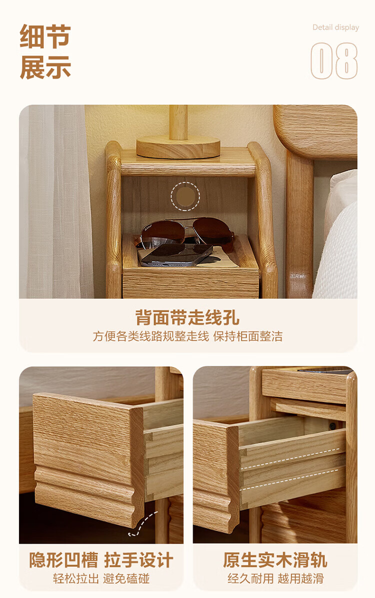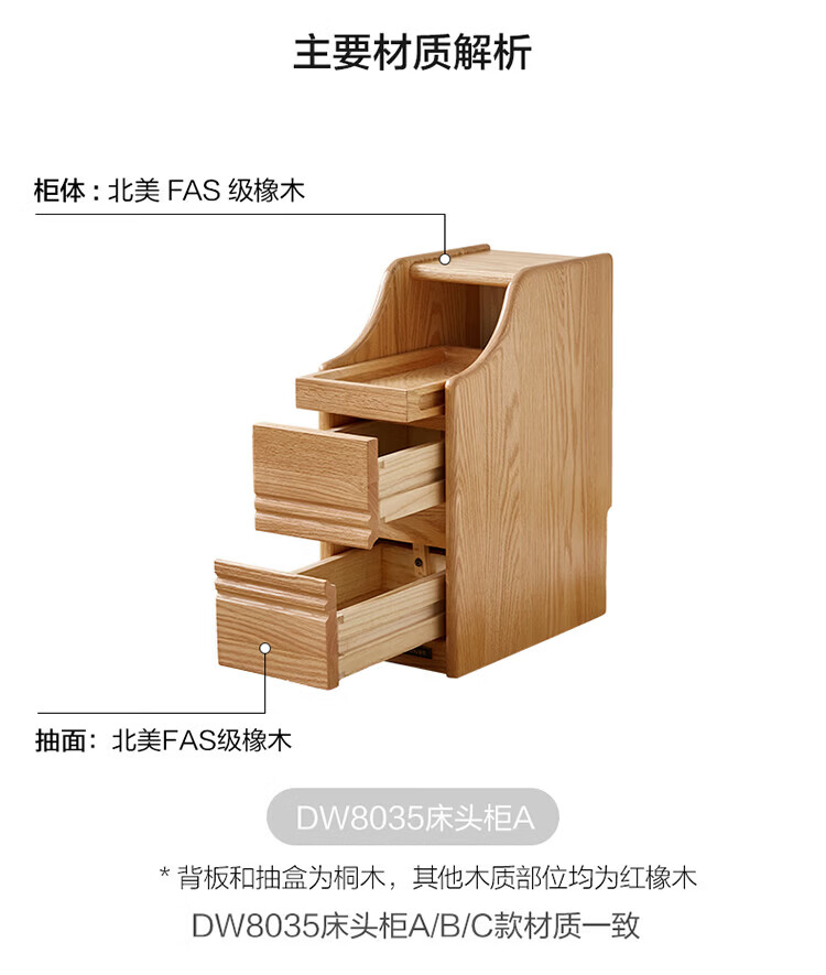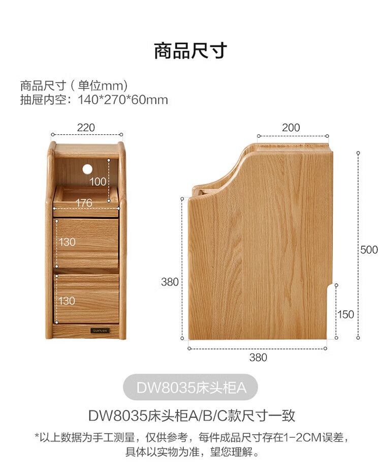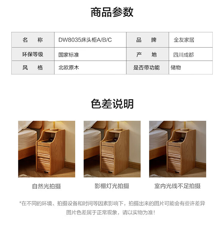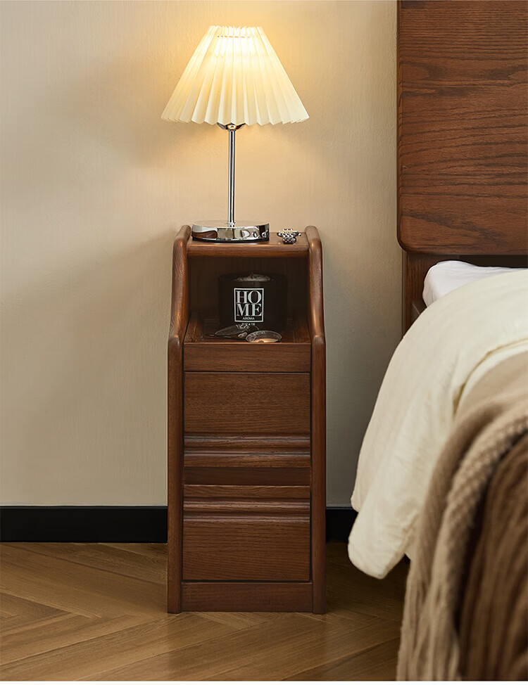 全友(QUANU)【迷瞪清仓货盘】峡谷实木落地床头柜窄款收纳储物置物柜沙发边柜 【深胡桃色 | 红橡木】床头柜