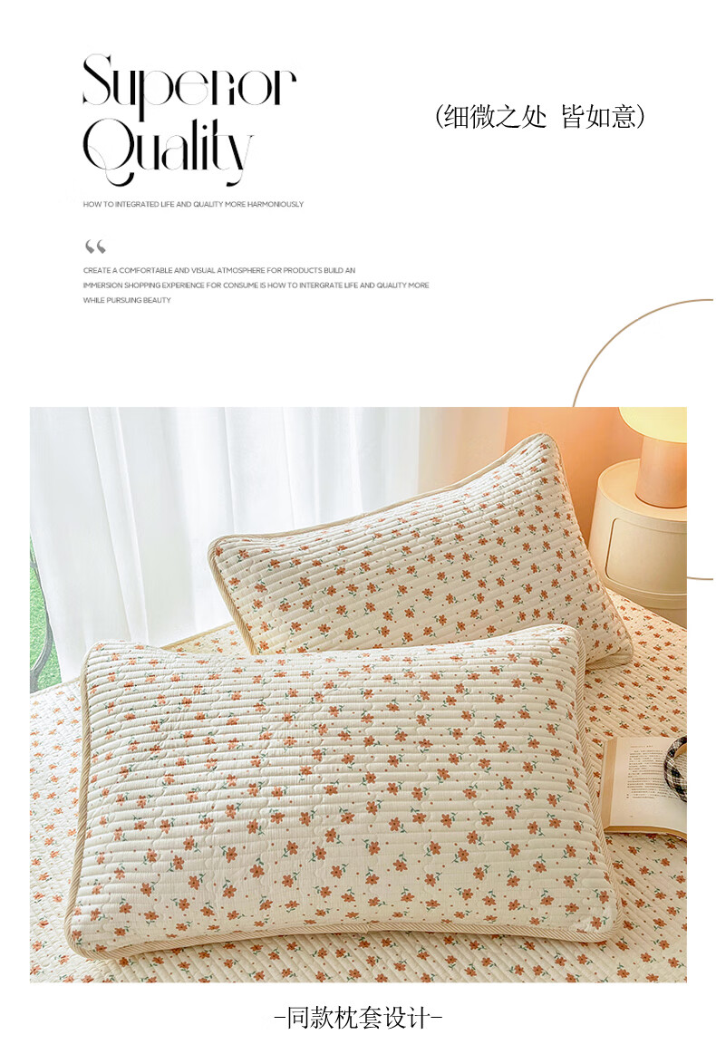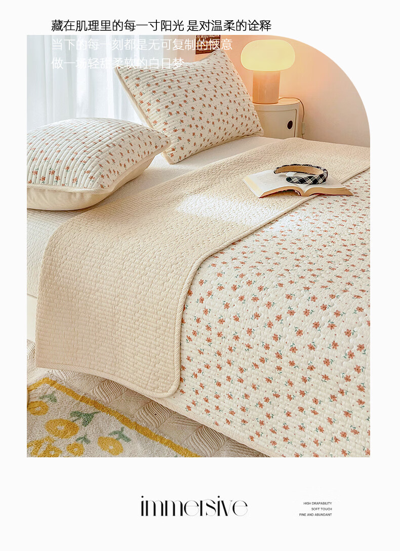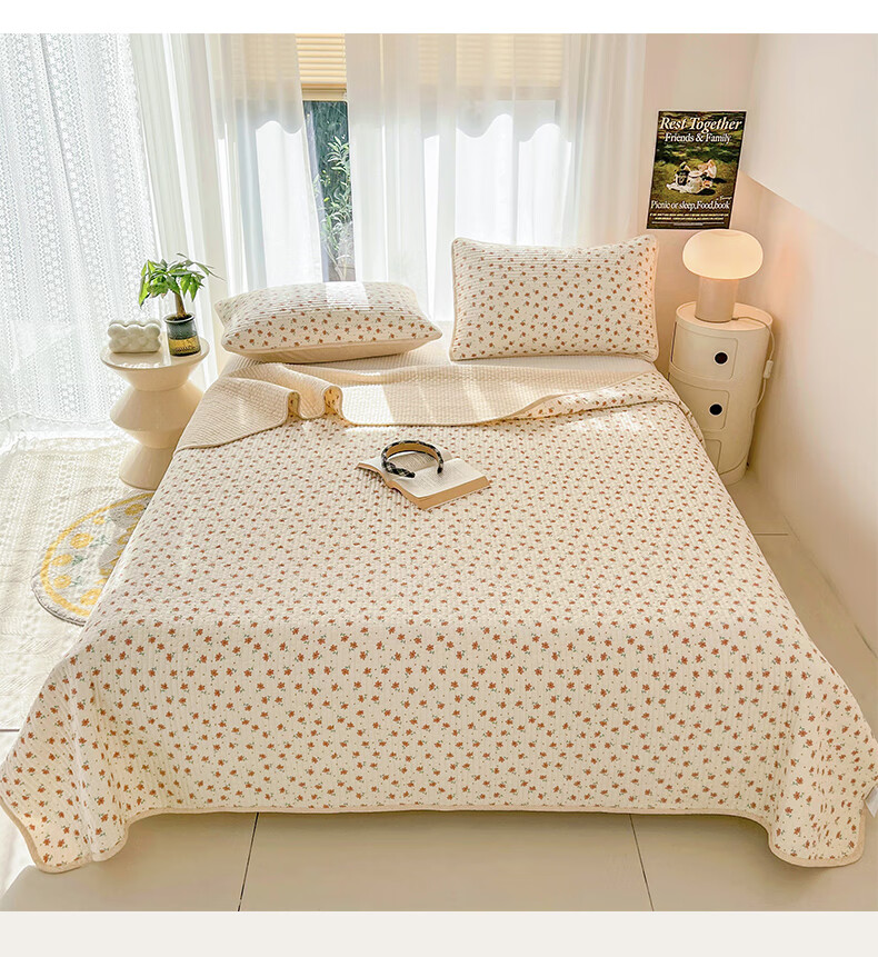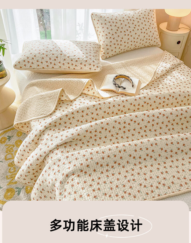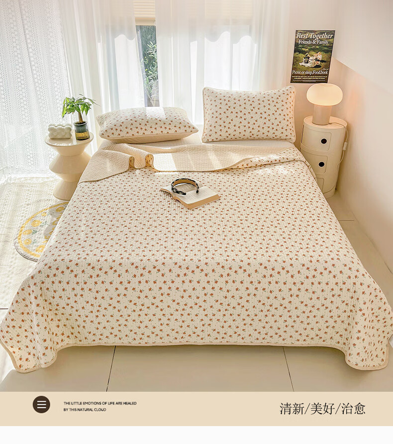 无印良品 碎花双面全棉床盖单件ins四季通用可裸睡宿舍纯棉夹棉榻榻米床单 小花飘飘【双面100%纯棉面料】 150cm*200cm 单床盖