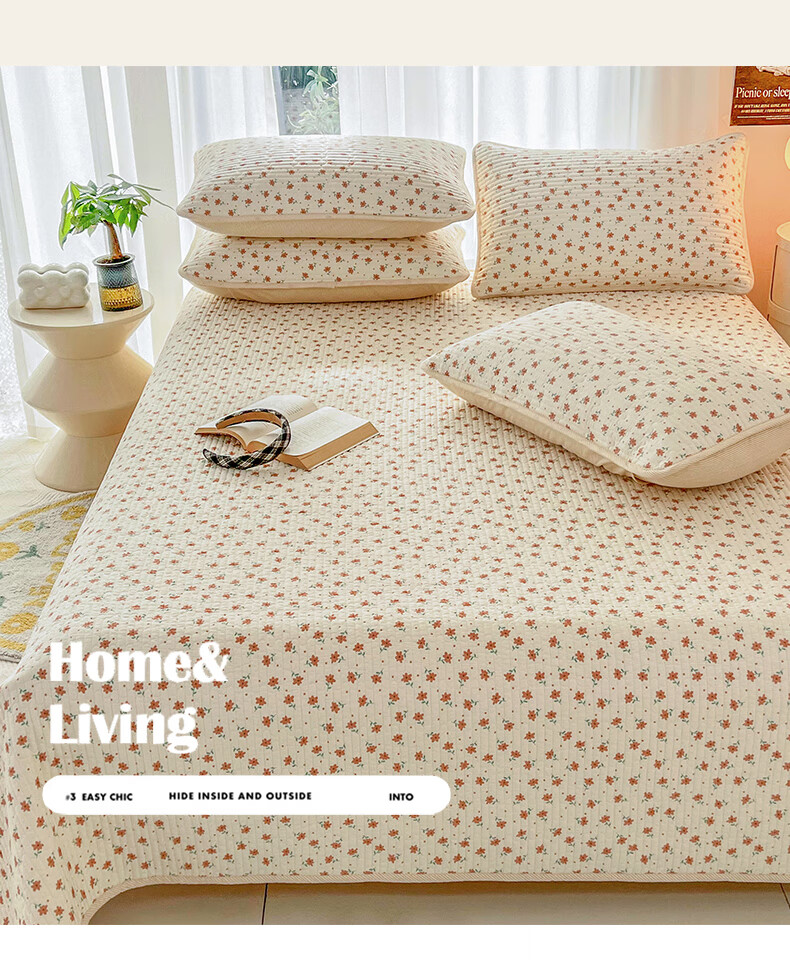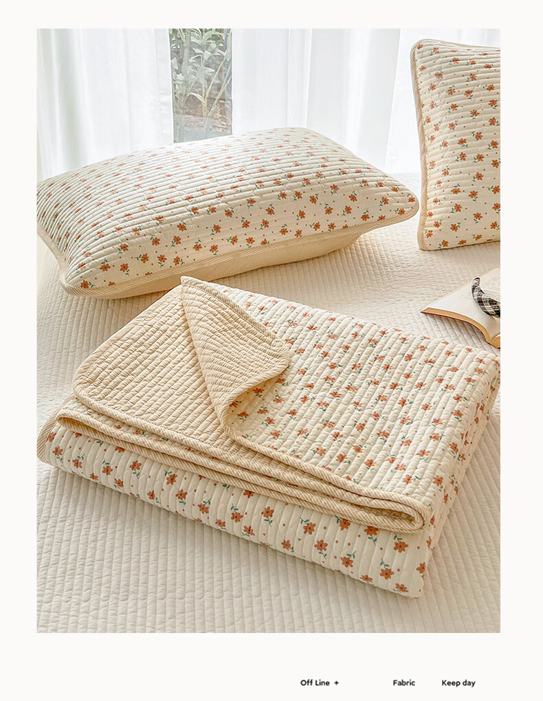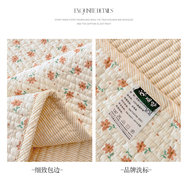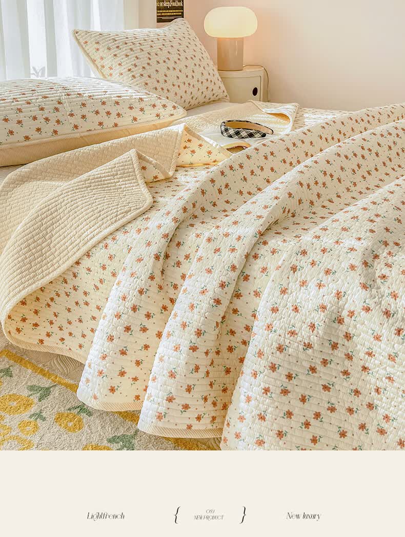 无印良品 碎花双面全棉床盖单件ins四季通用可裸睡宿舍纯棉夹棉榻榻米床单 小花飘飘【双面100%纯棉面料】 150cm*200cm 单床盖