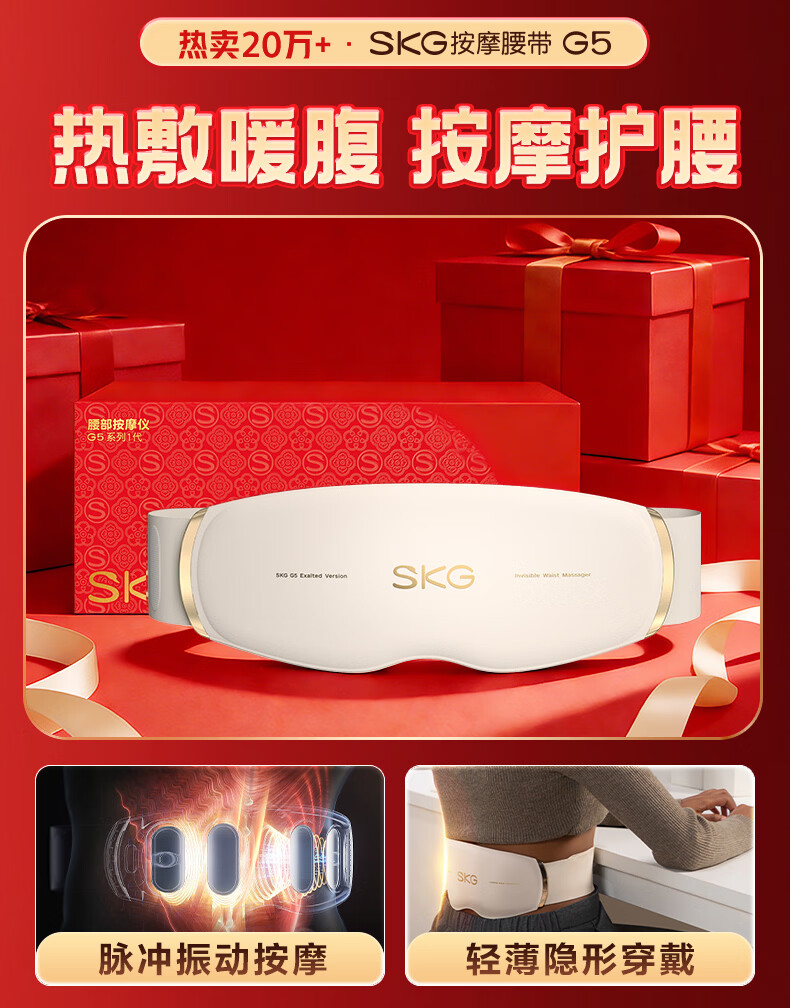 SKG腰部按摩器G5腰椎按摩仪暖腹姨妈神器护腰带腰肌劳损腰背热敷按摩仪生日礼物送男女朋友父母亲实用 【热卖20w+】按摩腰带G5
