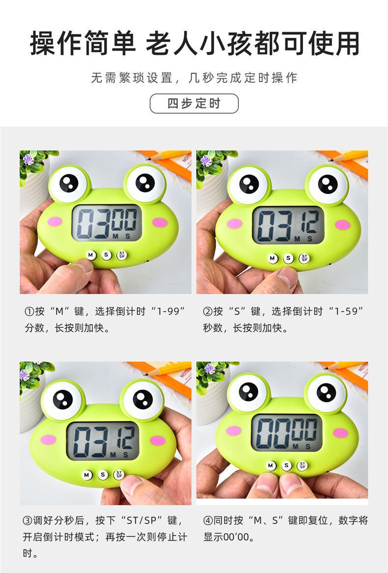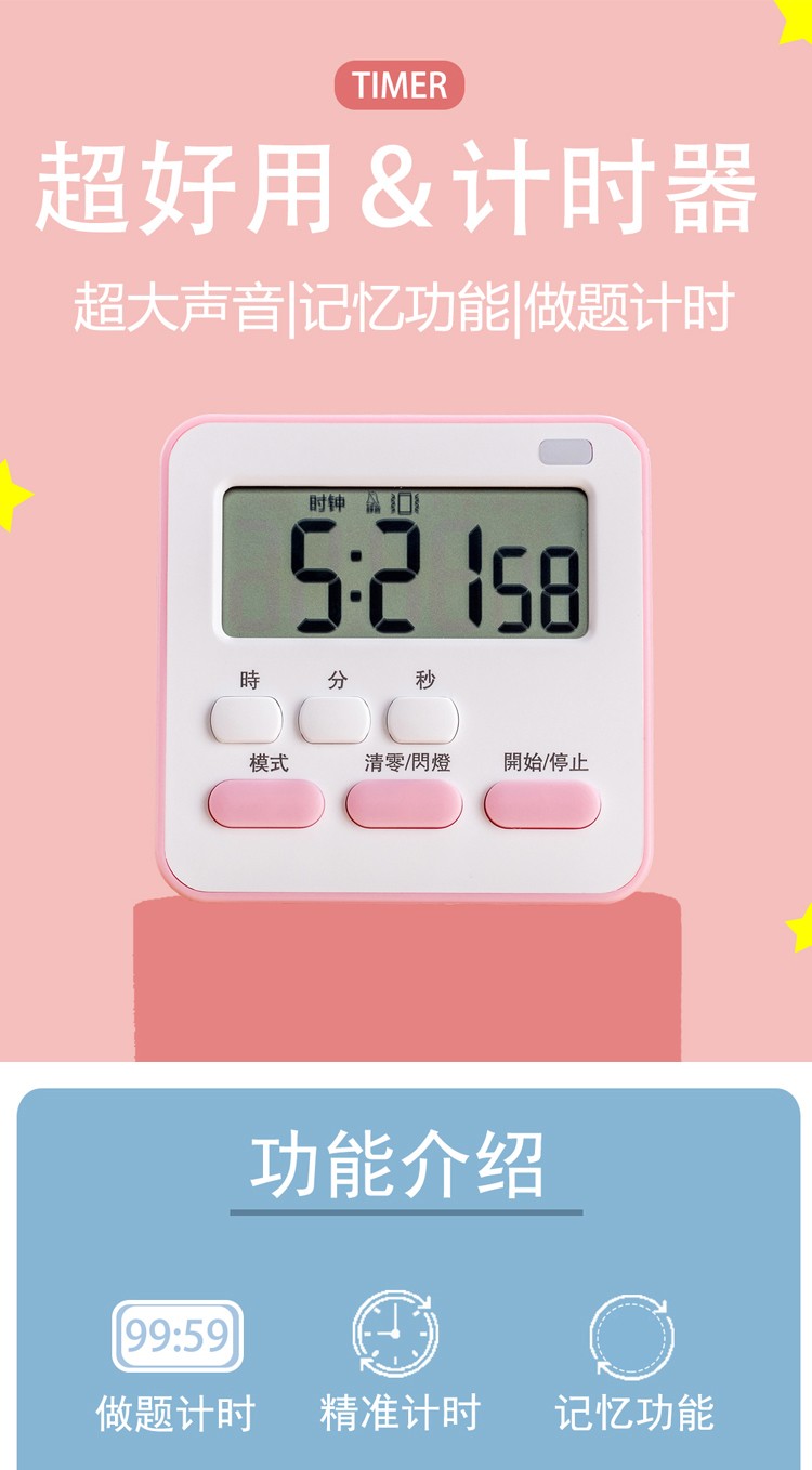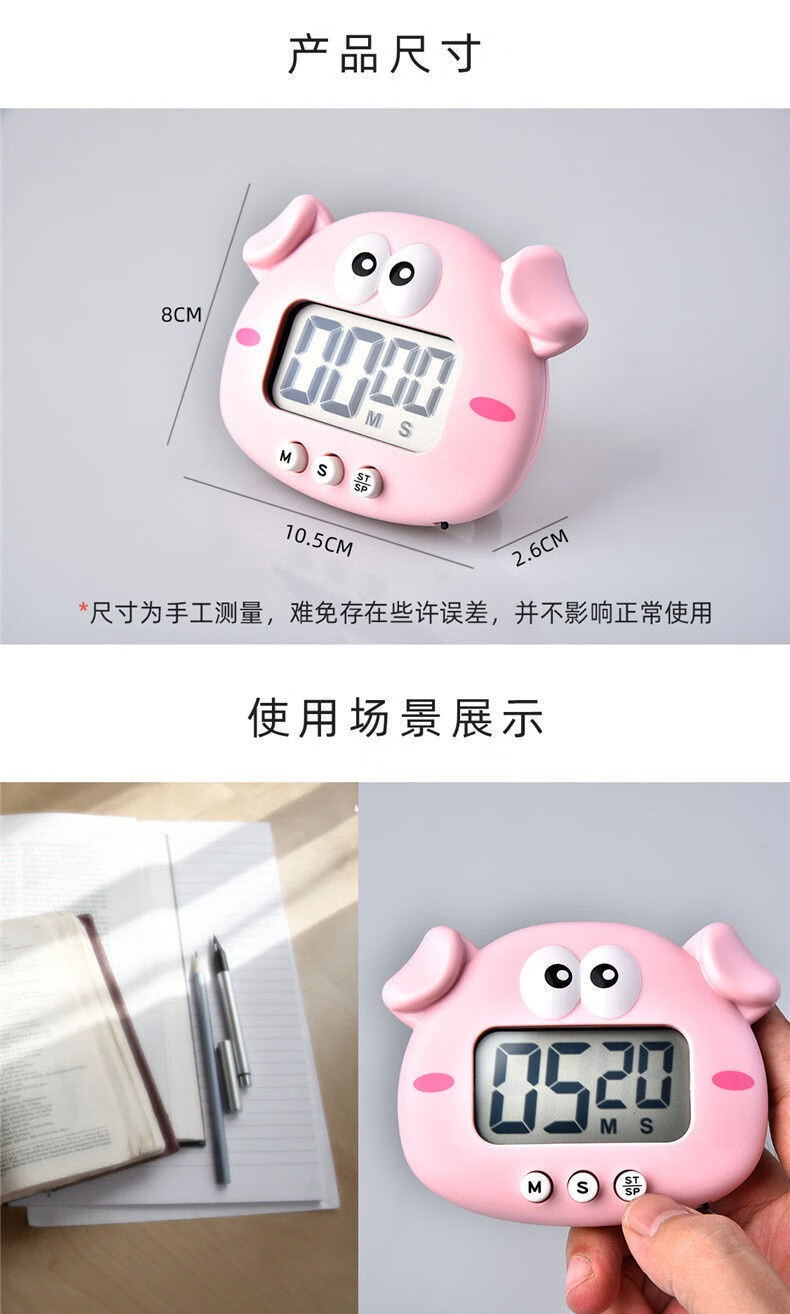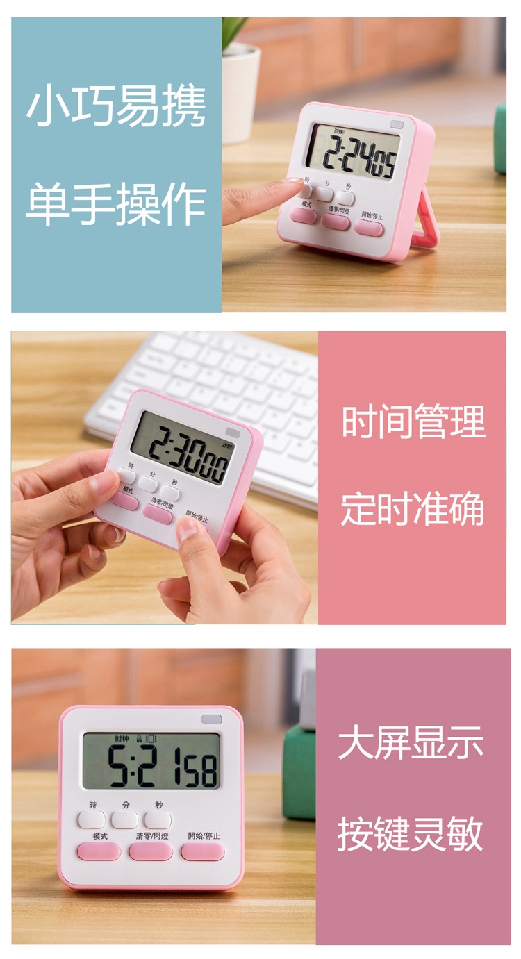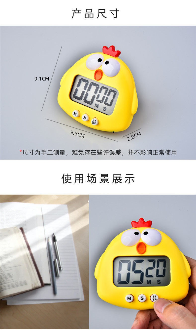 万梭 卡通计时器可静音闹钟时钟督促学习做题厨房瑜伽倒计时实用桌面 天空蓝【震动版】DZ-006