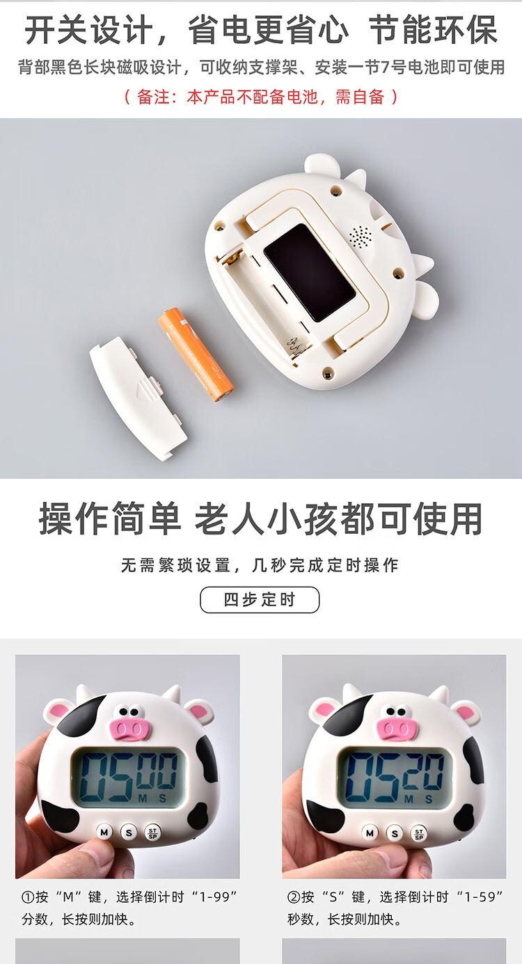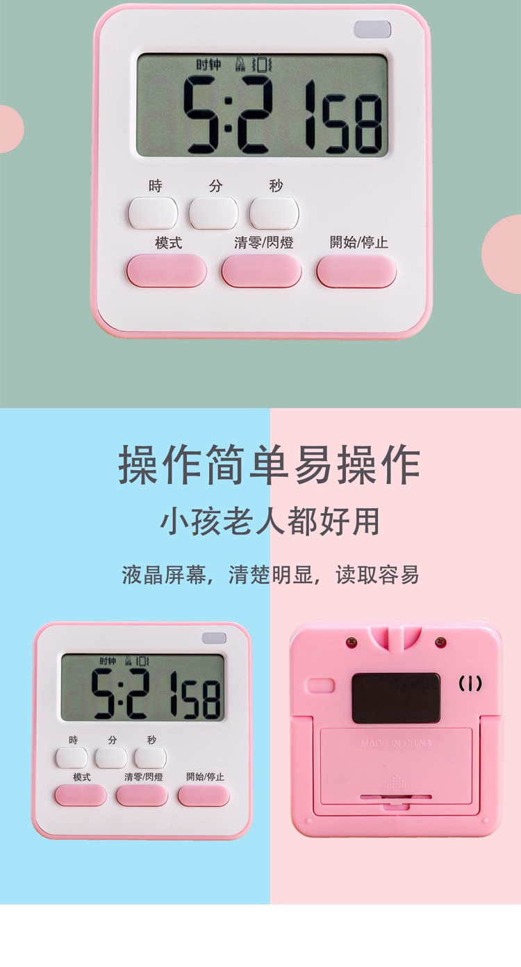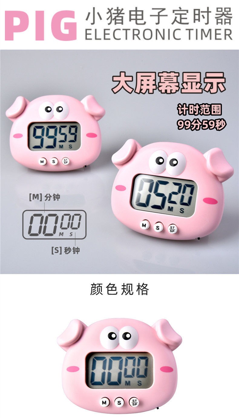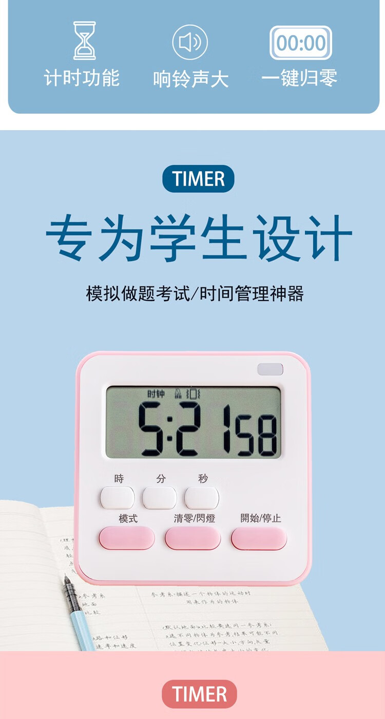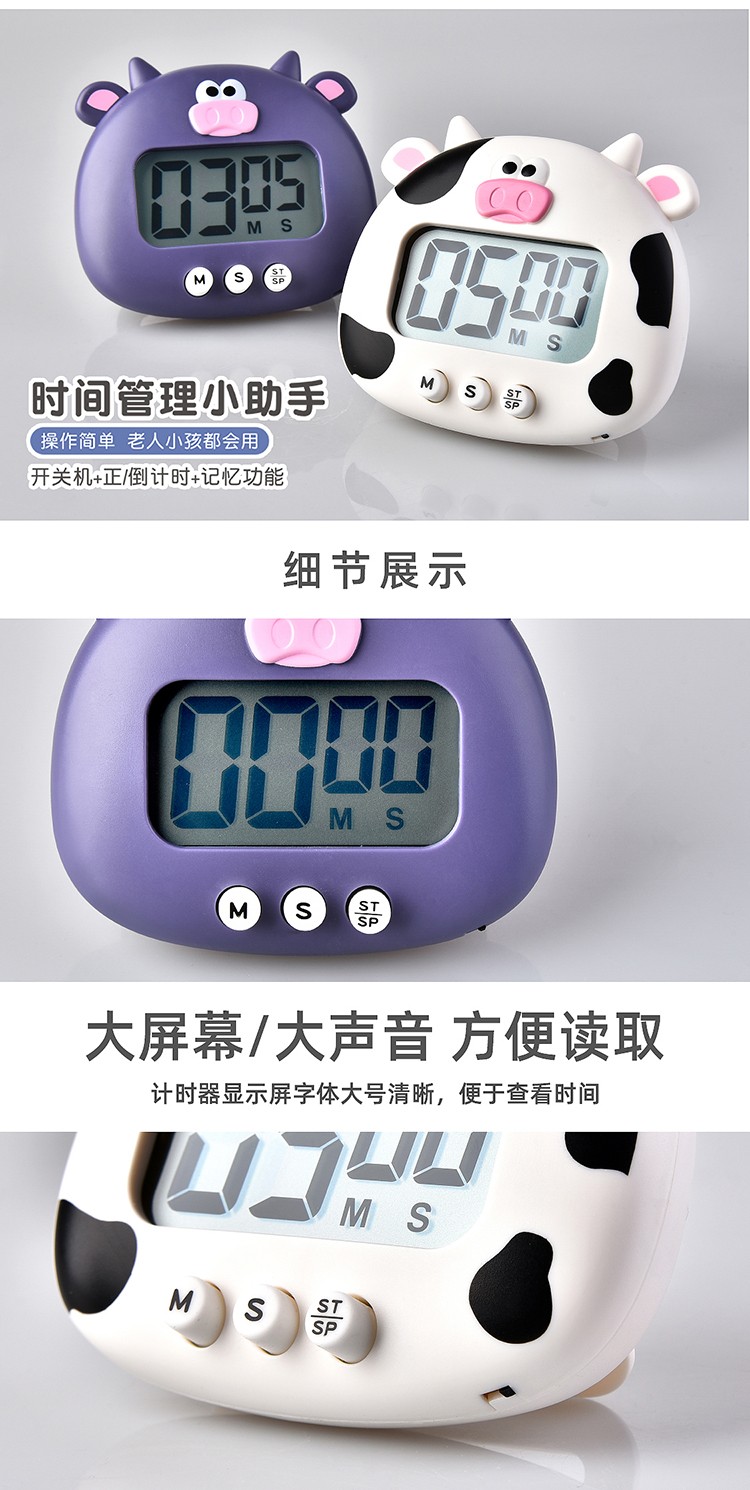 万梭 卡通计时器可静音闹钟时钟督促学习做题厨房瑜伽倒计时实用桌面 天空蓝【震动版】DZ-006