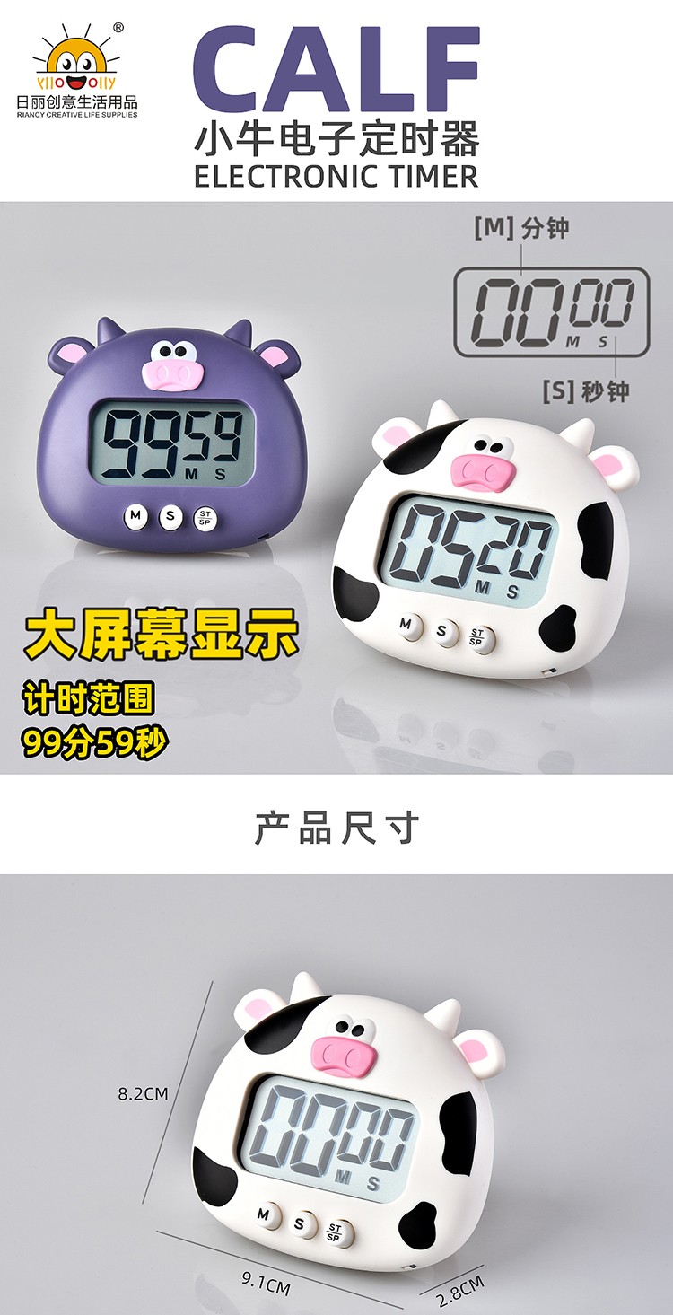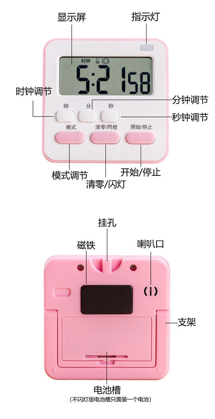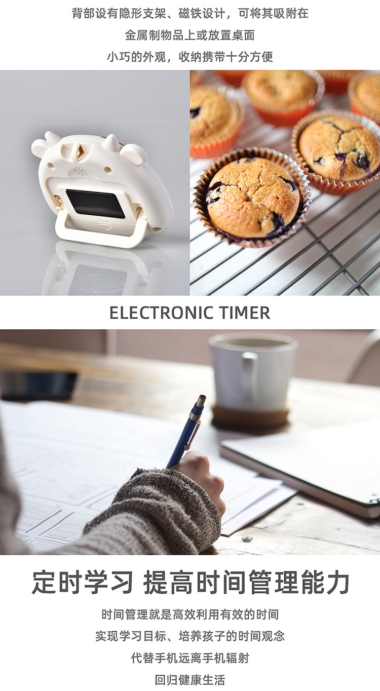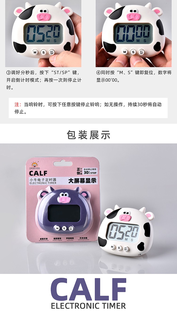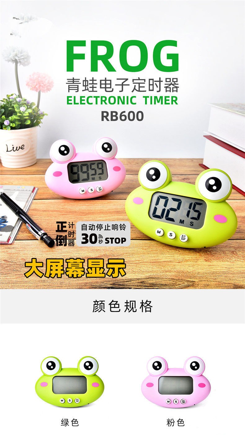万梭 卡通计时器可静音闹钟时钟督促学习做题厨房瑜伽倒计时实用桌面 天空蓝【震动版】DZ-006