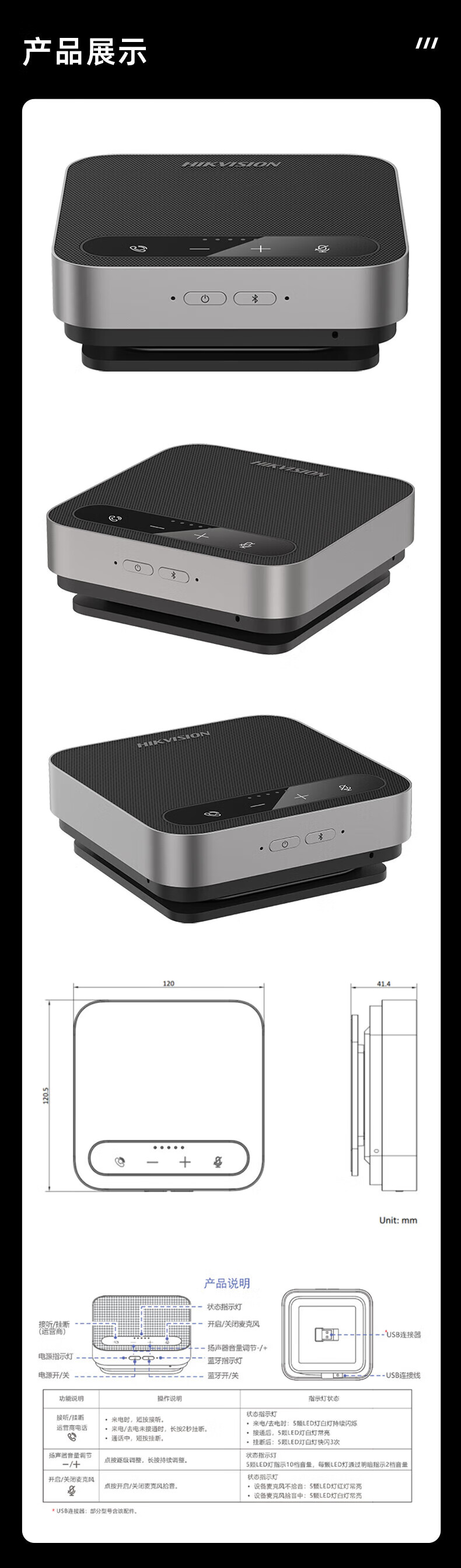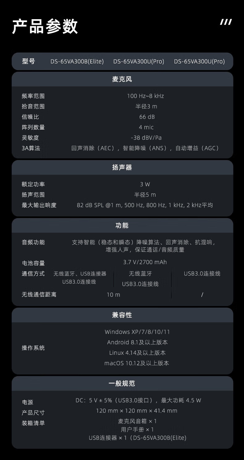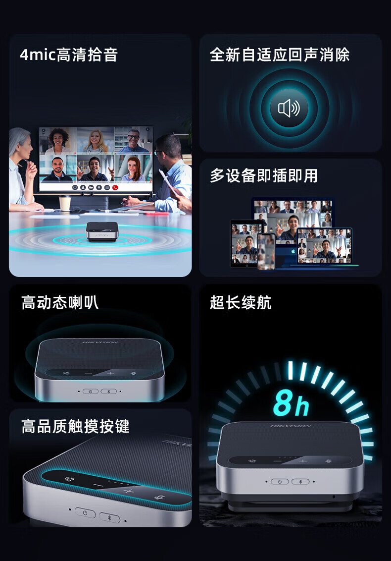 海康威视DS-VM1全向会议麦克风视频会议电话会议网络会议无线扬声器USB DS-VM1 USB有线智能全向麦克风