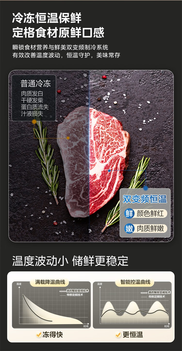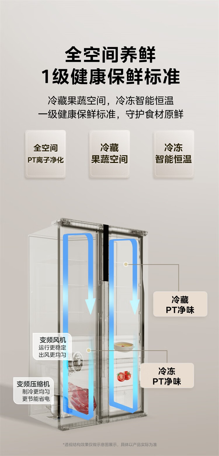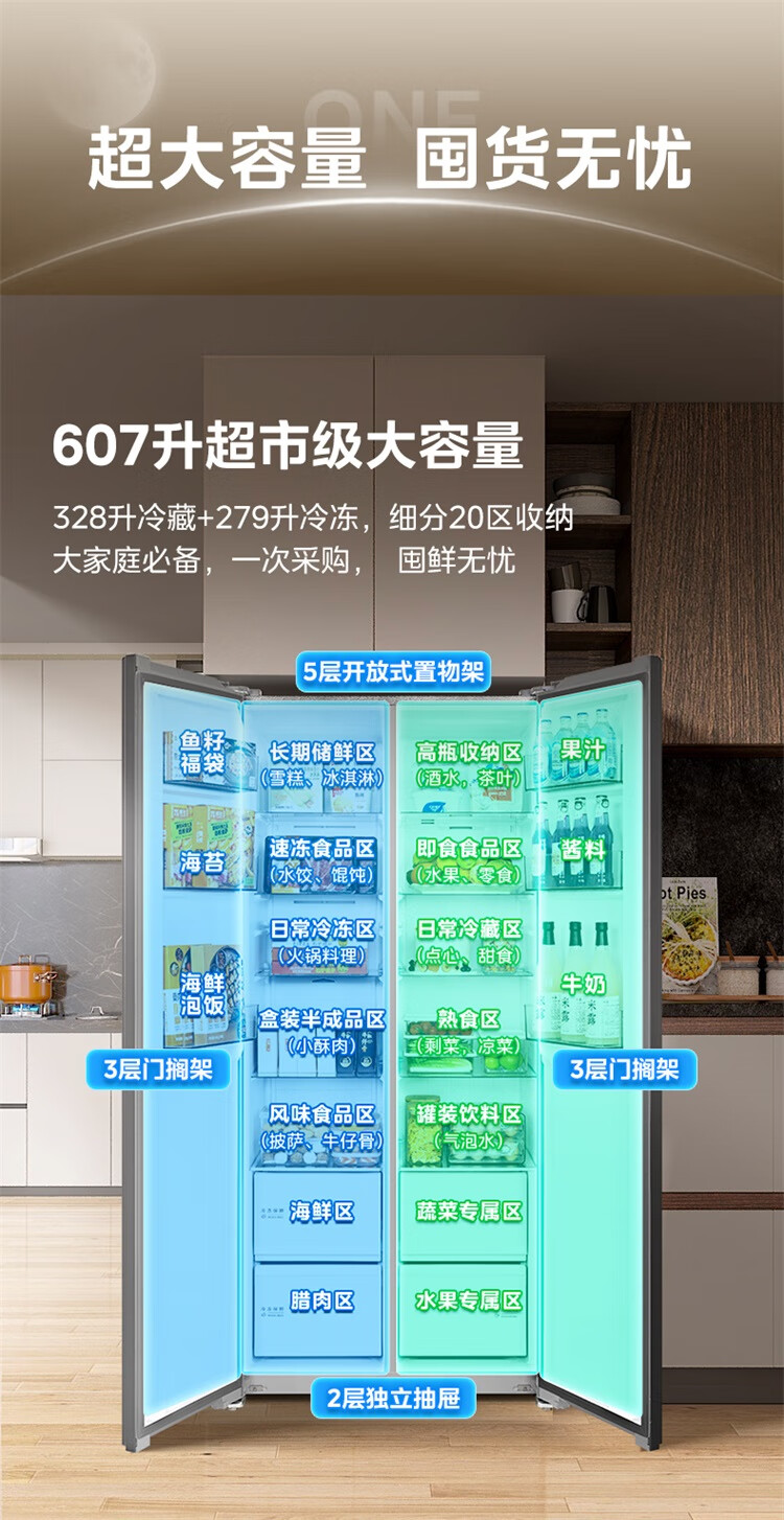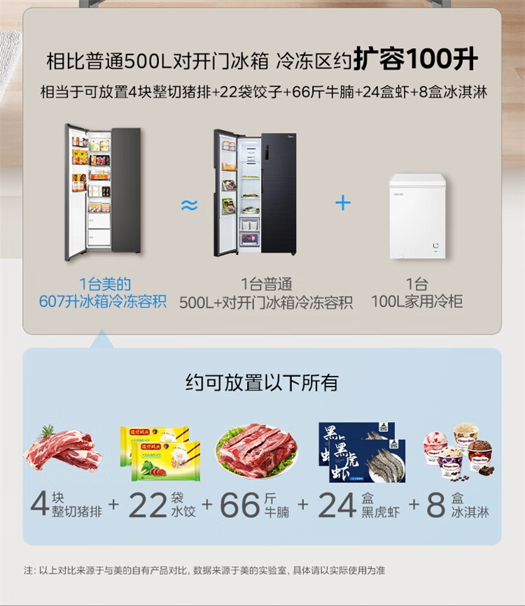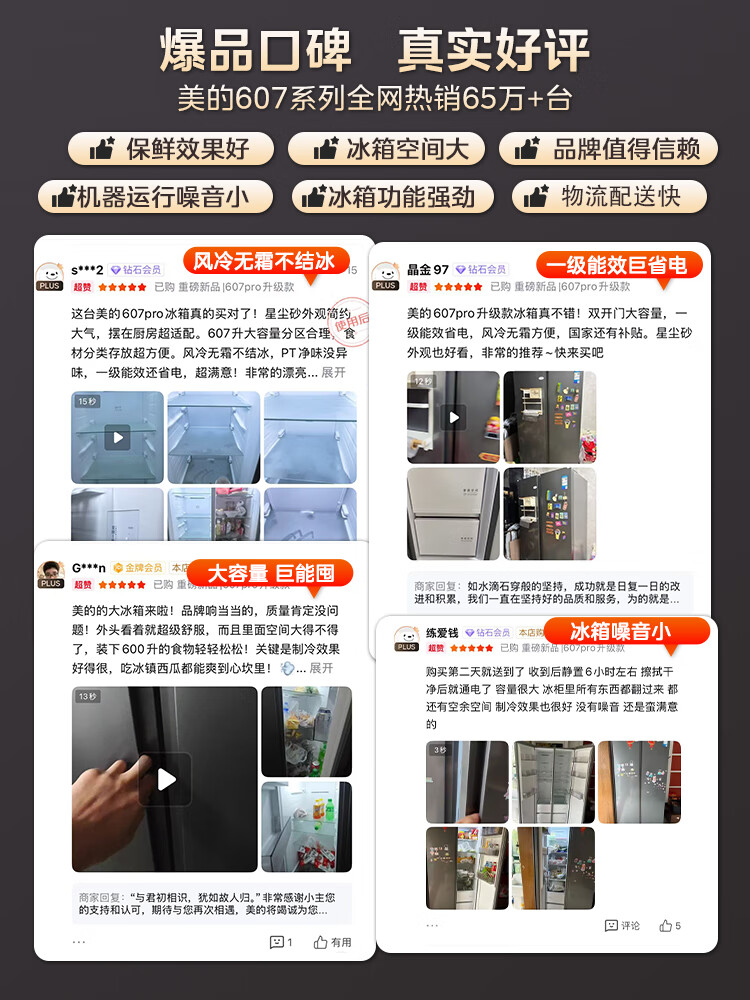 美的(Midea)607升pro升级款双开门冰箱超大容量一级能效风冷无霜大冷冻星辰砂BCD-607WKPM(E)以旧换新国家补贴