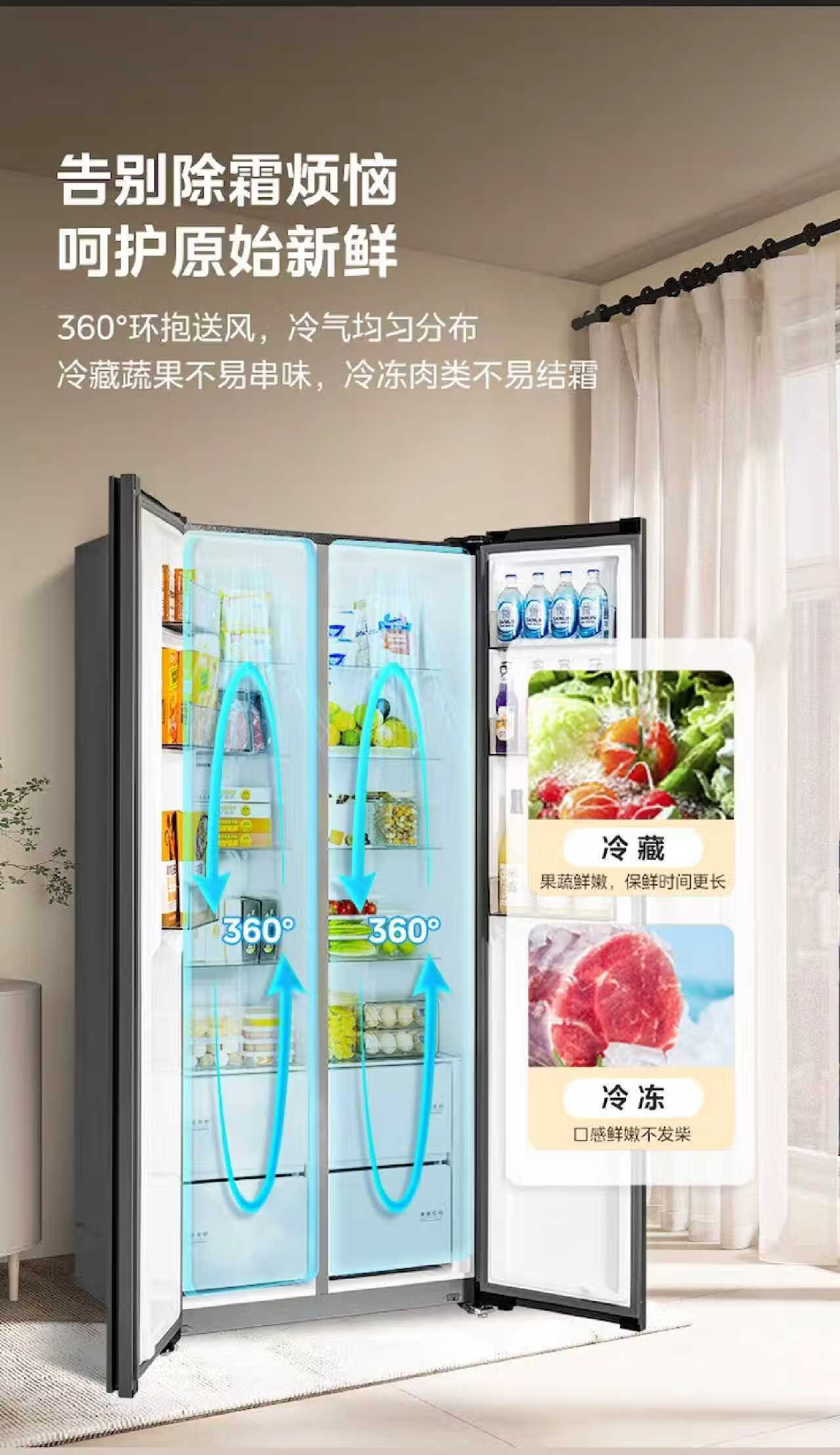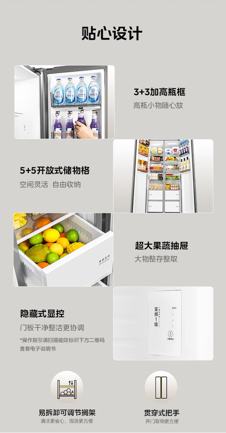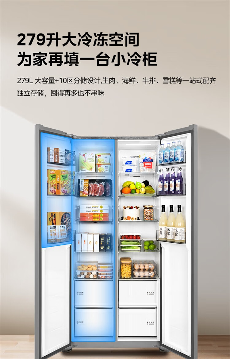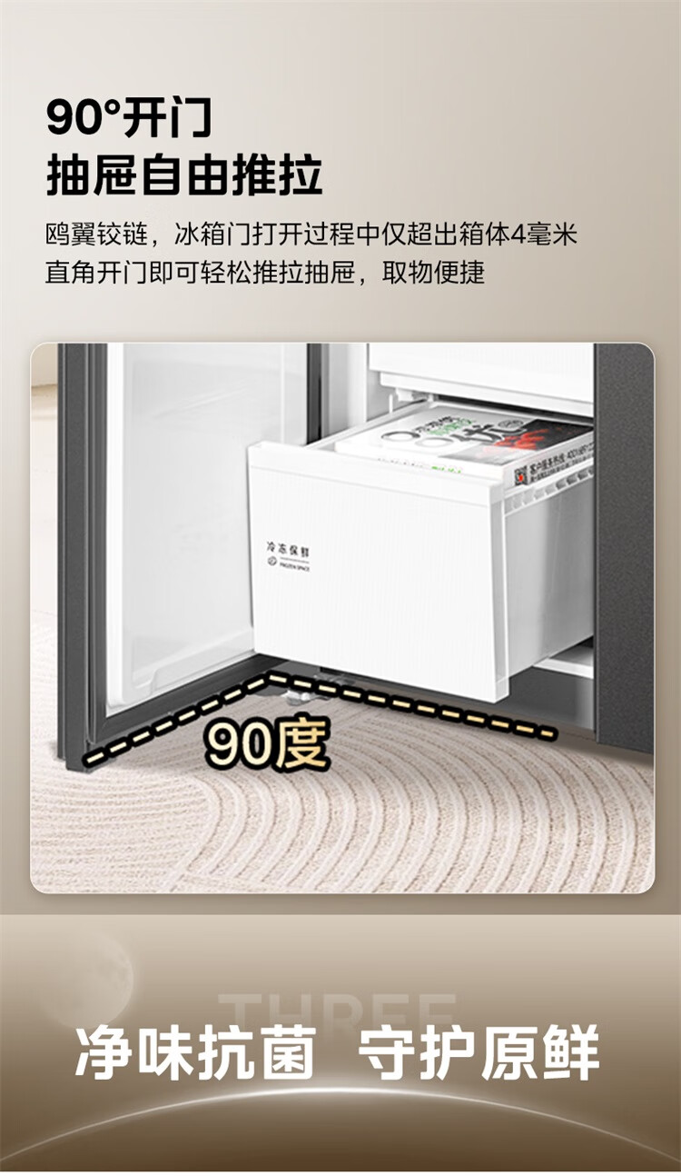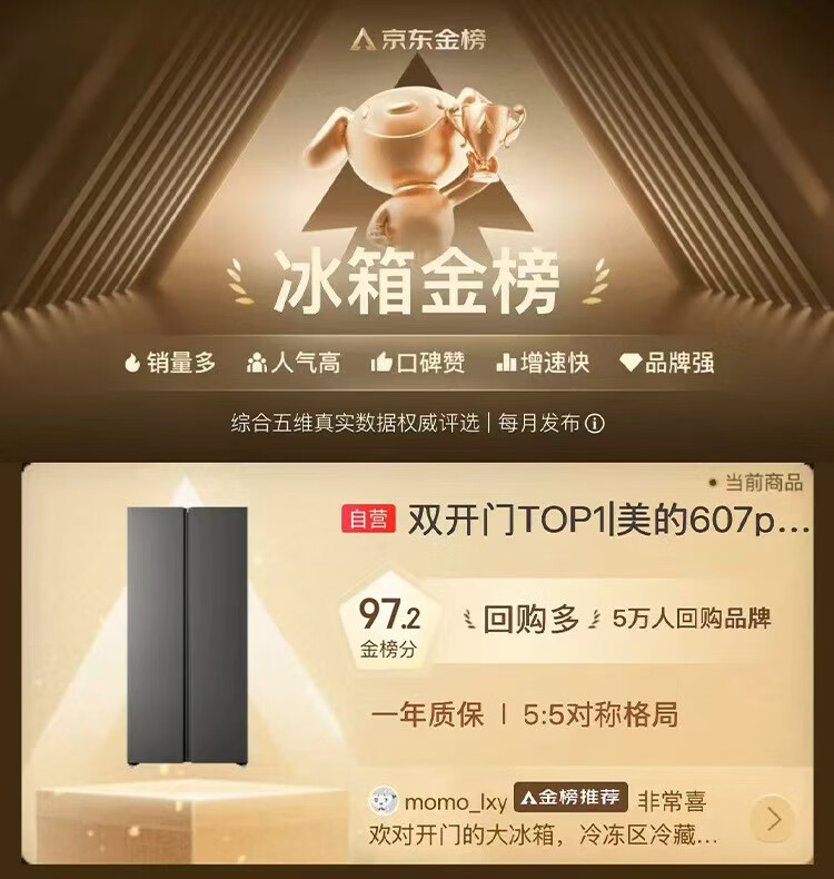 美的(Midea)607升pro升级款双开门冰箱超大容量一级能效风冷无霜大冷冻星辰砂BCD-607WKPM(E)以旧换新国家补贴