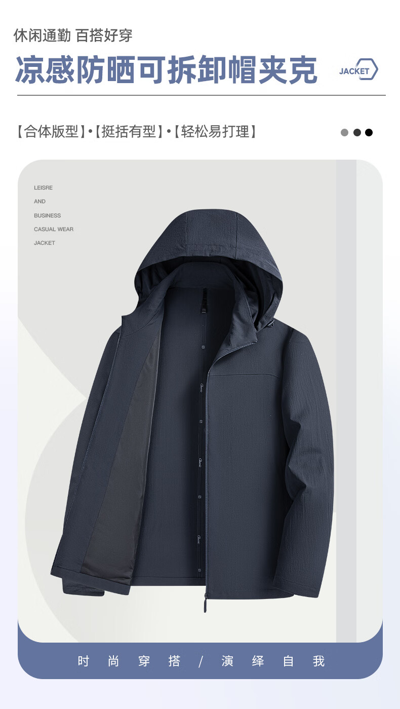 SHANSHAN杉杉【防晒可拆帽】夹克男透气抗皱挺括简约通勤夏季薄款外套衣服 咖色 M /170