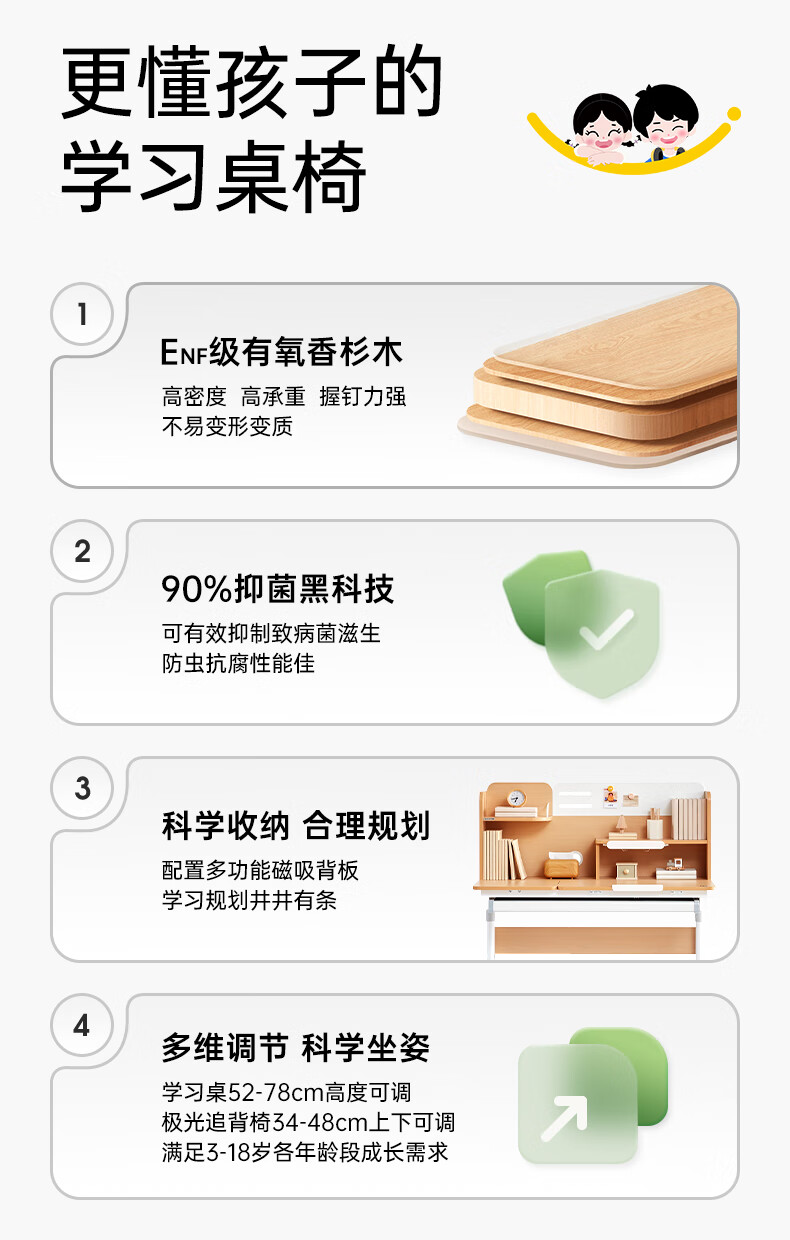 护童儿童学习桌椅实木芯可升降中小学生写字桌书桌套装DD 启明星实木芯+正姿器DD