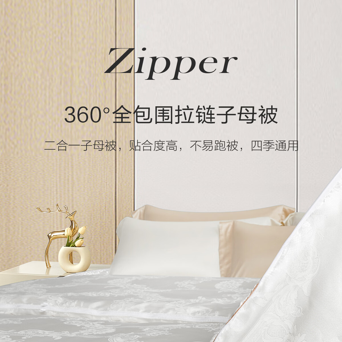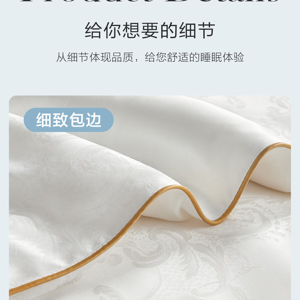 博洋(BEYOND)博洋提花蚕丝被100%蚕丝子母春秋被芯被子冬被芯四季通用 【提花+A类防螨抑菌】洛菲白 150*210cm 夏凉被