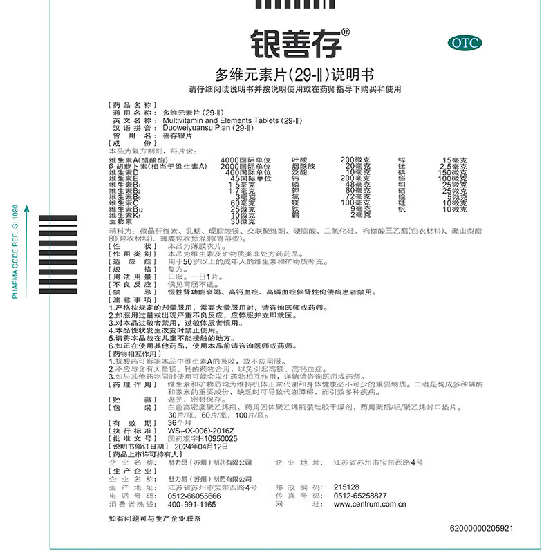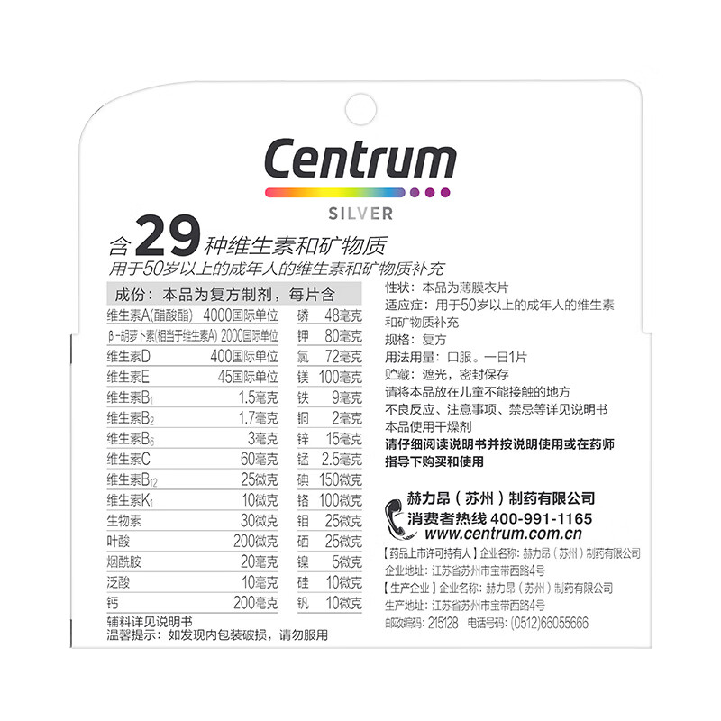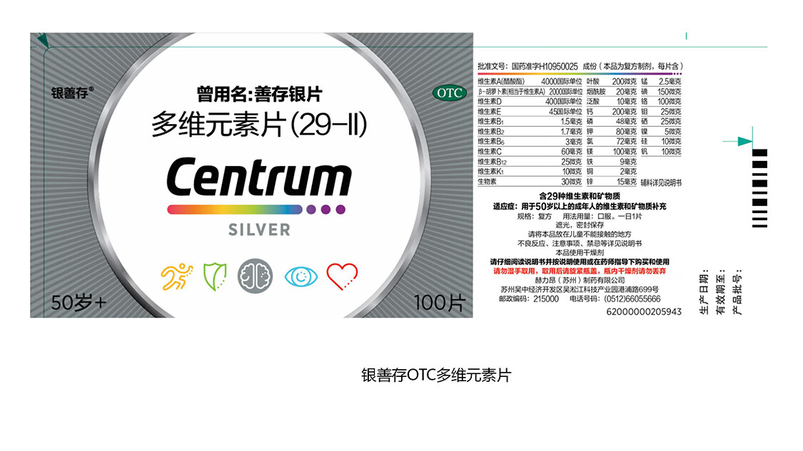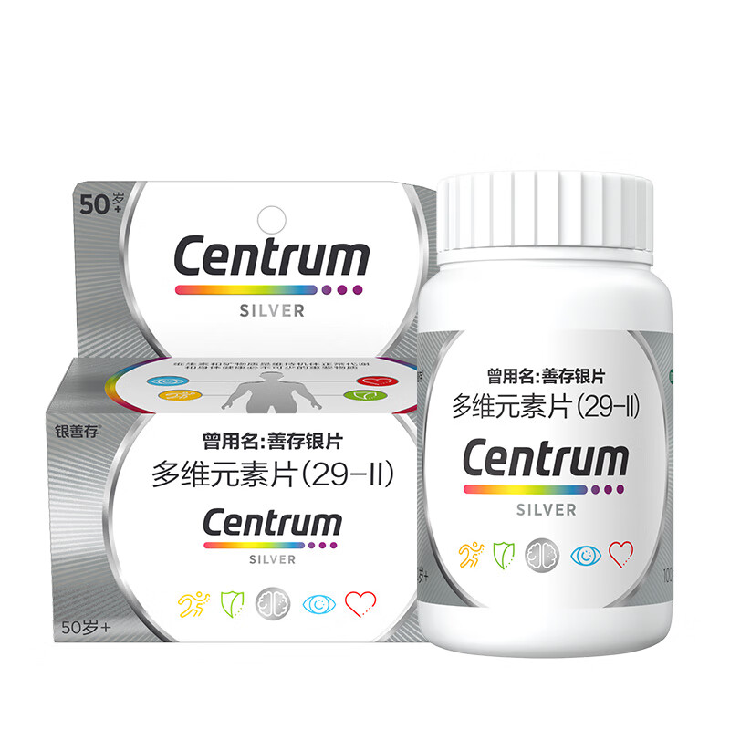 银善存中老年多维元素片100片OTC银片补充29种复合维生素d矿物质B族维生素c铬锌钾镁成人50岁