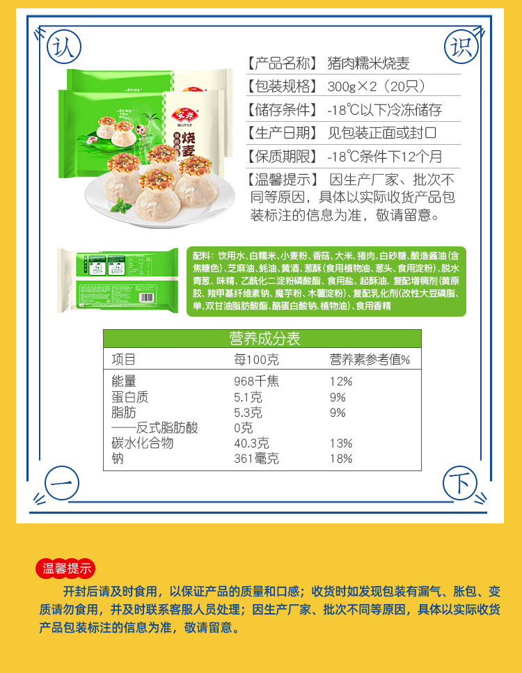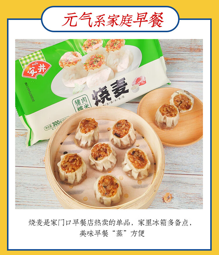 安井猪肉糯米烧卖 300g*2袋 共20个烧麦 速冻家庭面点 早餐半成品