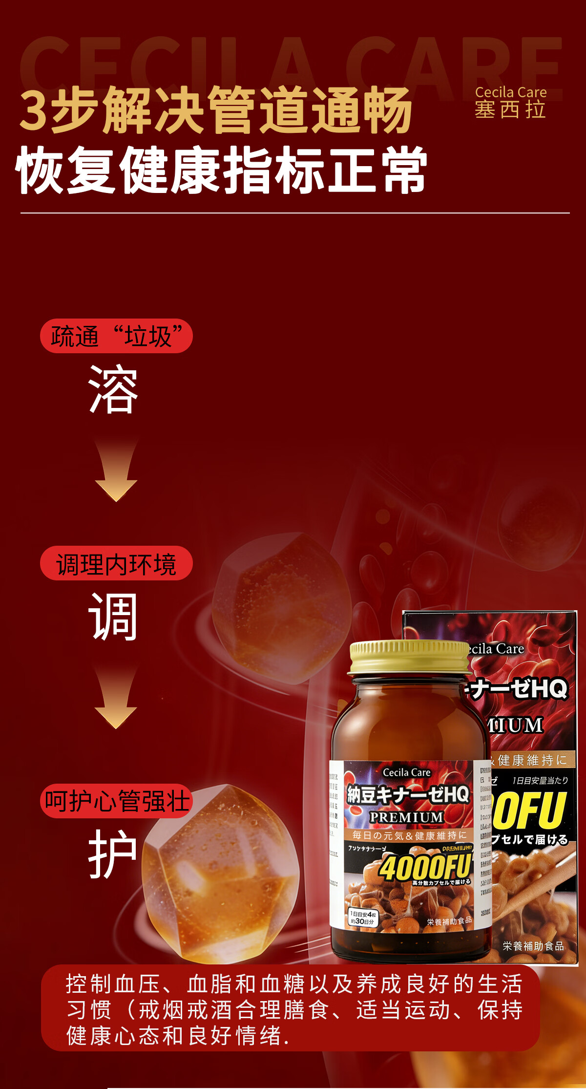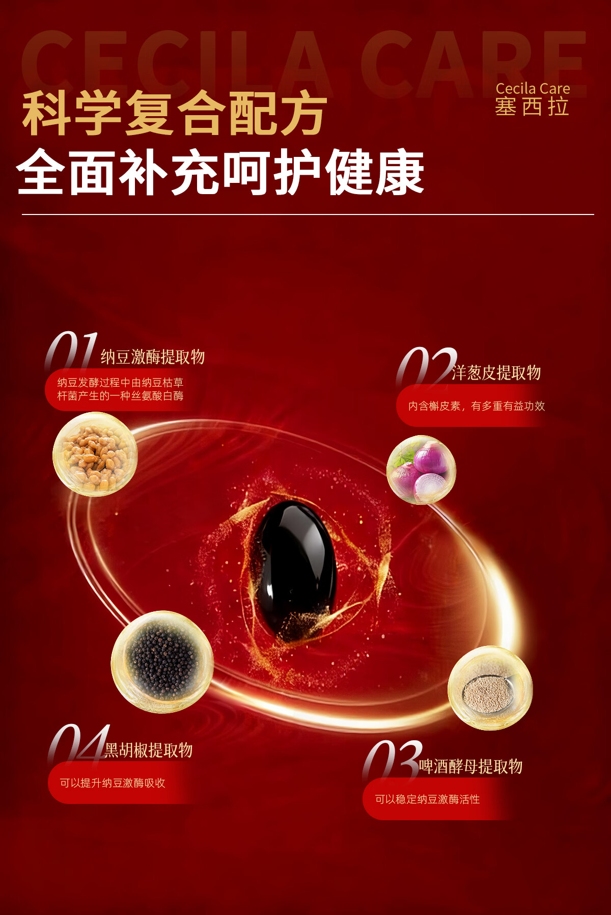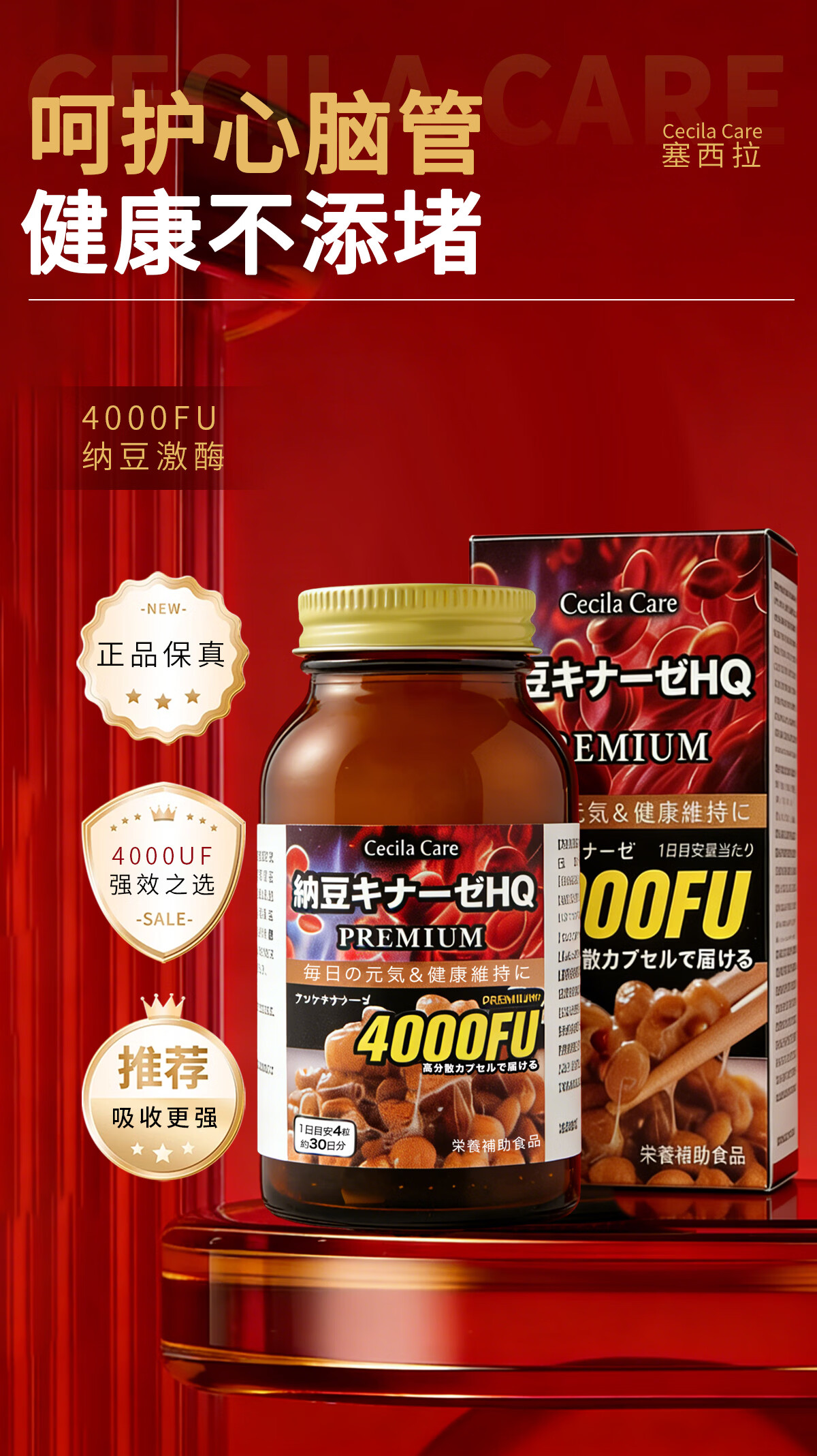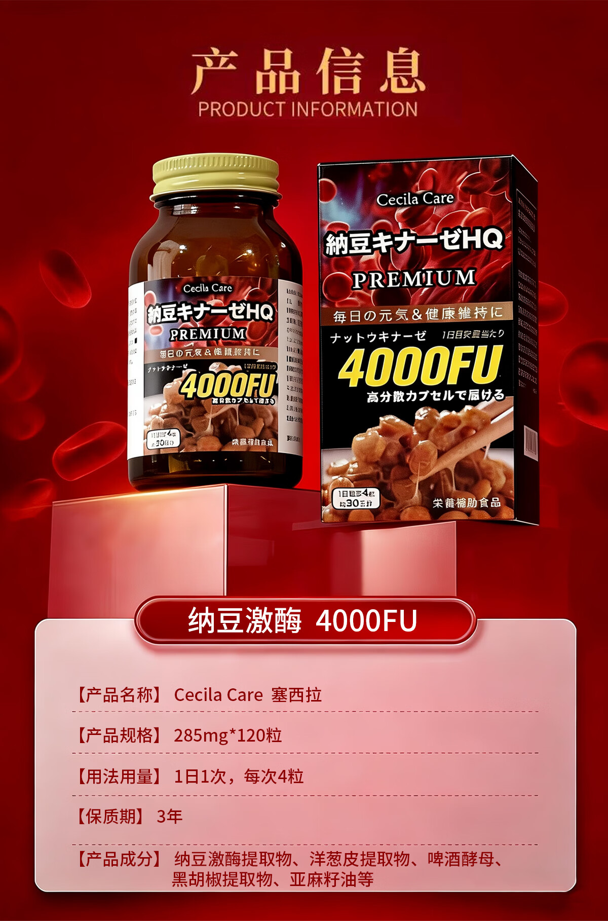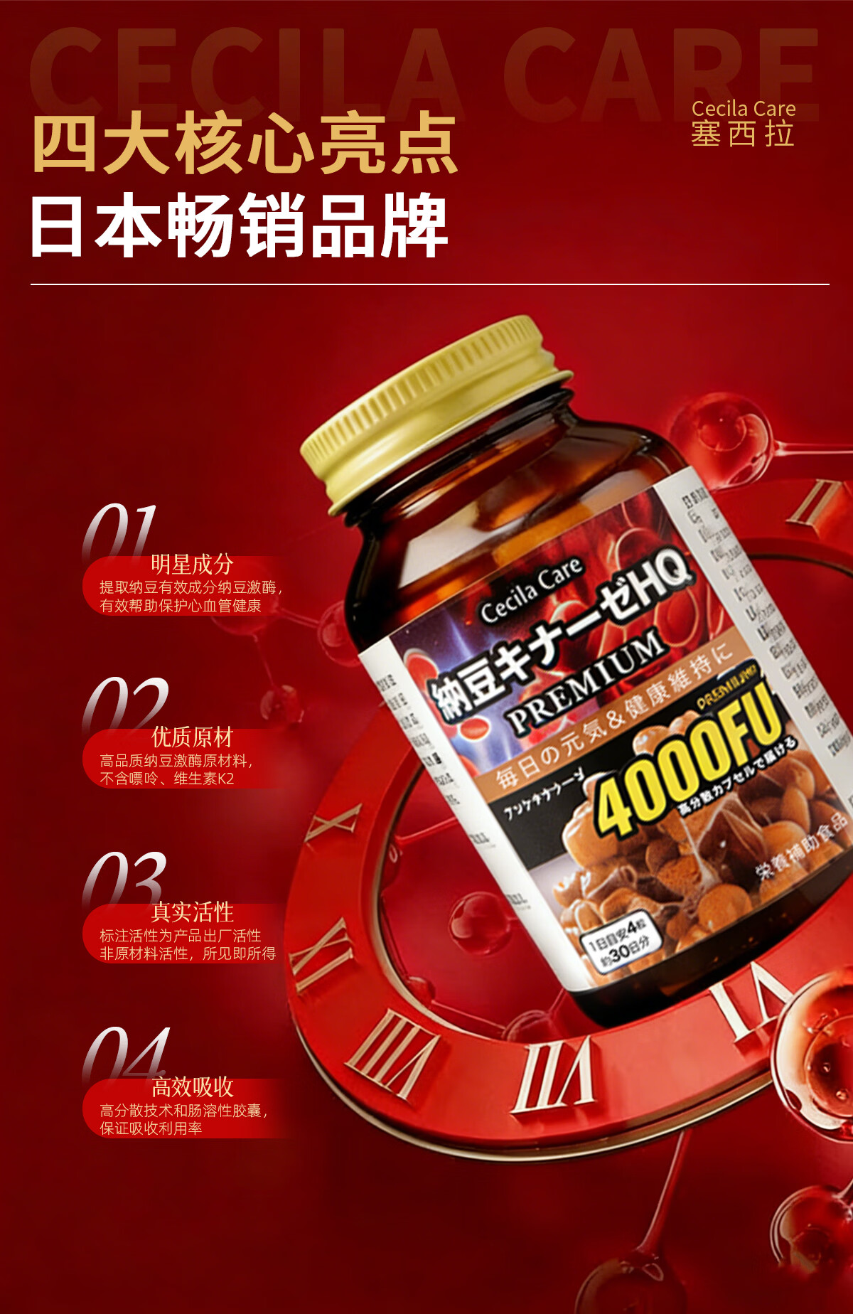 Cecila Care塞西拉日本进口高分散性纳豆激酶胶囊4000FU中老年心脑血管健康 高活性纳豆激酶胶囊 120粒*1瓶 4000FU