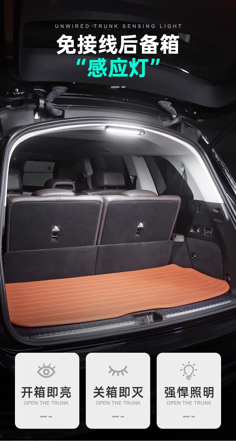 蹬捷SUV越野汽车后备箱灯自动感应灯磁吸免接线后排阅读灯车内照明灯 1300毫安续航130天【30颗led灯珠】双排灯珠1条装