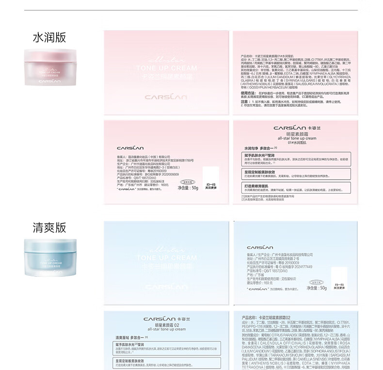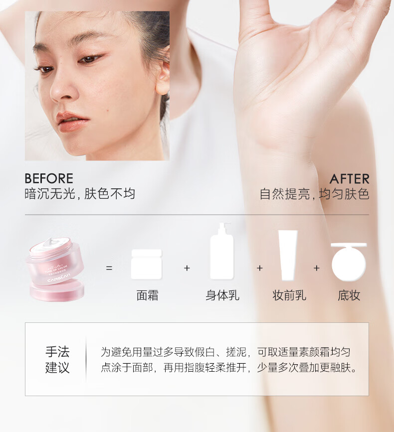 卡姿兰(Carslan)素颜霜女懒人遮瑕防水防汗自然提亮身体面部裸妆隔离保湿学生男女 明星素颜霜-经典版 50g (套餐一)