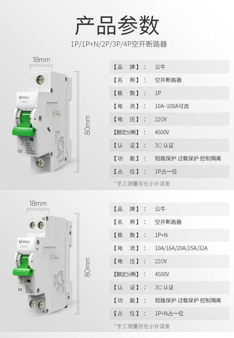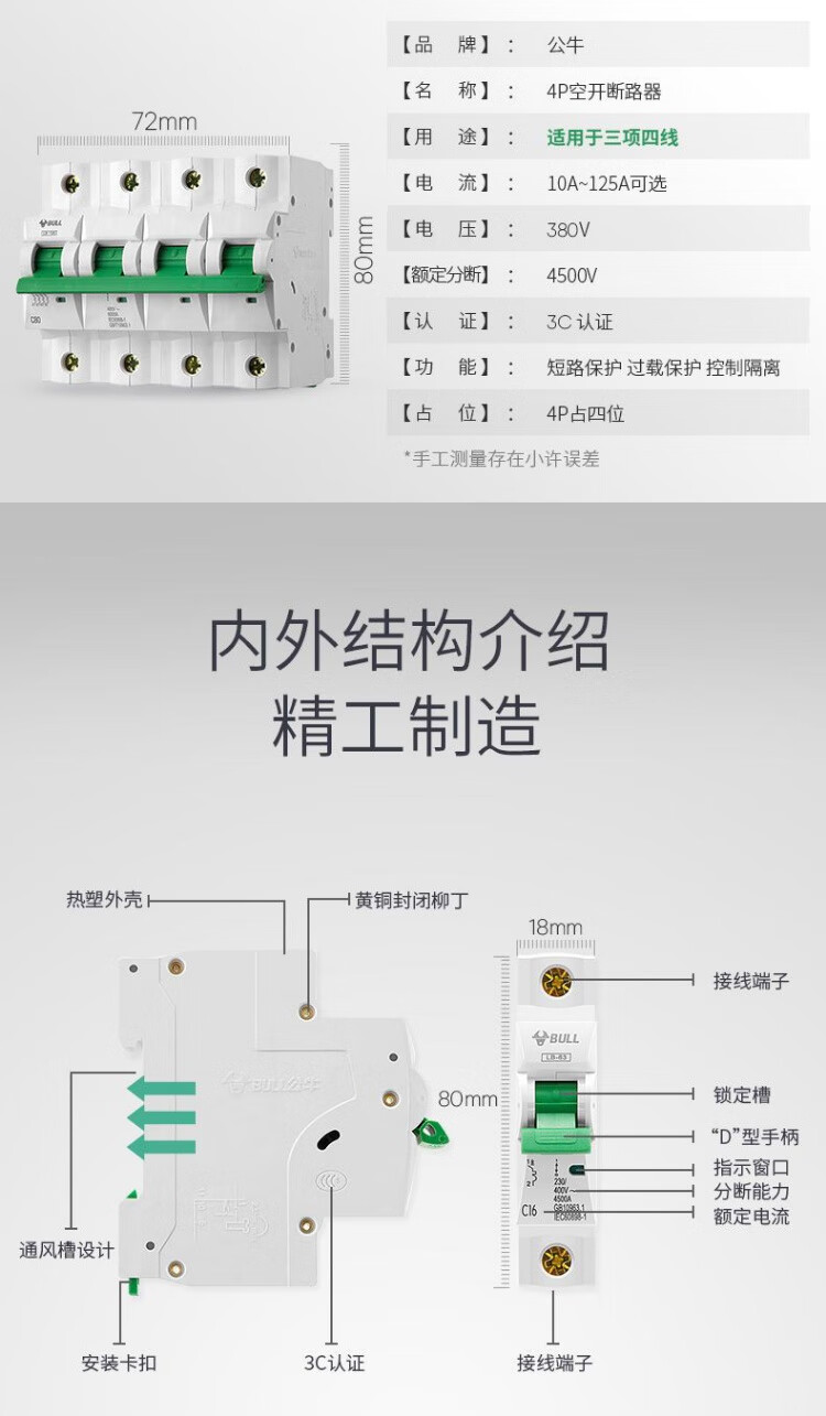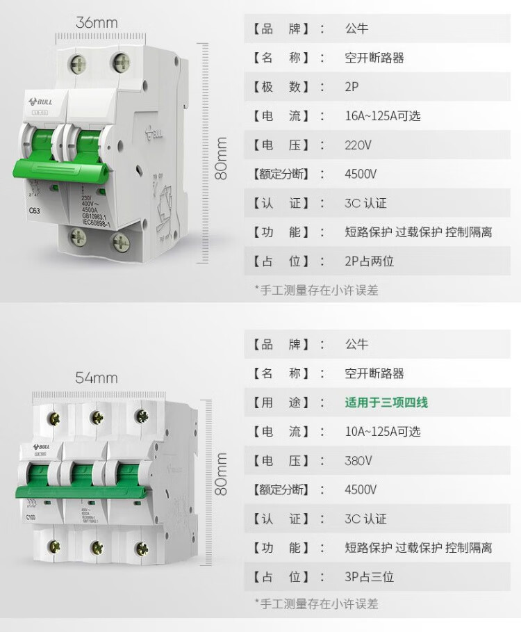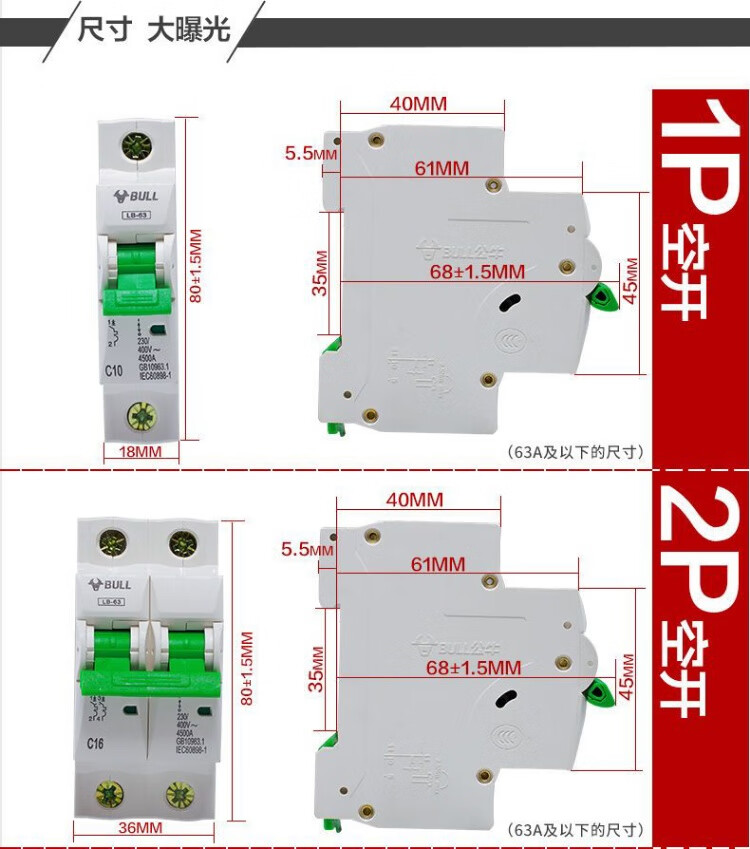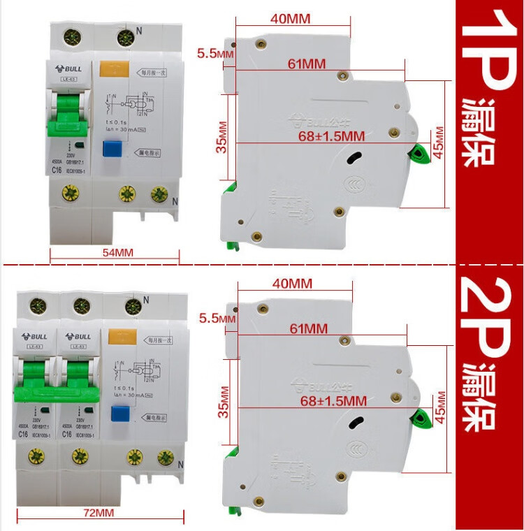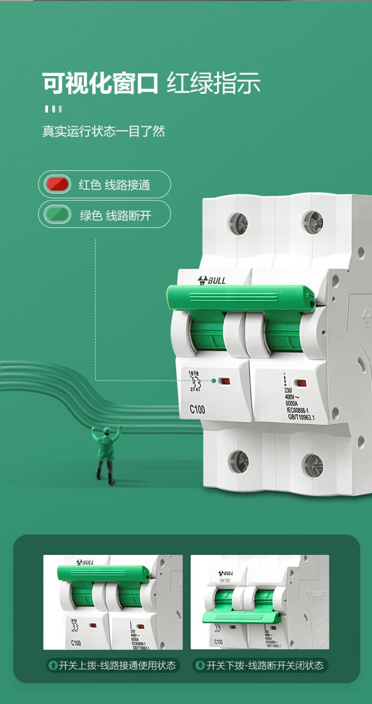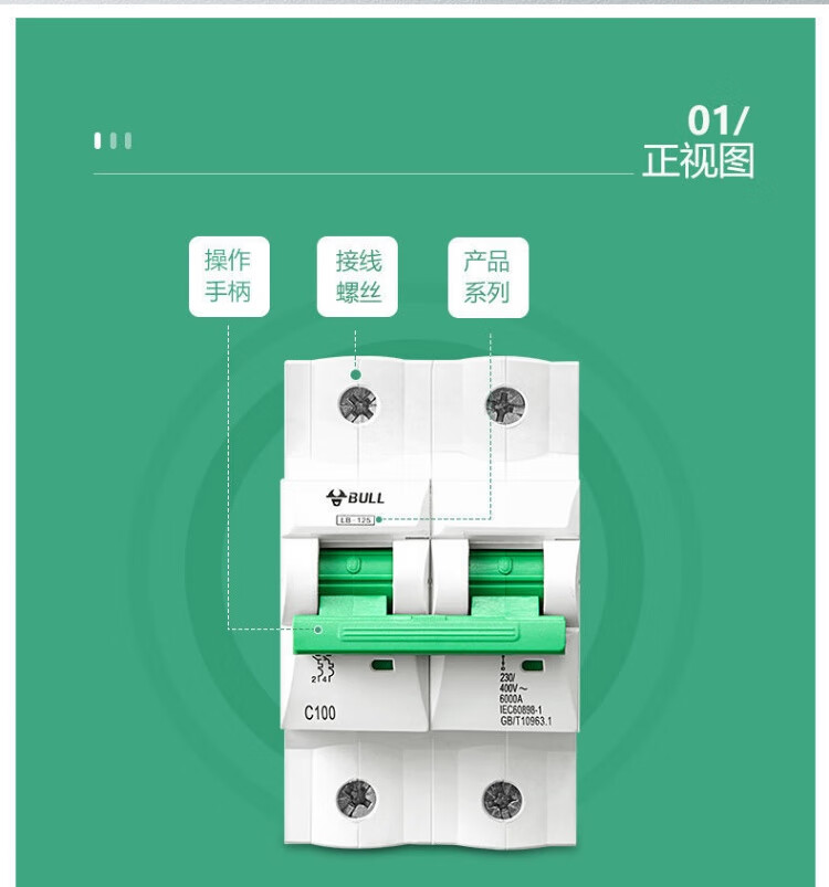 公牛公牛保护器家用断路器电闸刀空开端子电源工业品空调窄体配电箱 白色2P 32A