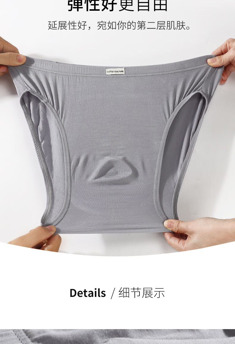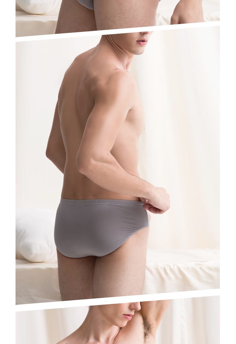 棉文化男士内裤无痕三角裤透气薄单层80支3D冲模 灰色(低腰) M
