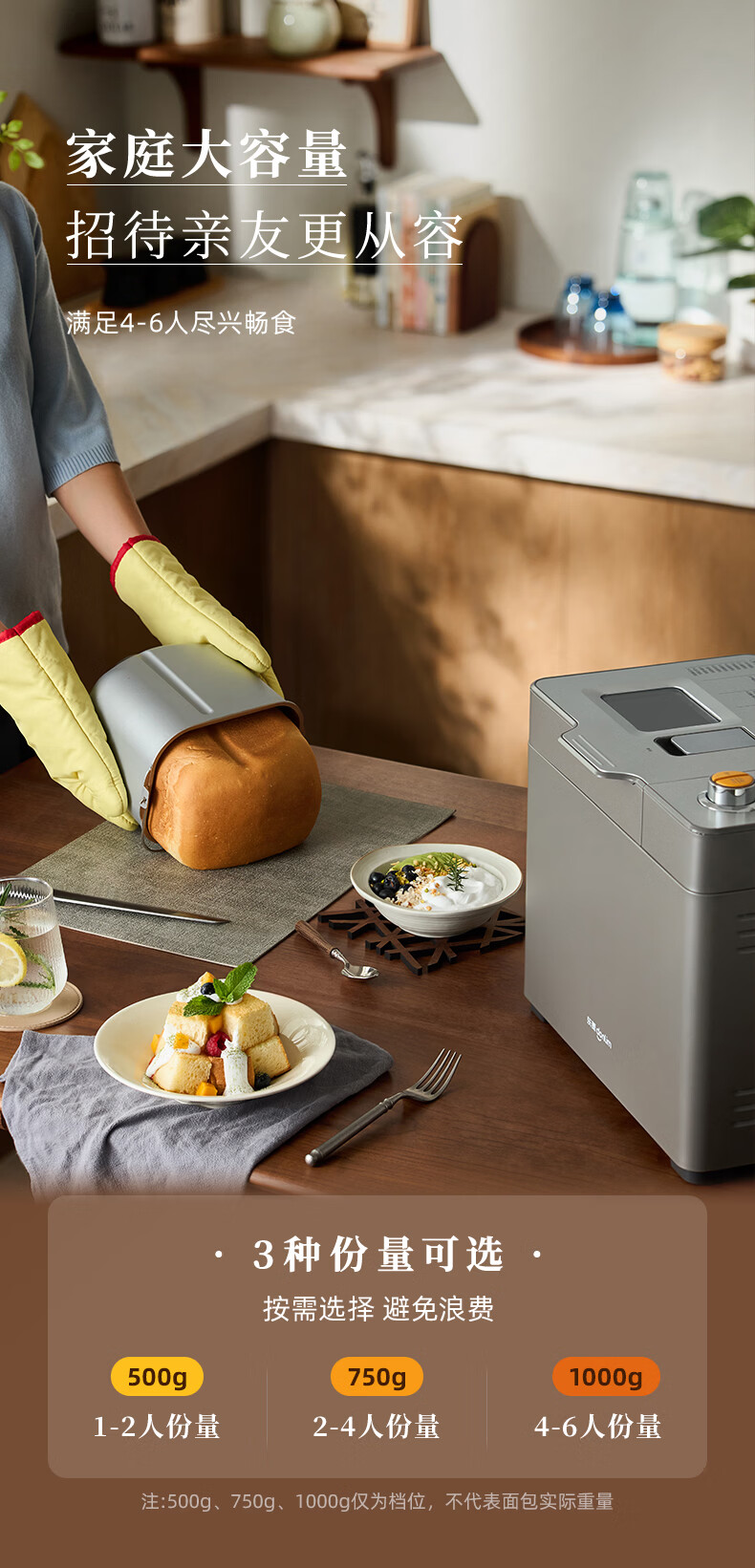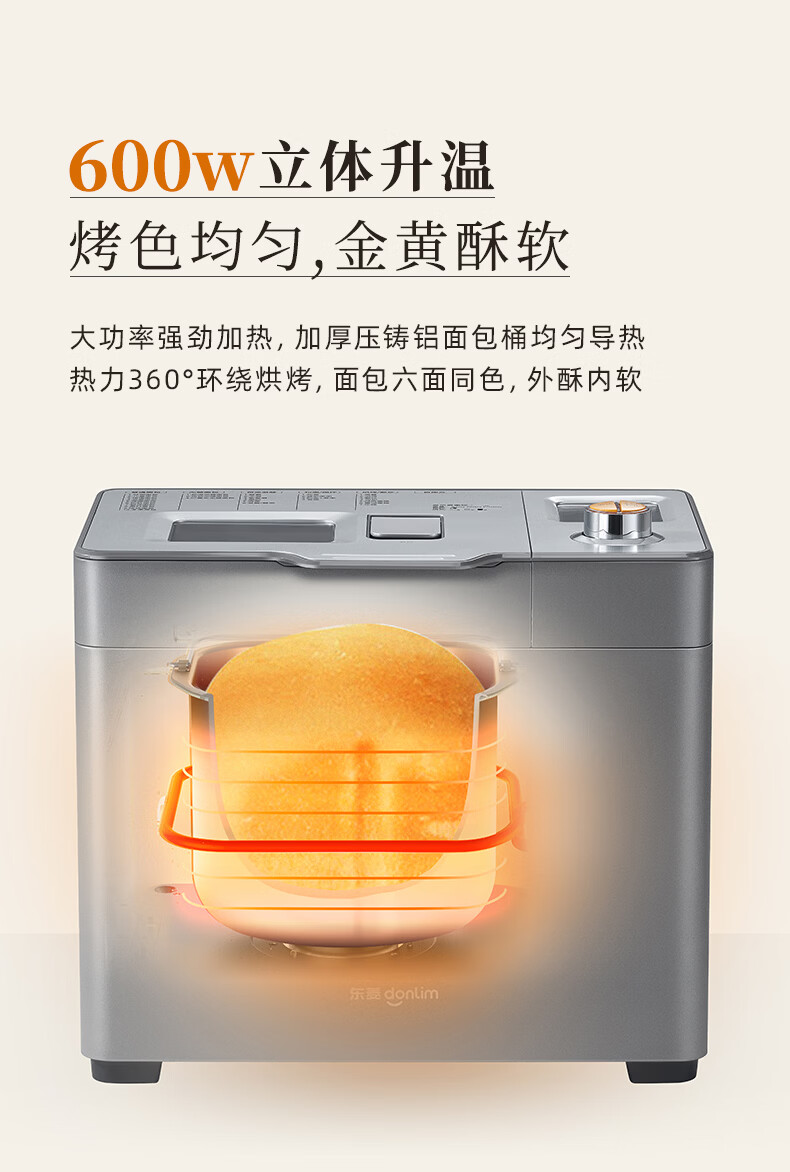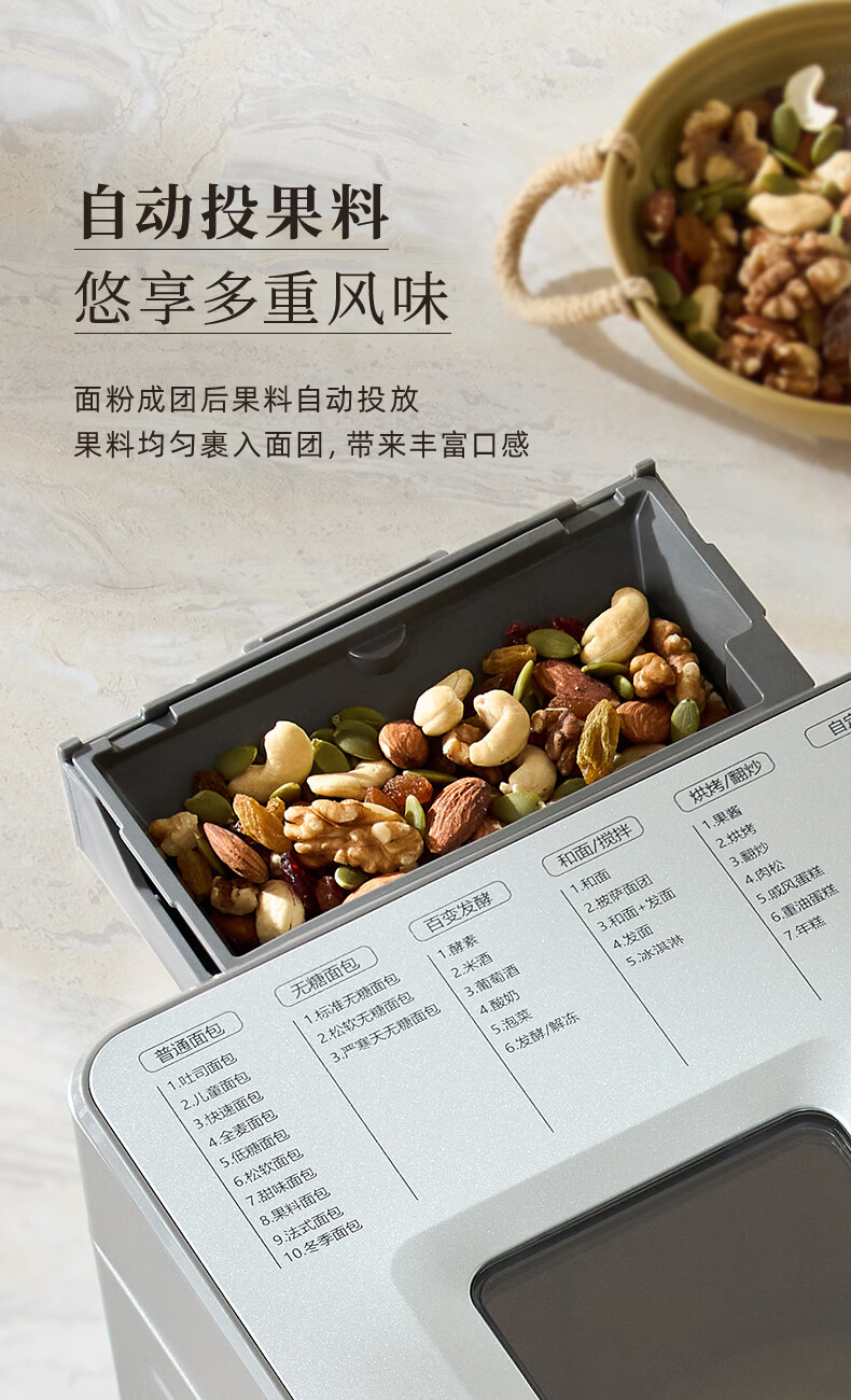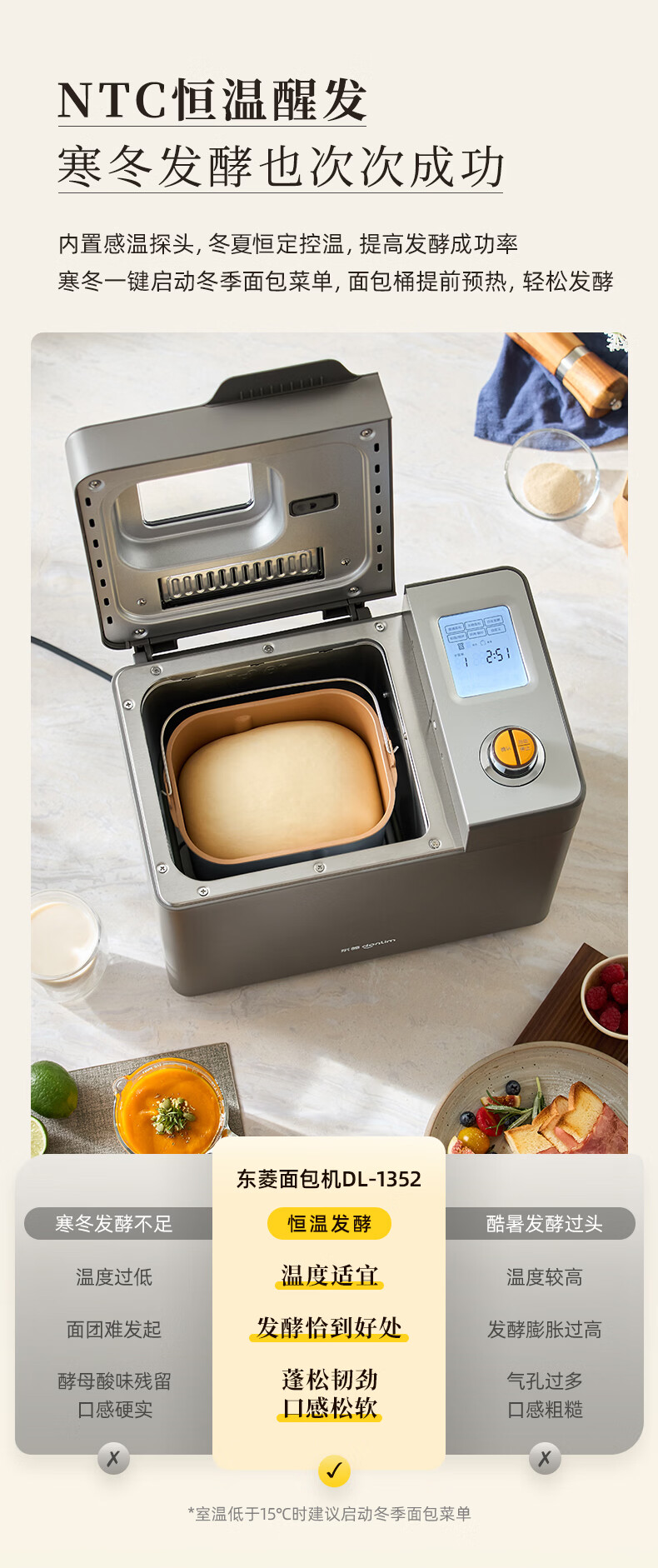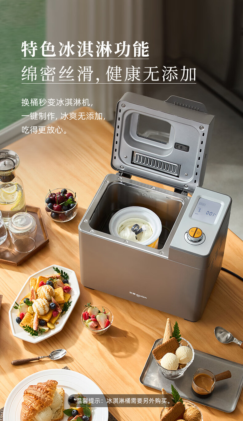 东菱(Donlim)家用全自动无糖面包机大容量智能双撒大功率可预约多功能和面机冰淇淋机DL-1352灰+冰淇淋桶套装