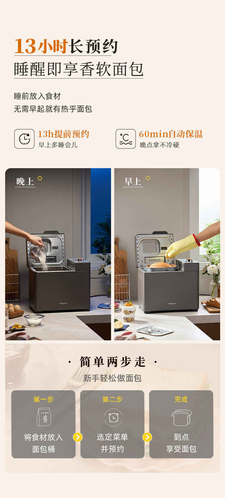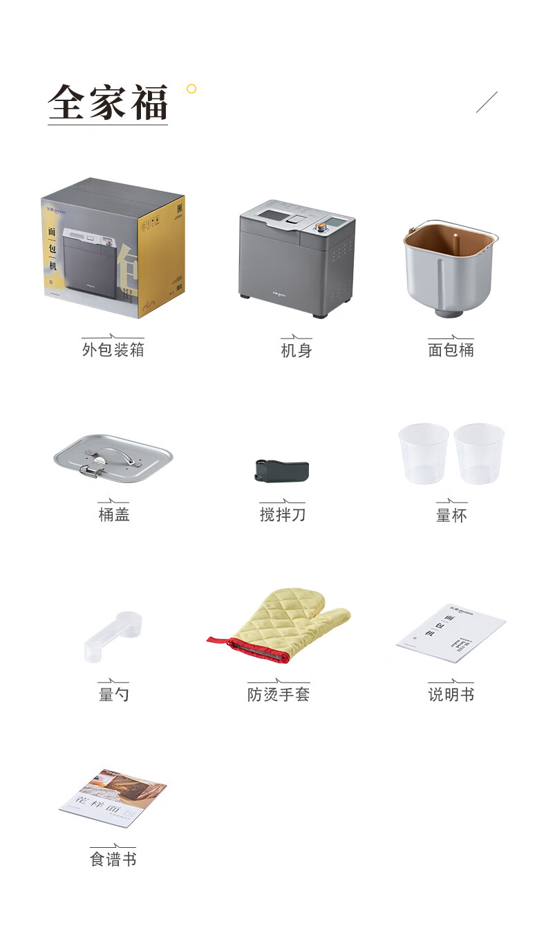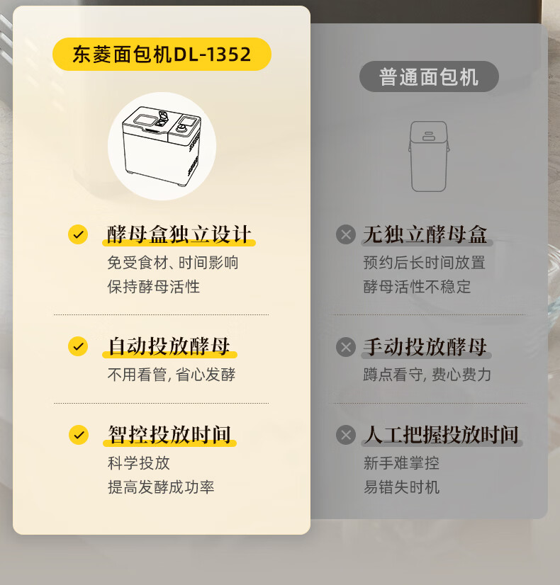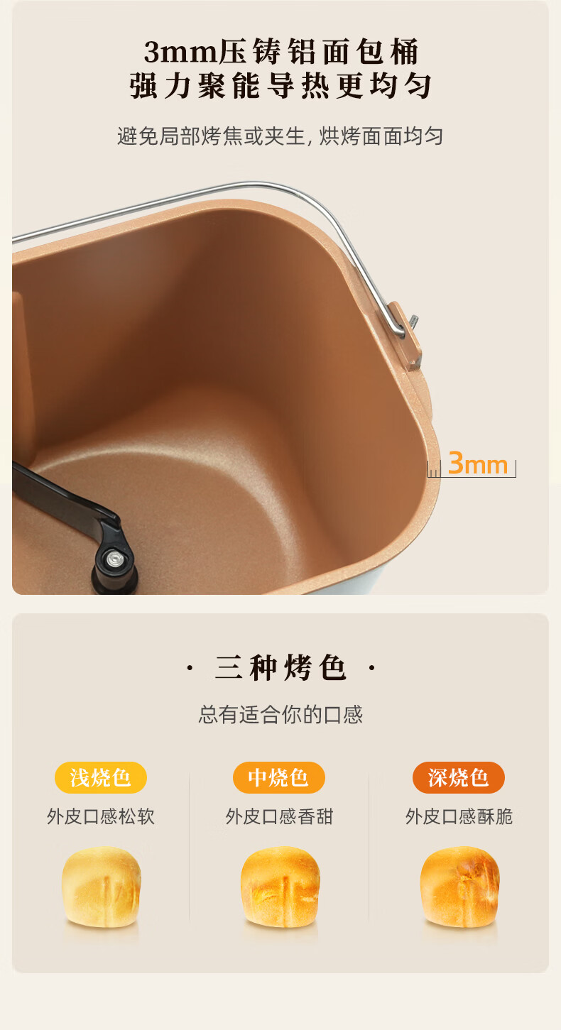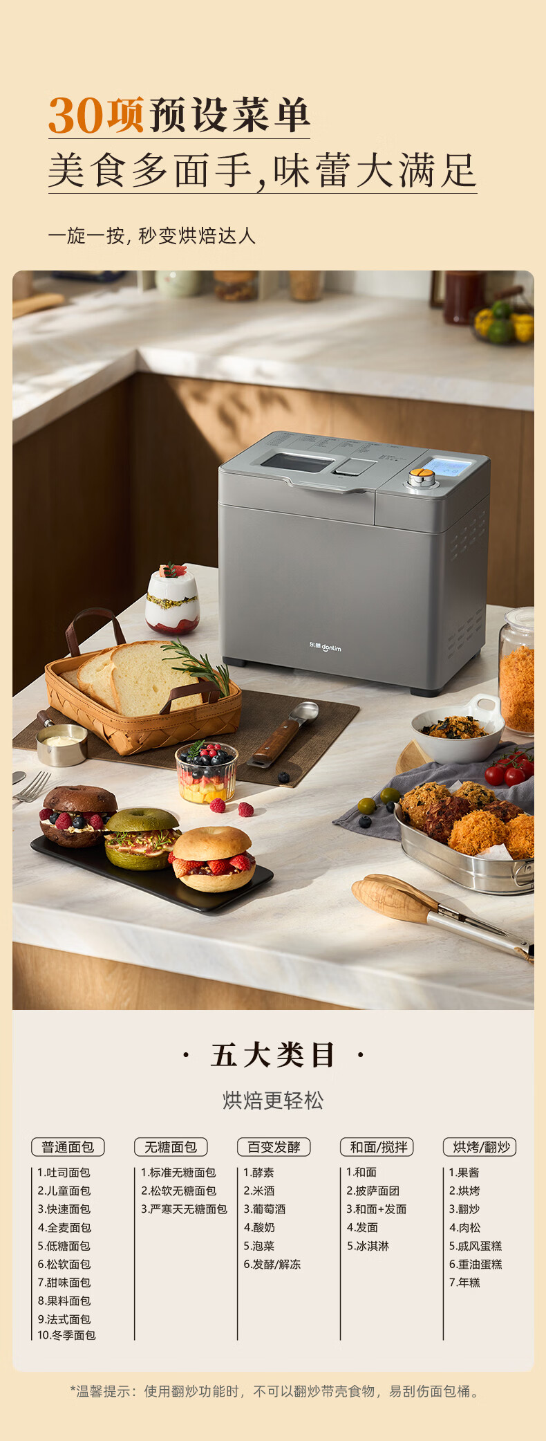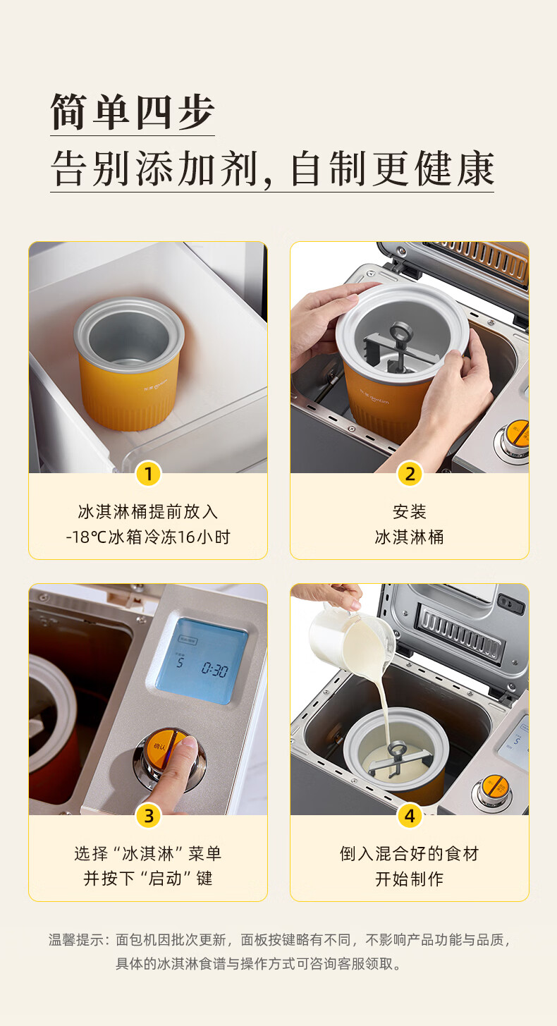 东菱(Donlim)家用全自动无糖面包机大容量智能双撒大功率可预约多功能和面机冰淇淋机DL-1352灰+冰淇淋桶套装