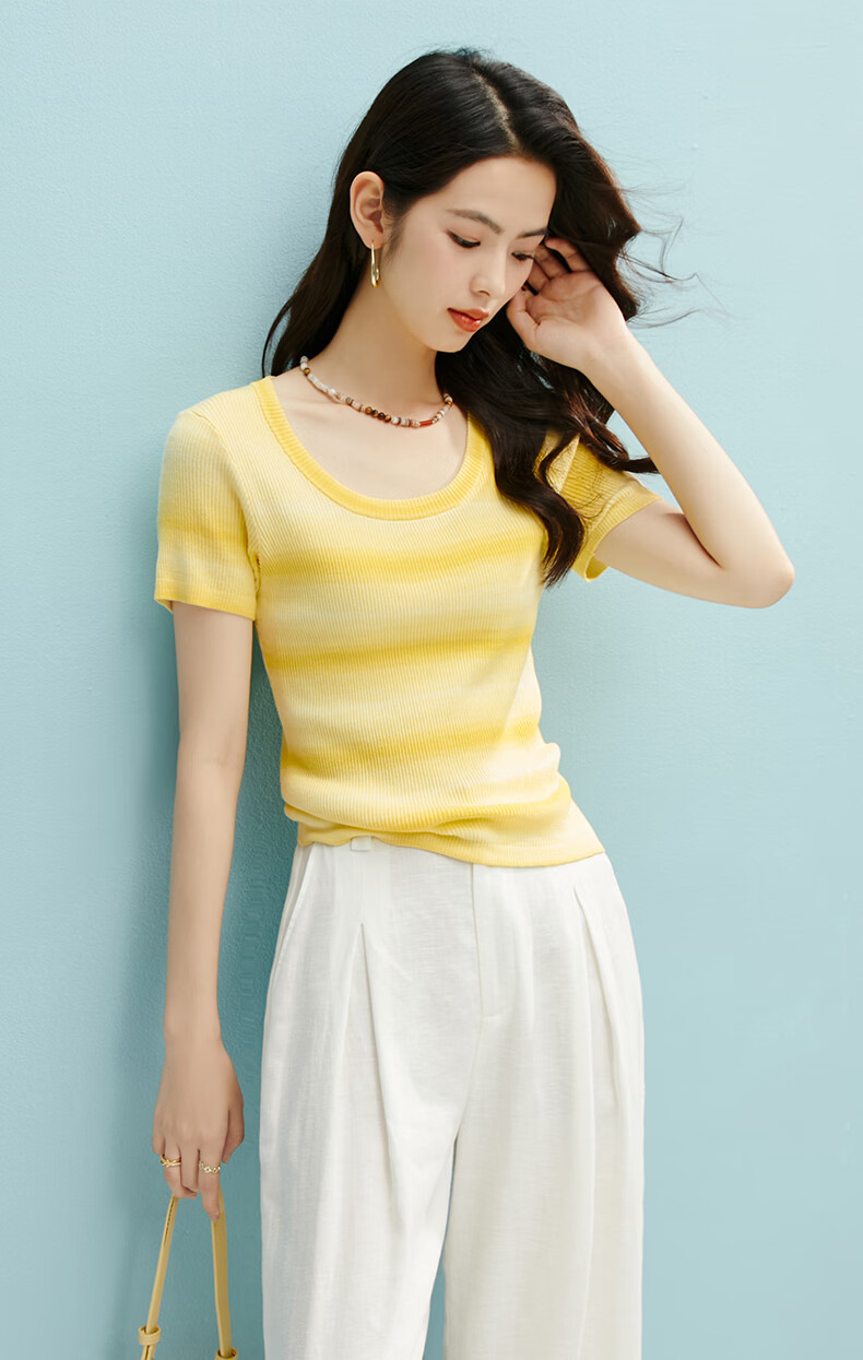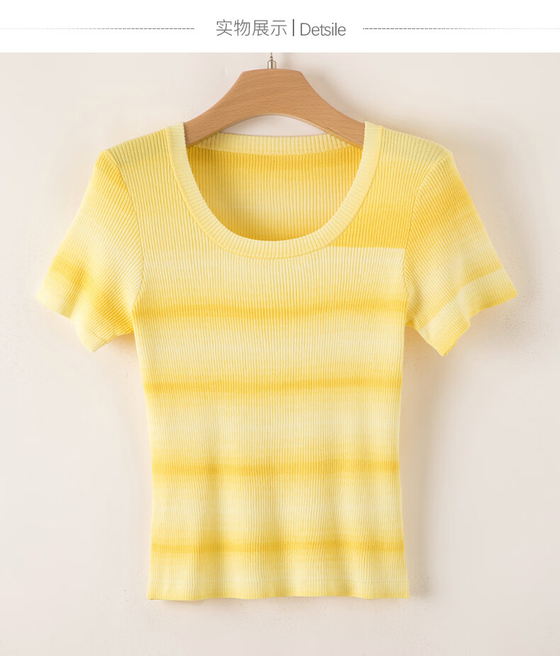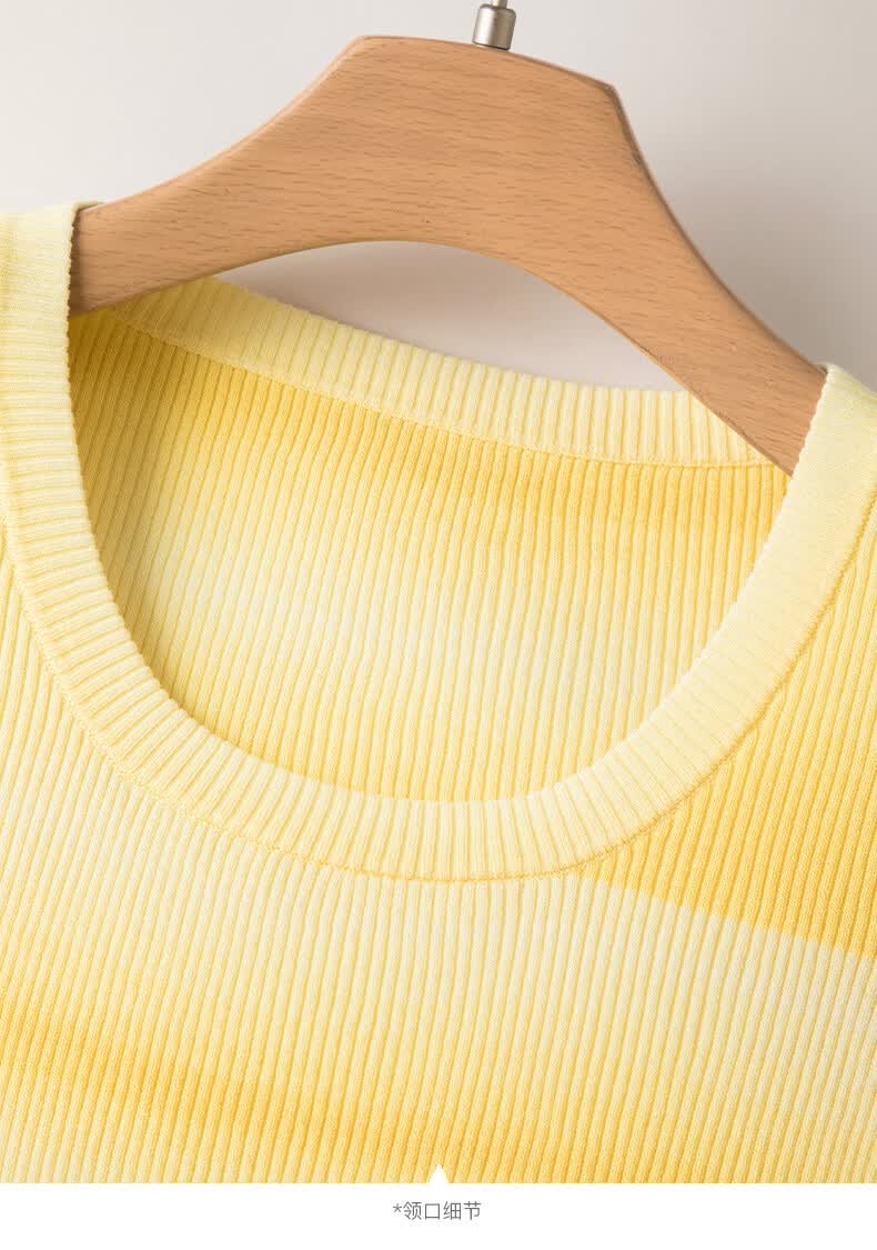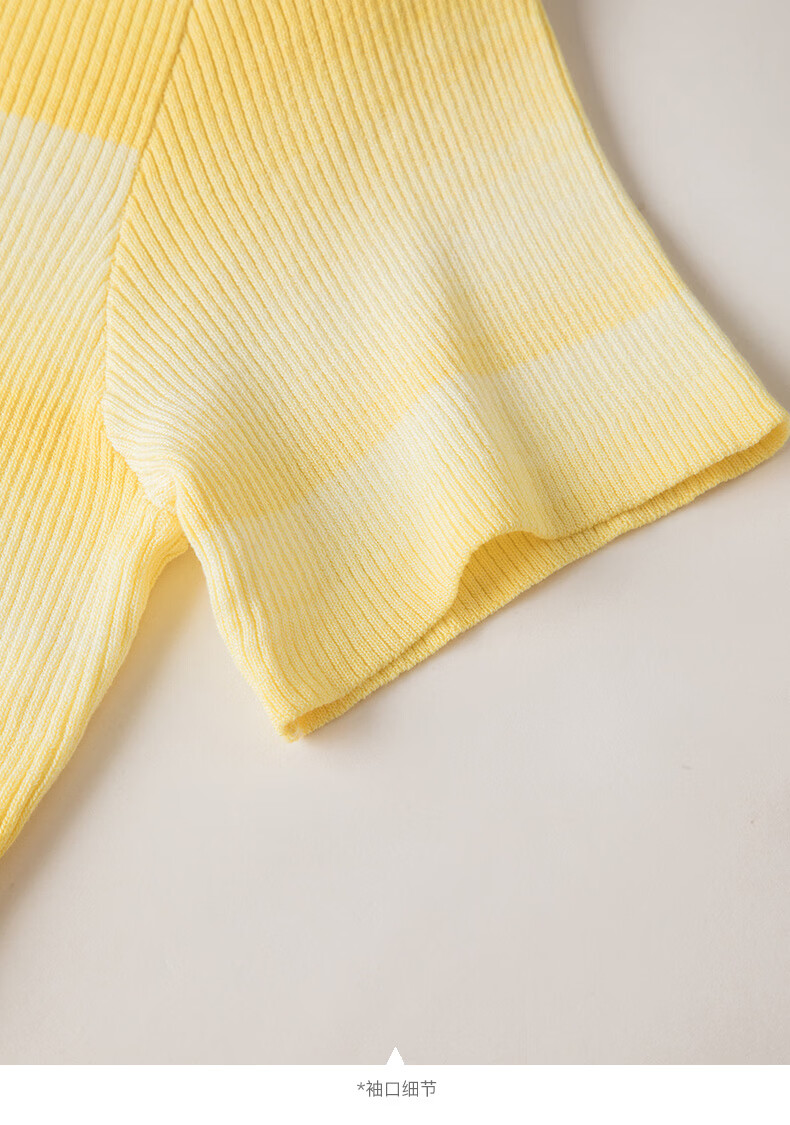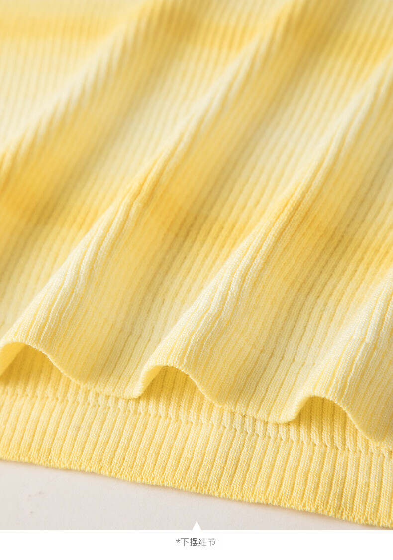 晚白2026夏款时尚竖纹肌理短袖上衣弹力修身冰丝凉感针织T女 黄色 S