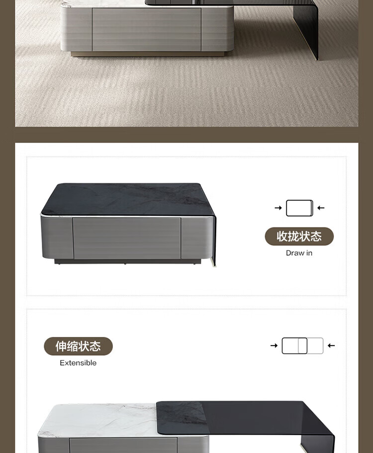 梵木领秀胡桃木移动升降茶几餐桌二合一客厅高级感新中式电动茶几方圆两用 【胡桃木纹】语音+按键升降 1.1米