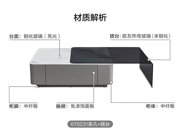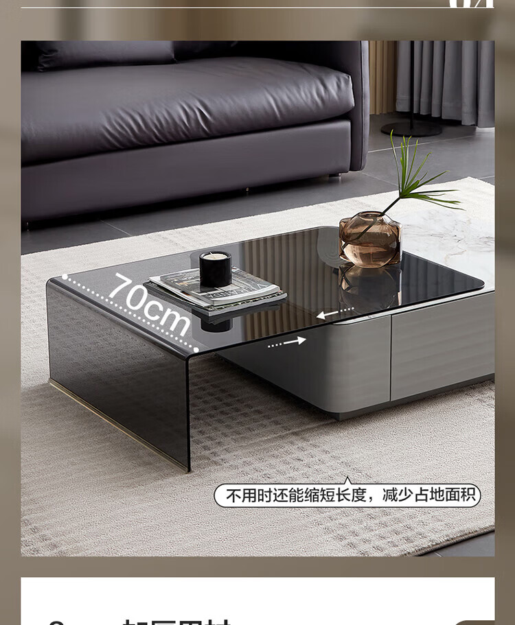全友(QUANU)【迷瞪清仓货盘】高级感2025新款家用长方形茶几客厅小方桌矮桌 【钢化玻璃】茶几+玻璃搭台