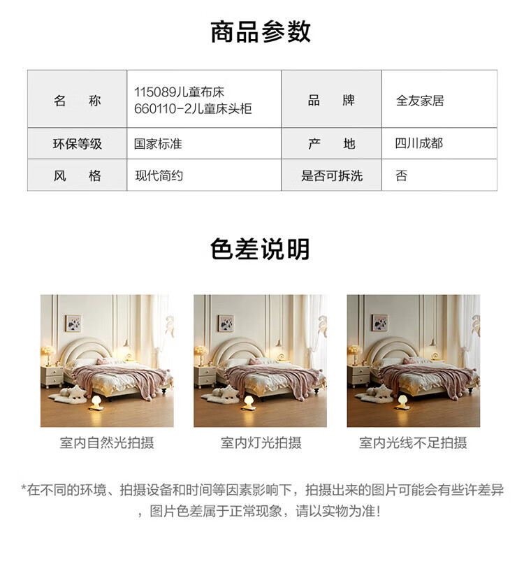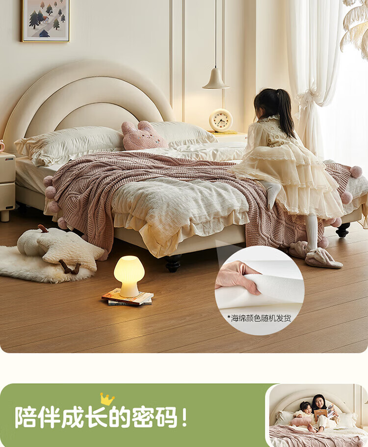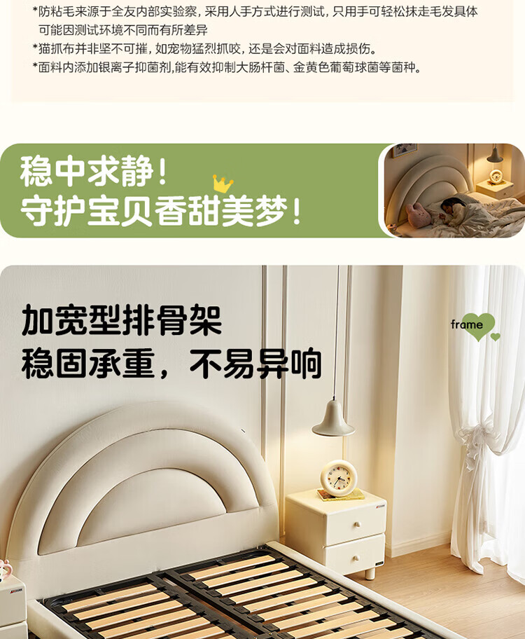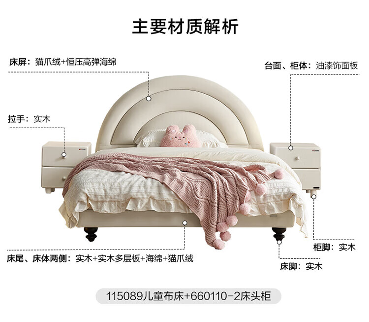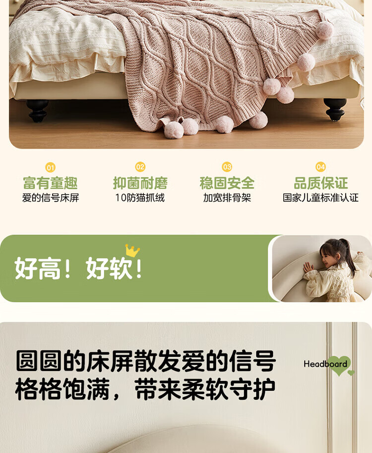 全友家居儿童软包床1.5x2米次卧室学生单人床青少年男孩女孩实木脚床 10防猫抓绒|单床 1.5米