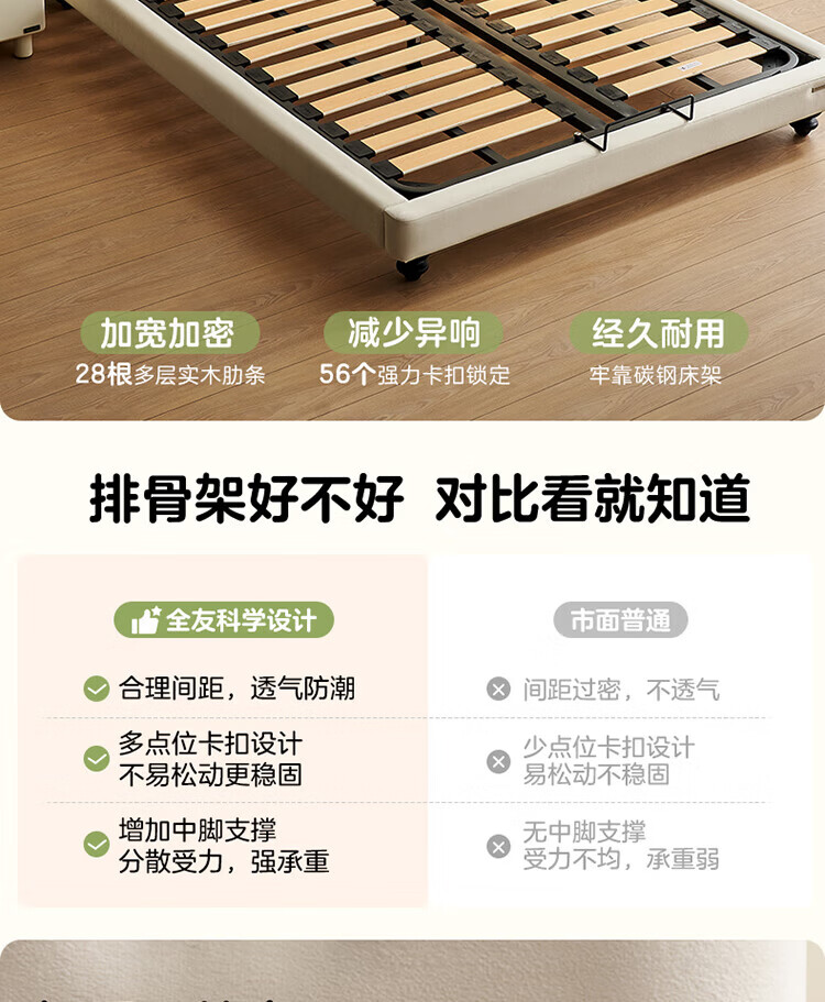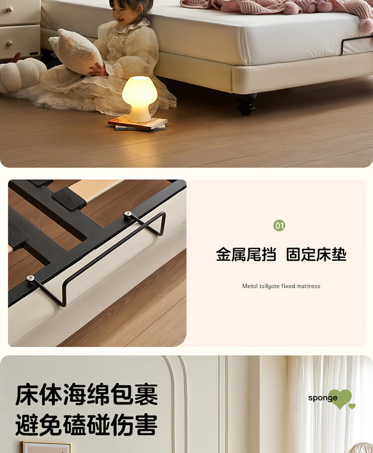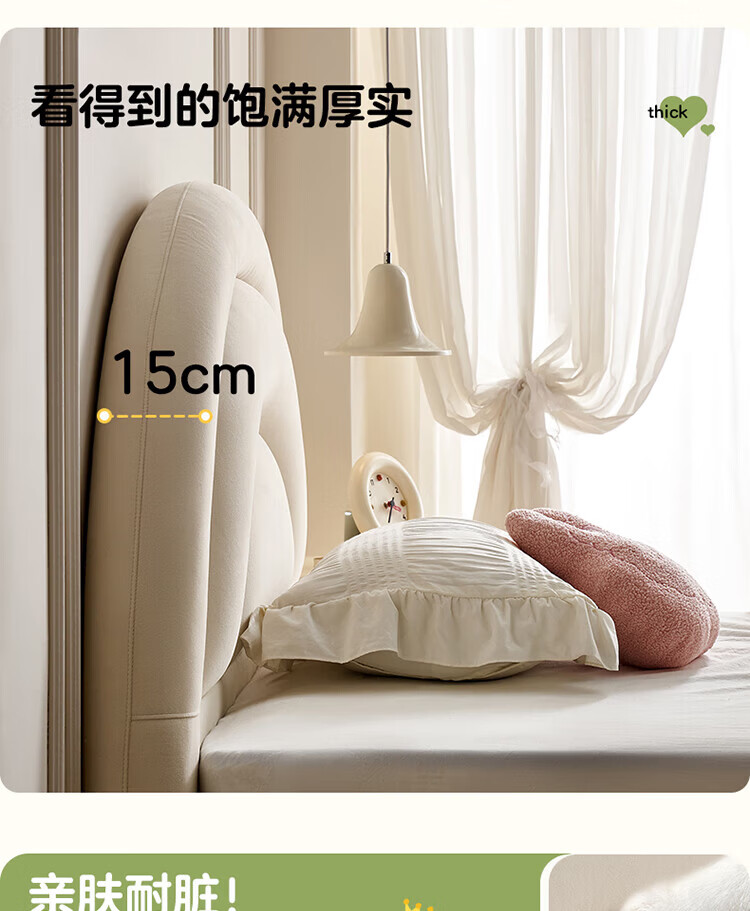 CBD家居现代简约真皮软包床双人主卧大床奶油风婚床头层牛皮甜心悬浮 甜心悬浮-奶油白单床 卷帘排骨架 1500*2000