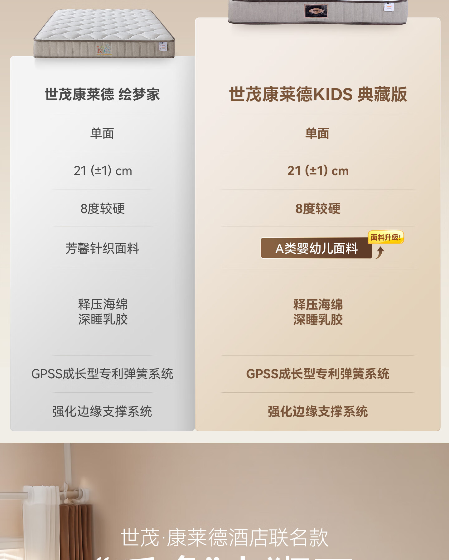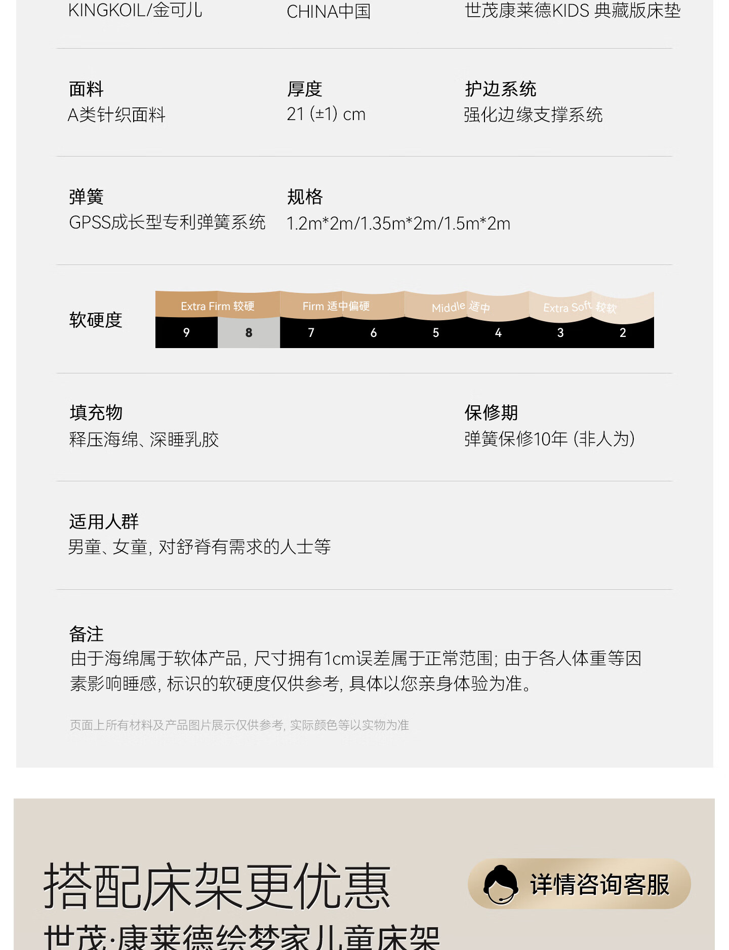 金可儿(Kingkoil)儿童床垫1.5x2米GPSS成长型弹簧偏硬护脊青少年床垫 康莱德KIDS 世茂康莱德KIDS 典藏版床垫【较硬 | 21cm】 1.2米*2米