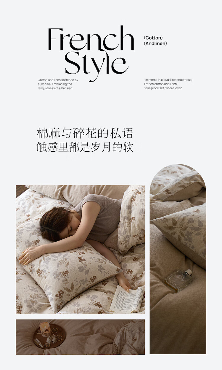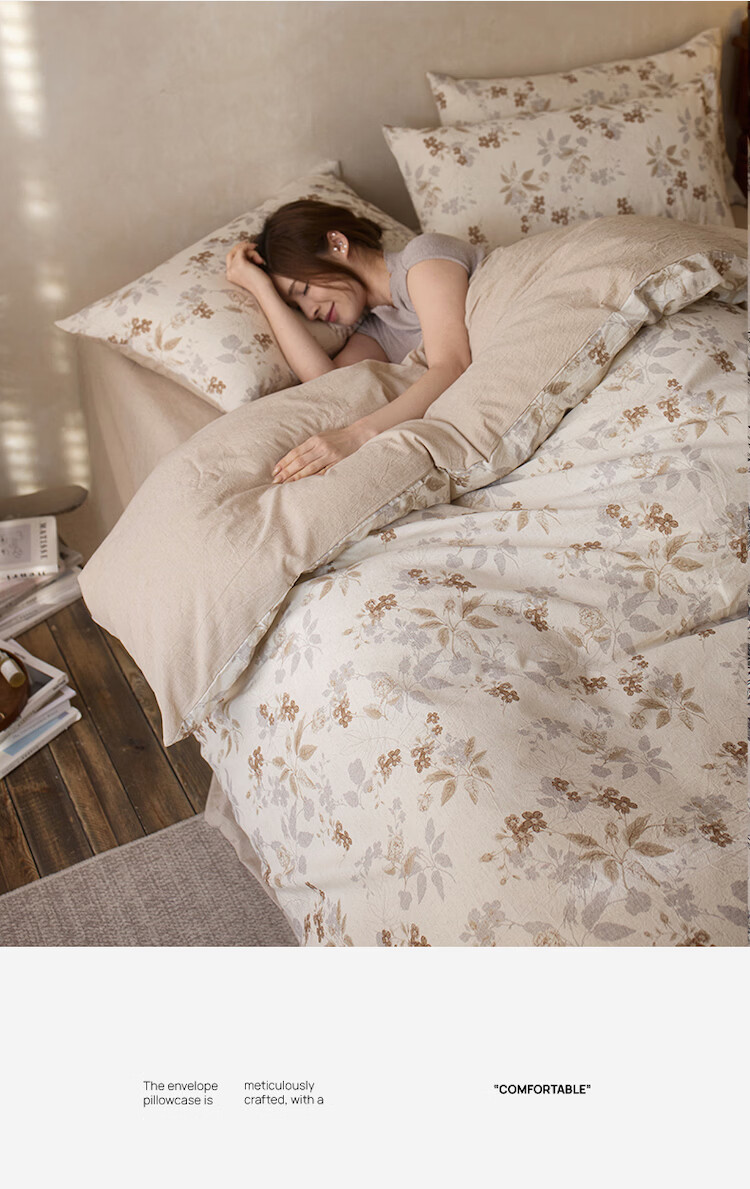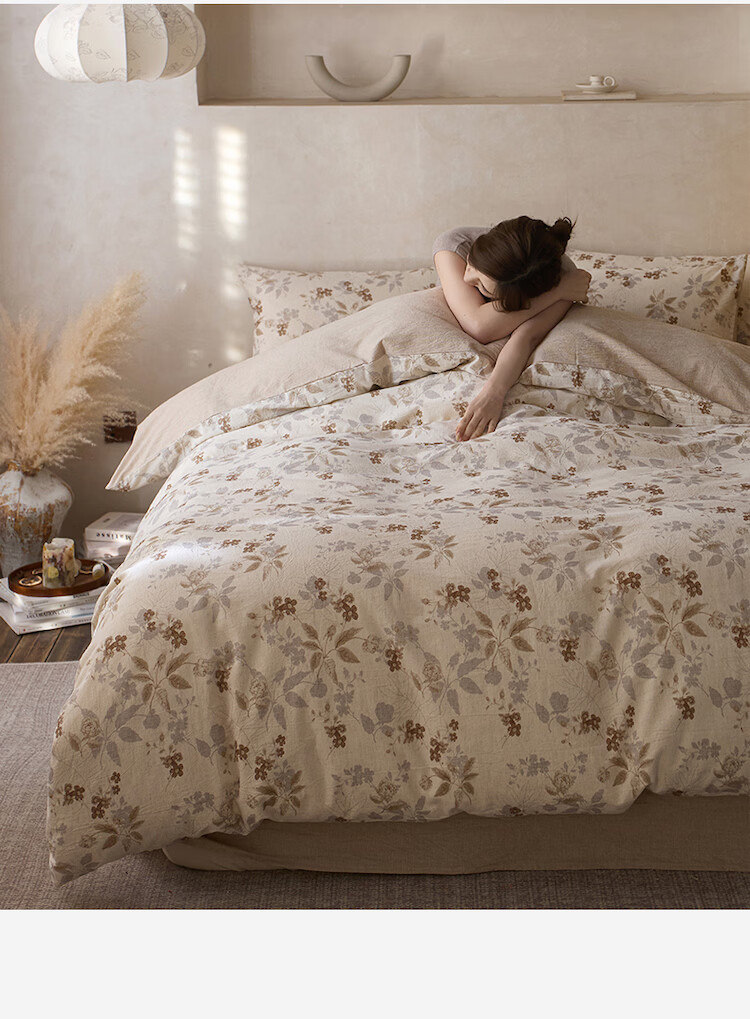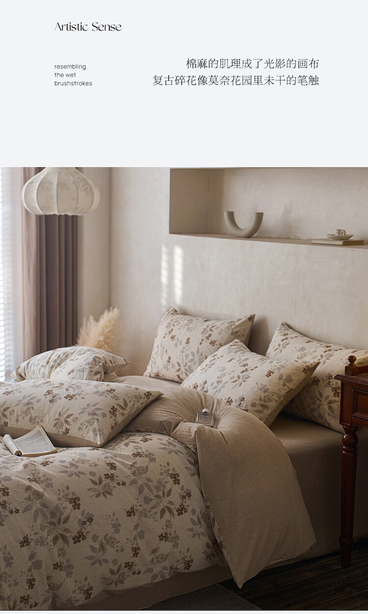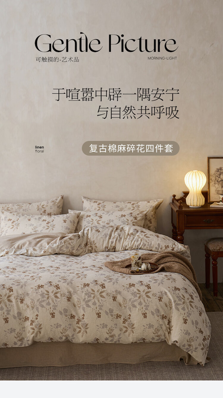 ROLAND LIVE复古风全棉棉麻碎花四件套棉麻被套床单透气柔软四季床上用品 QDS 棉麻碎花套件-花间小憩 1.2米床 床单款 【被套150*200cm】