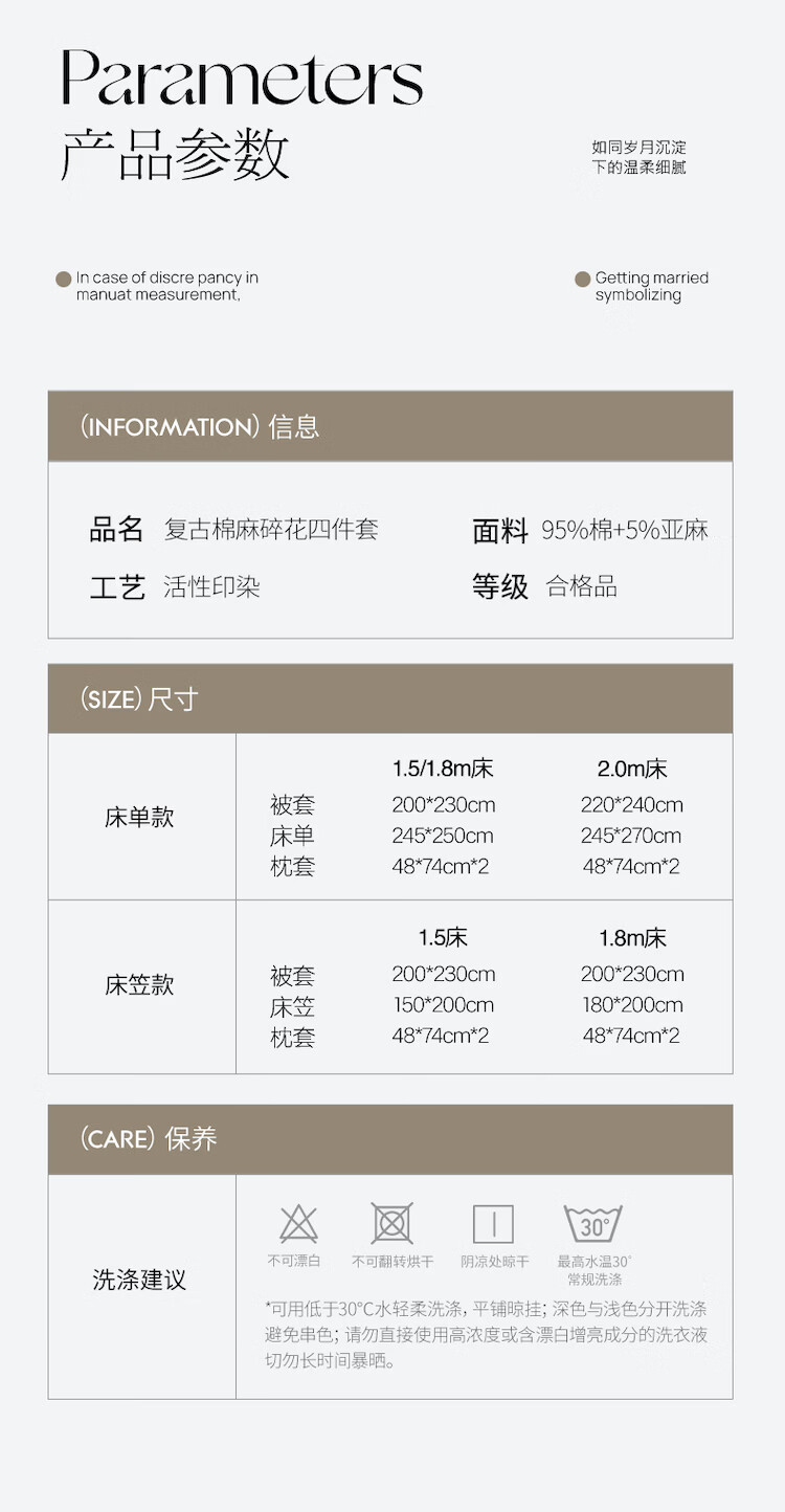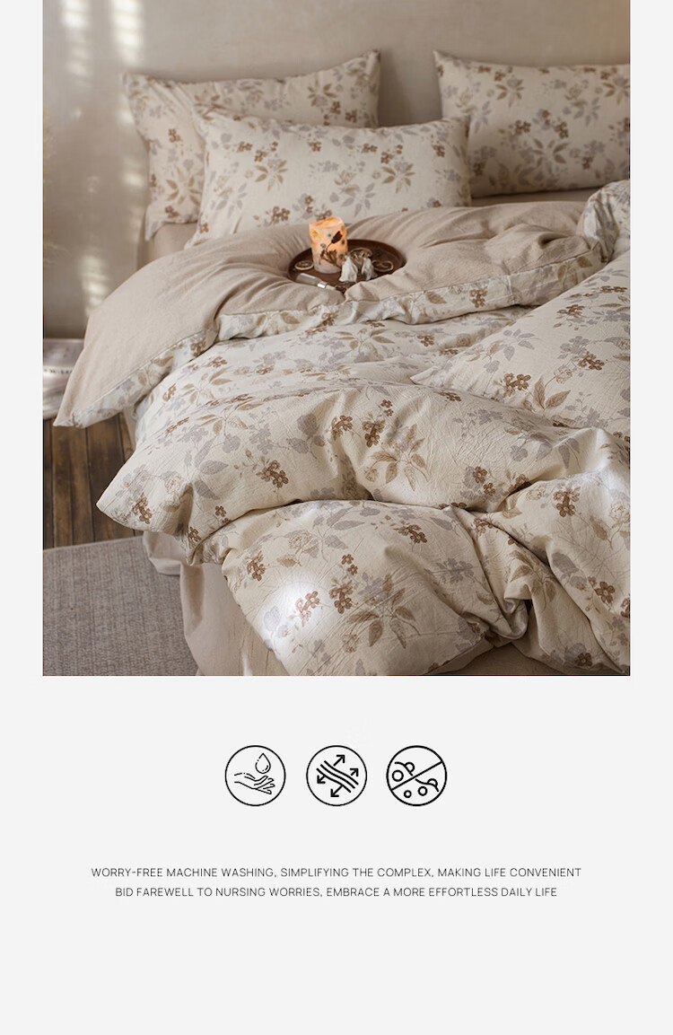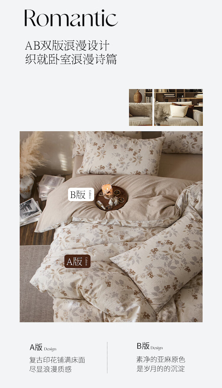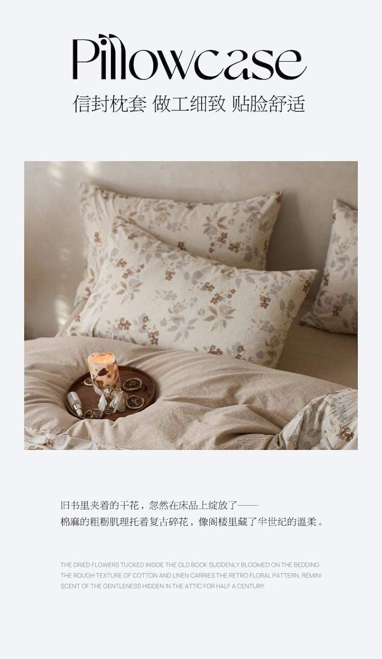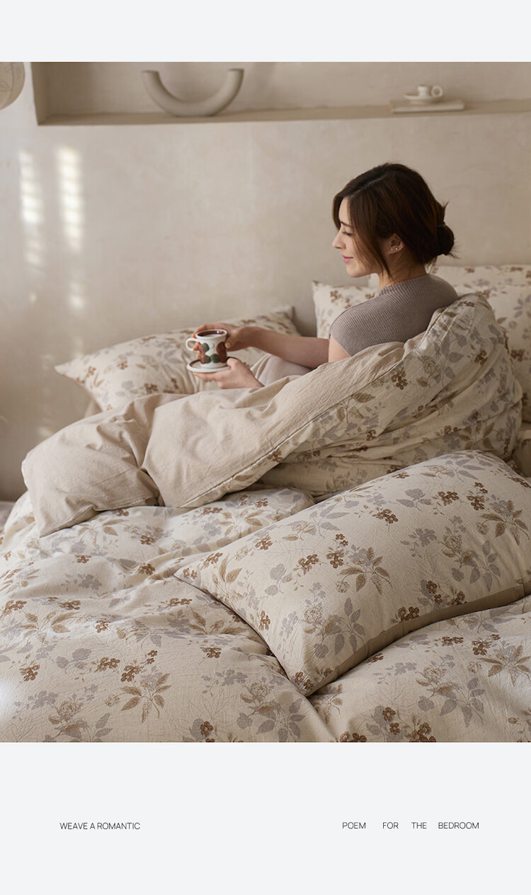 ROLAND LIVE复古风全棉棉麻碎花四件套棉麻被套床单透气柔软四季床上用品 QDS 棉麻碎花套件-花间小憩 1.2米床 床单款 【被套150*200cm】