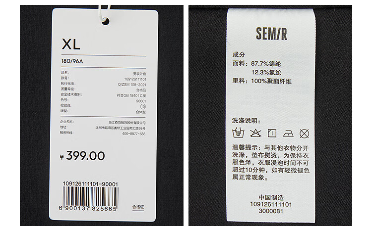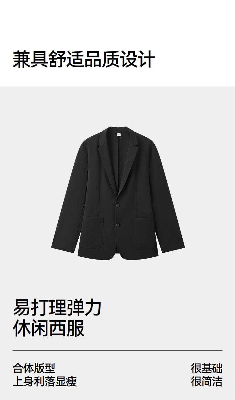 森马(Semir)休闲西服男春季易打理弹力外套2026新款时尚潮流大贴袋上衣 黑色90001 2XL