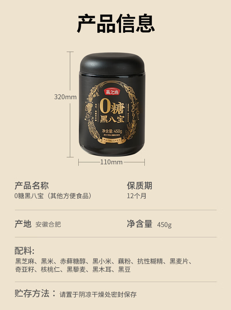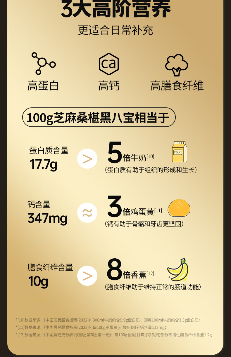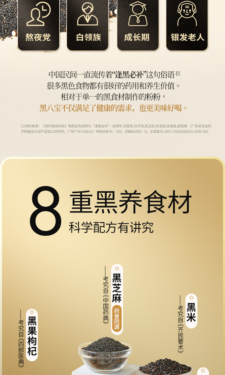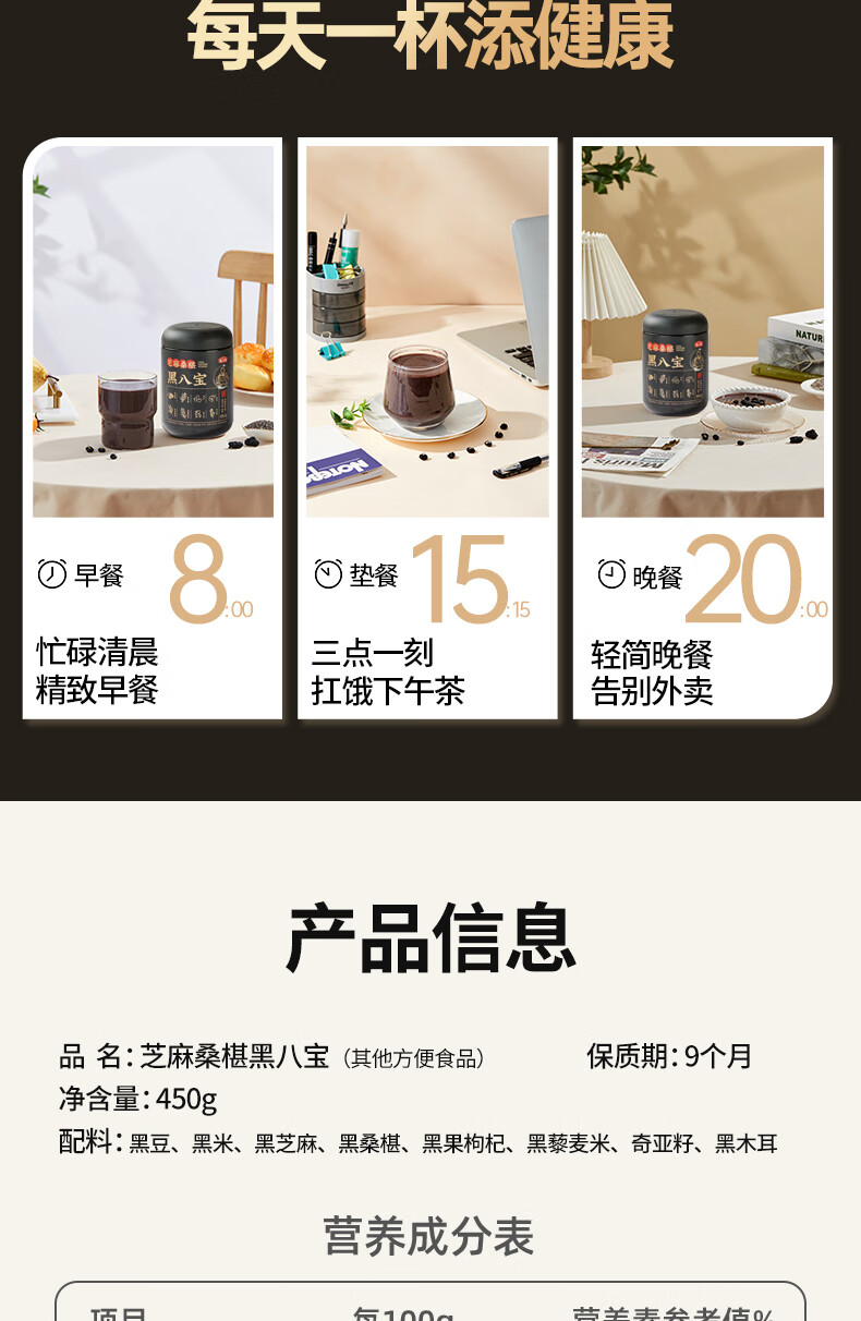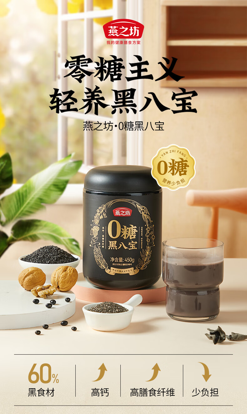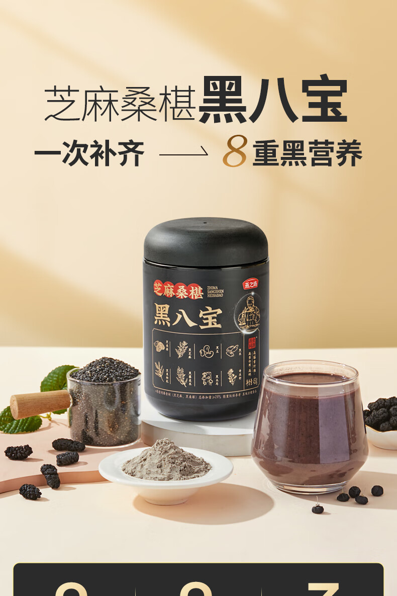 燕之坊芝麻桑葚黑八宝 0糖黑桑葚奇亚籽核桃枸杞黑米黑豆早餐代餐粉即食 【送精美礼袋】黑八宝 450g*3罐 禅食粉