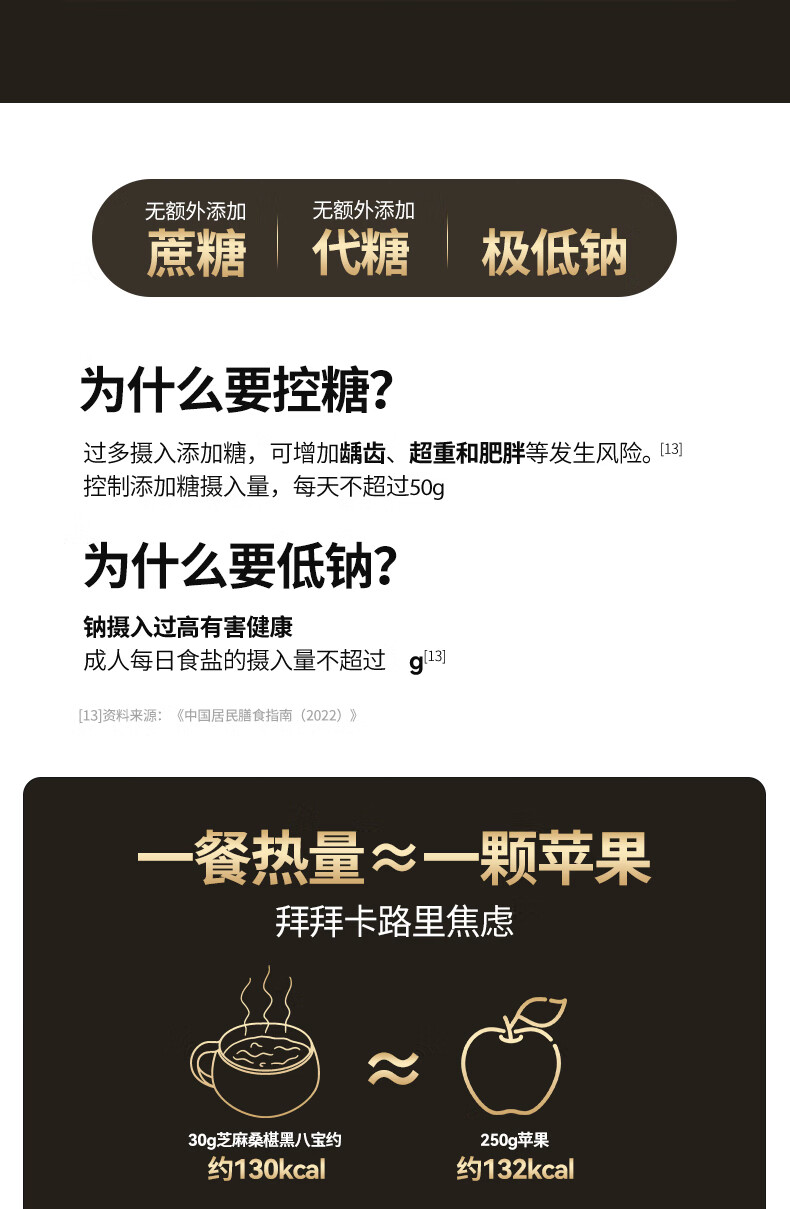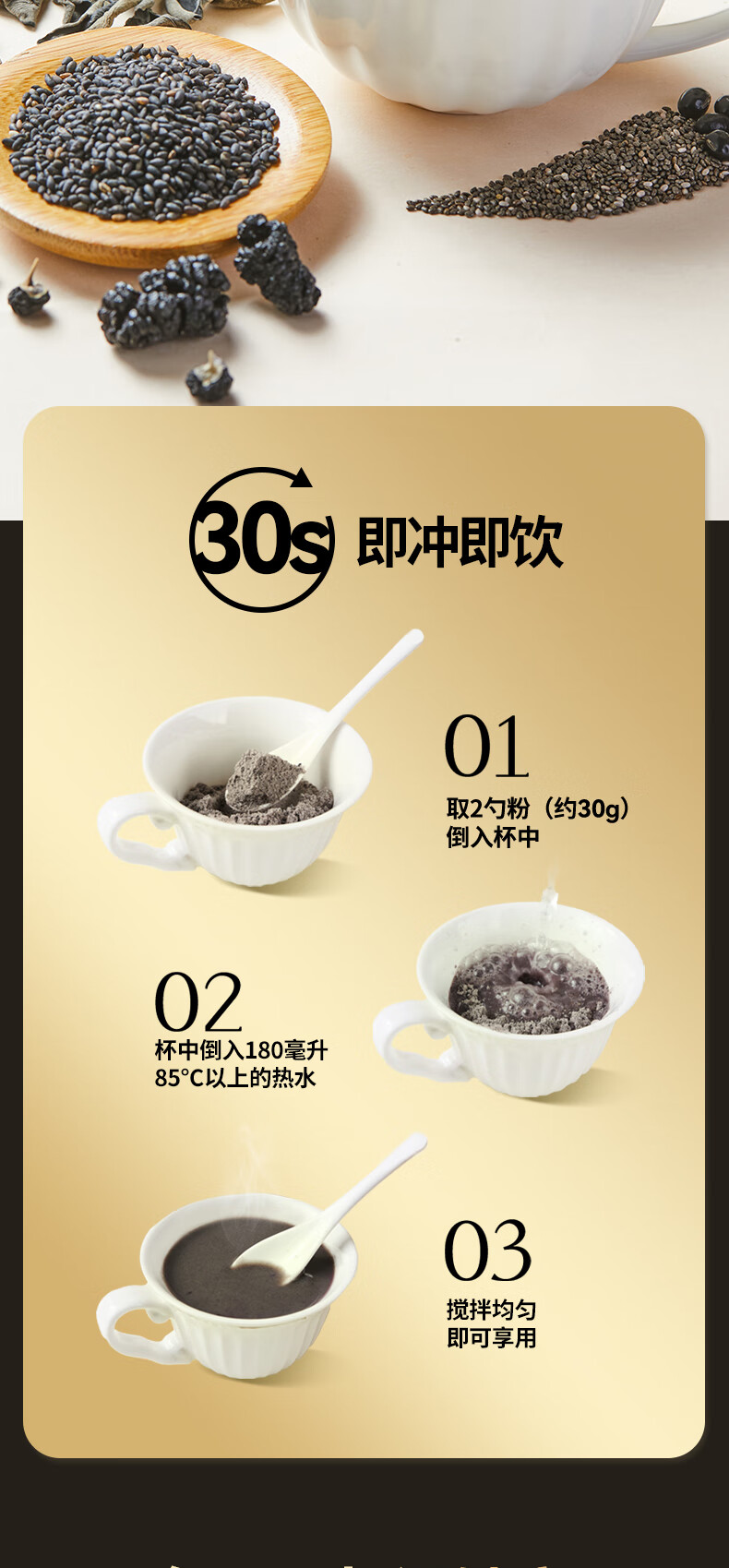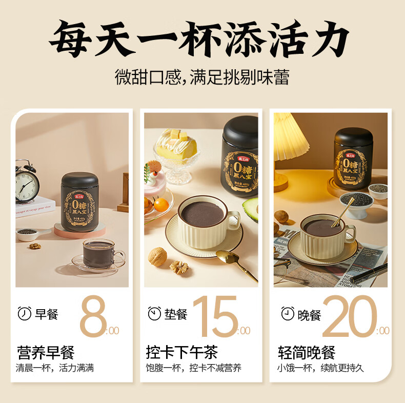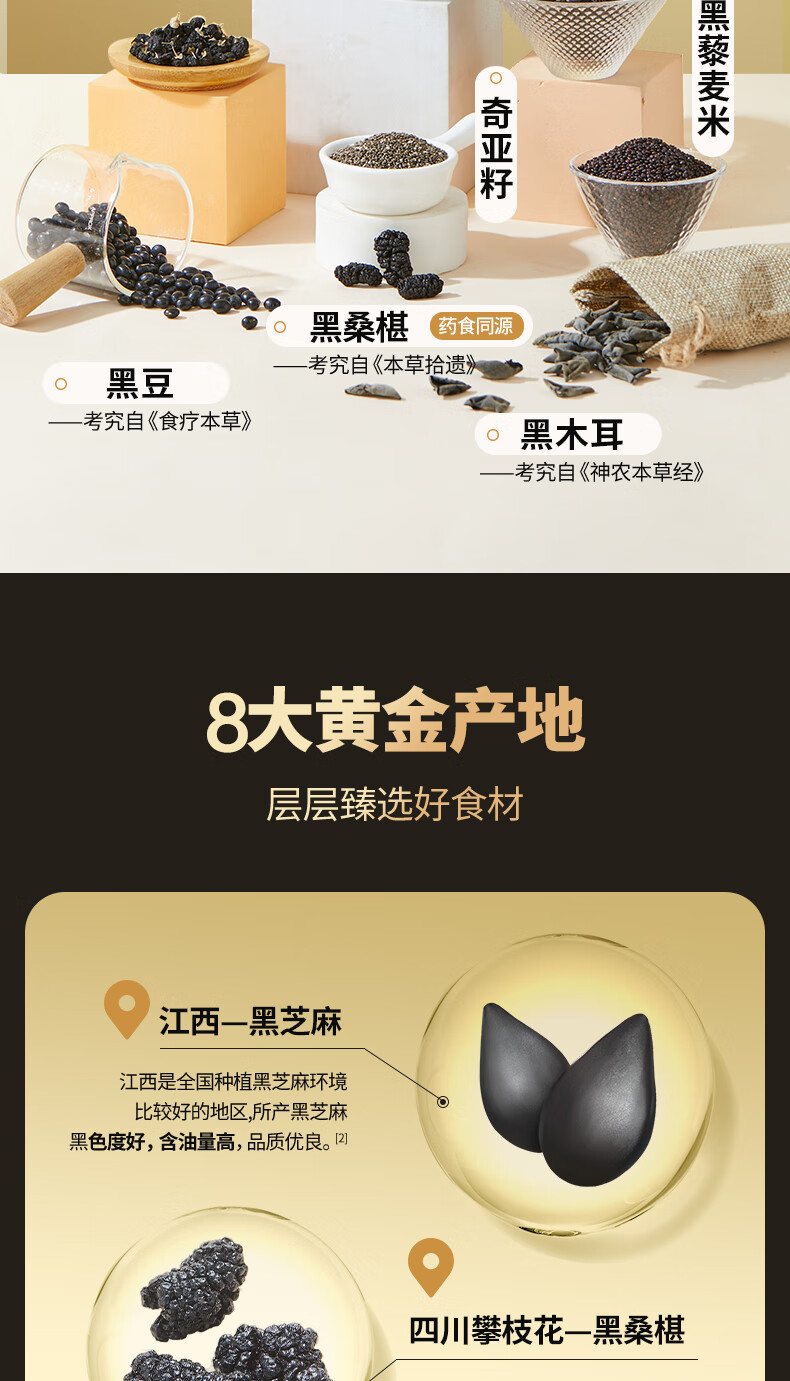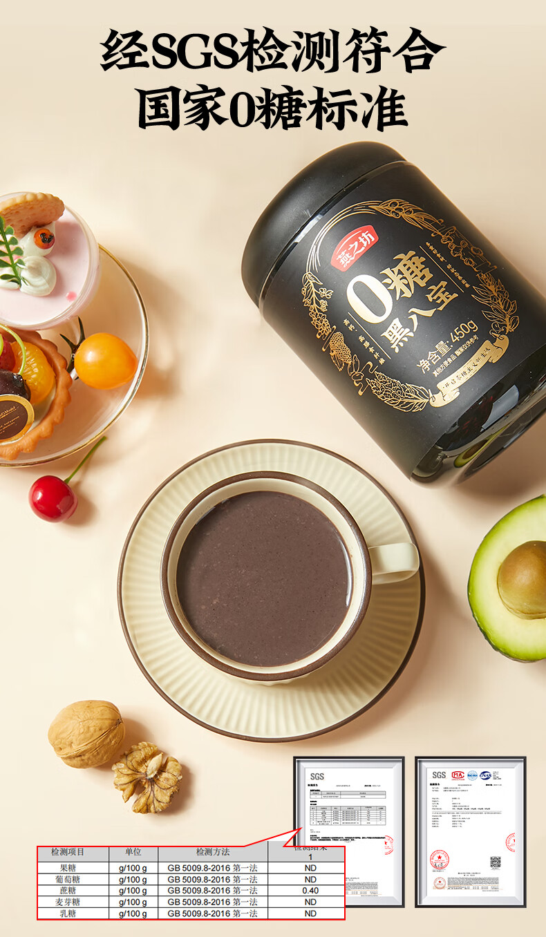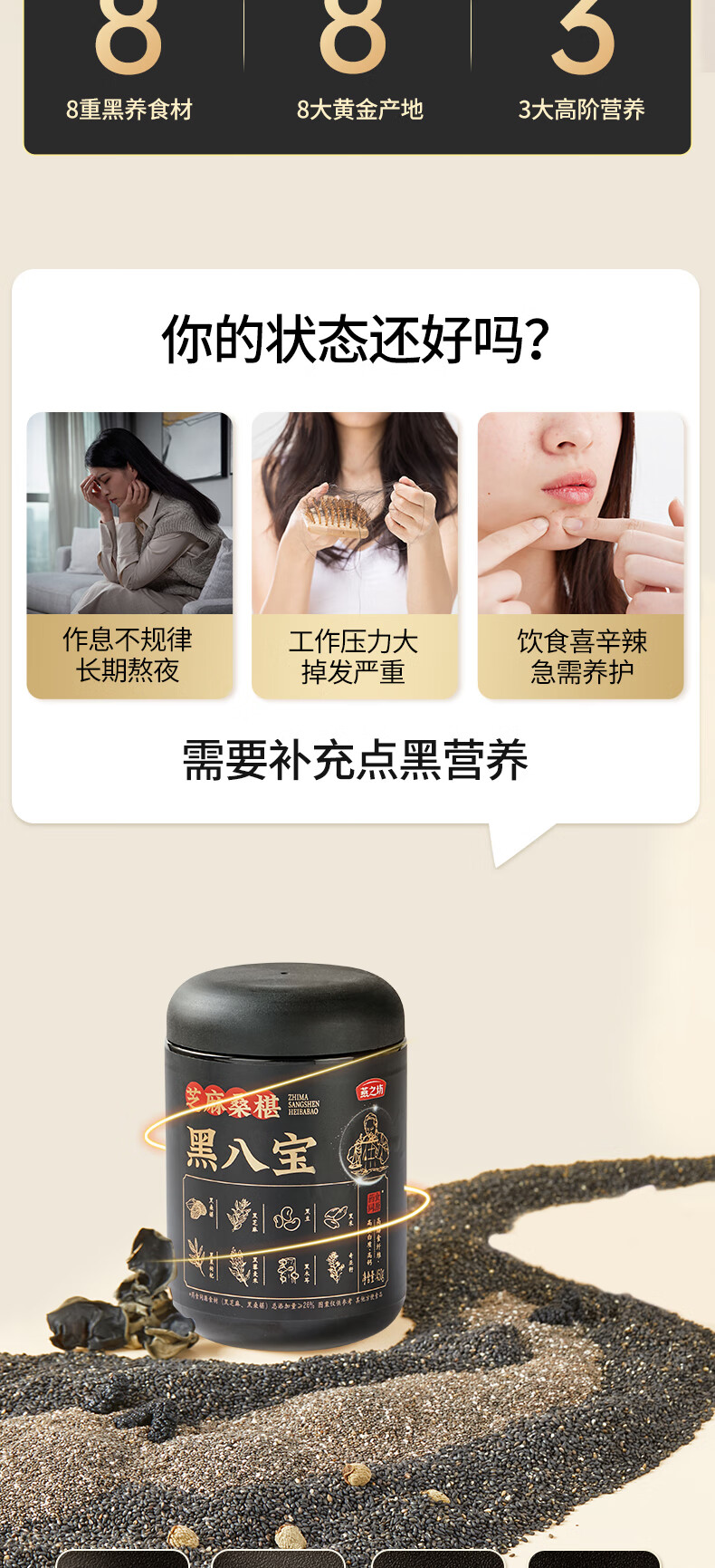 燕之坊芝麻桑葚黑八宝 0糖黑桑葚奇亚籽核桃枸杞黑米黑豆早餐代餐粉即食 【送精美礼袋】黑八宝 450g*3罐 禅食粉