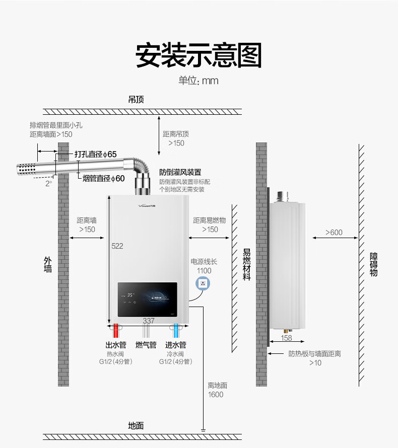 万和小宇宙【热销爆款WH1 13L】天然气水气双调恒温 低水压启动 节能省气 上门安装 13WH1燃气热水器
