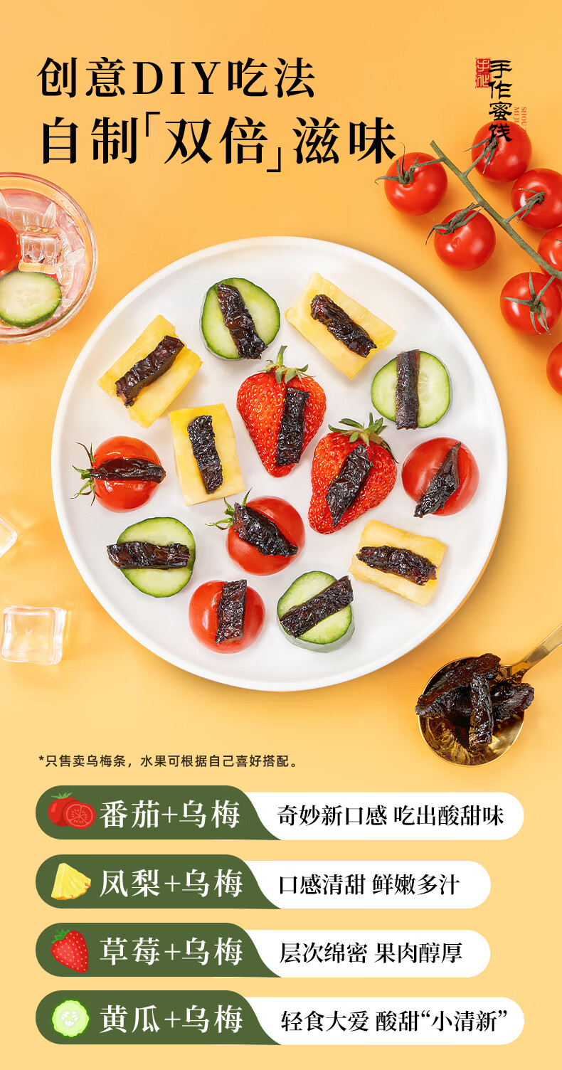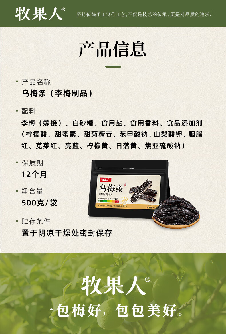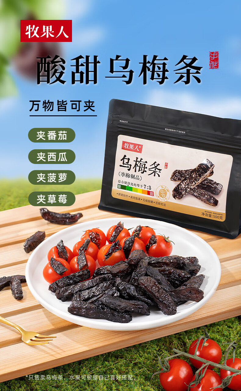 牧果人乌梅条 肉无核乌梅干夹水果圣女果番茄菠萝蜜饯果干休闲零食 乌梅条500g/袋