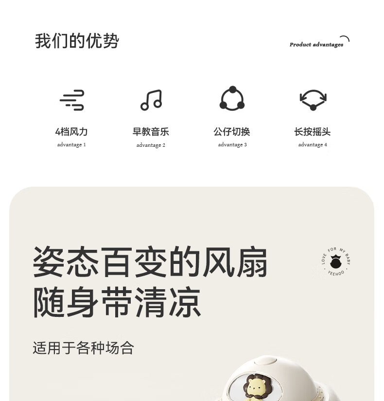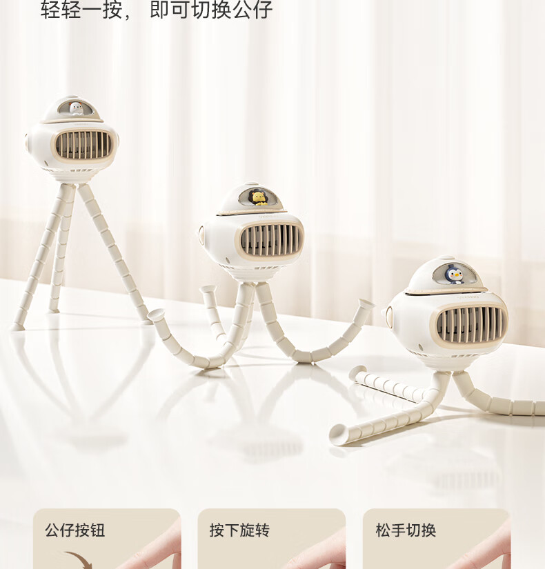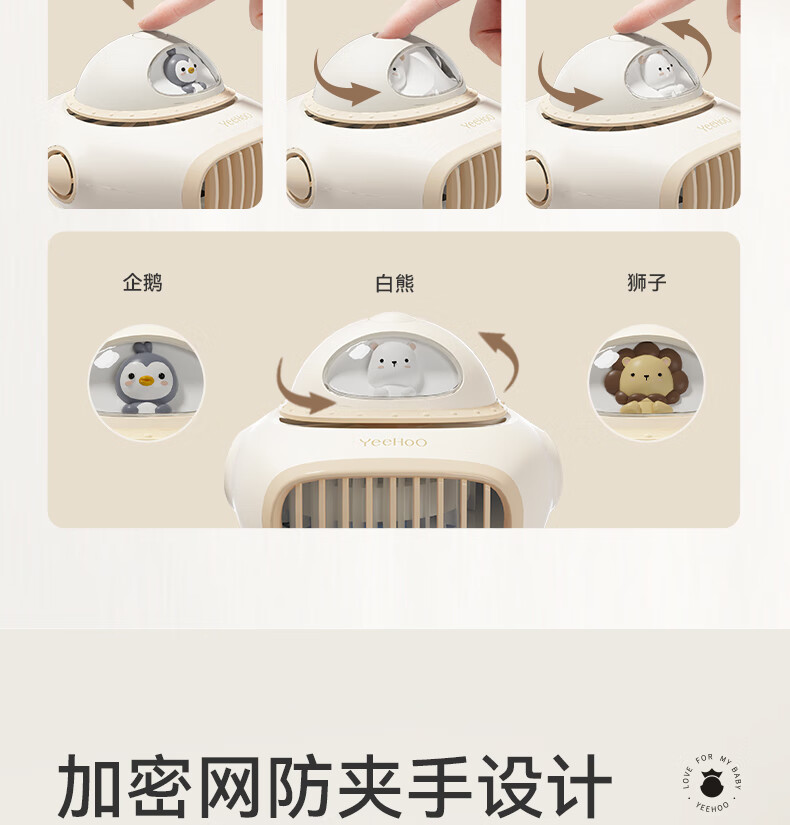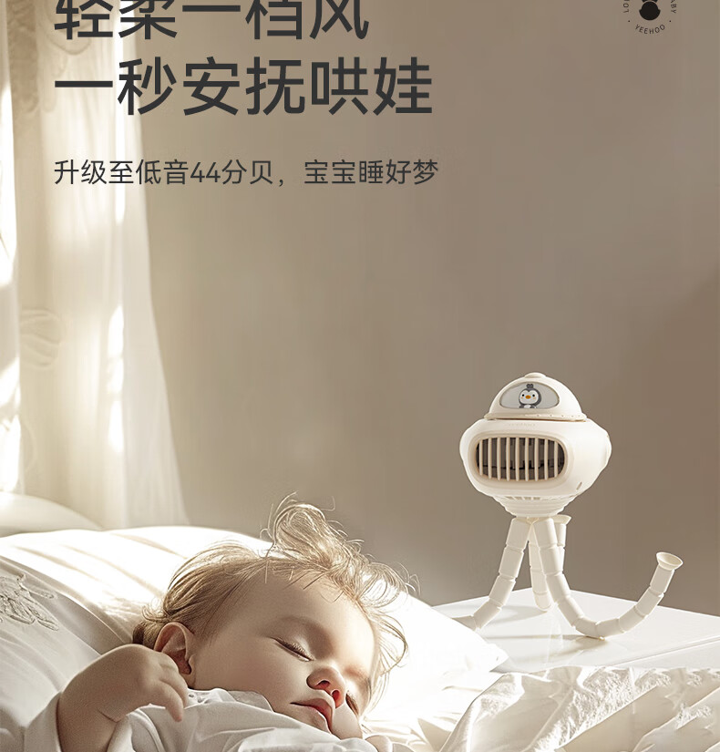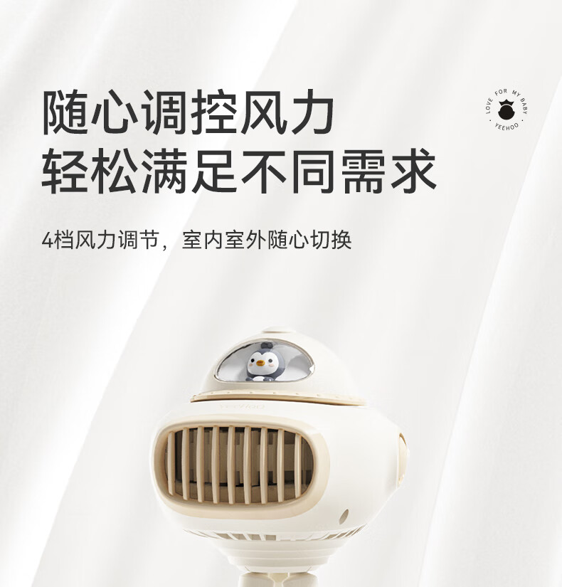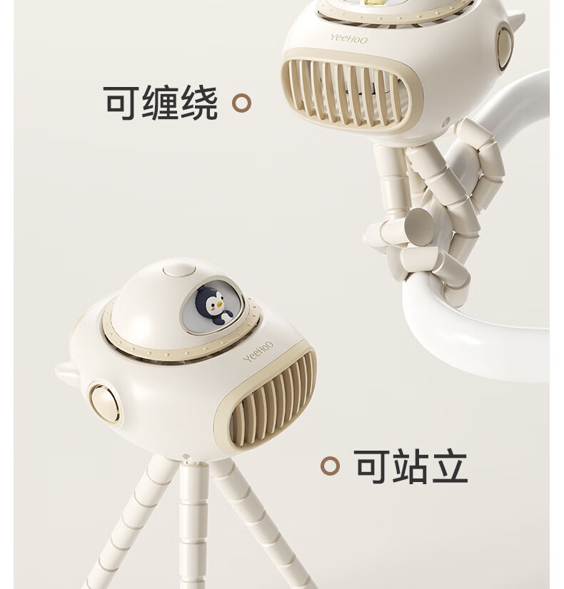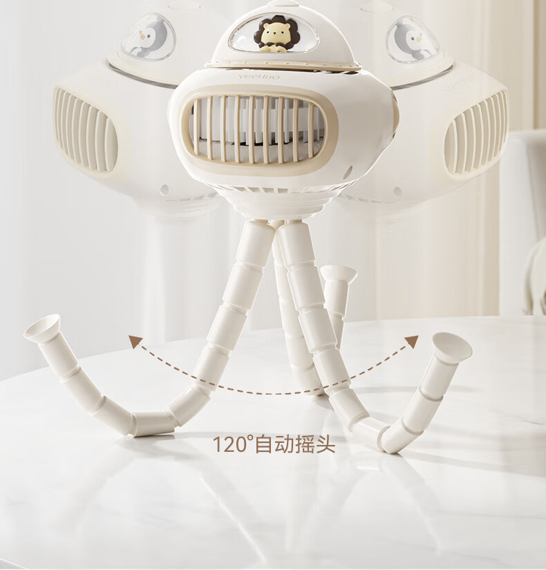 英氏(YEEHOO)风扇自动摇头婴儿手推车USB小风扇八爪鱼便携夹子式USB充电小风扇
