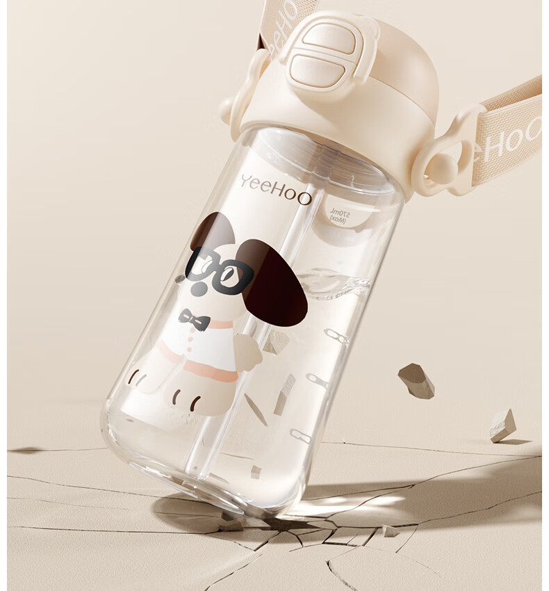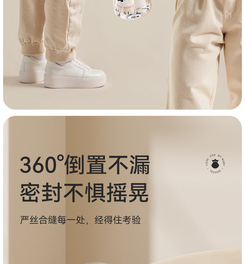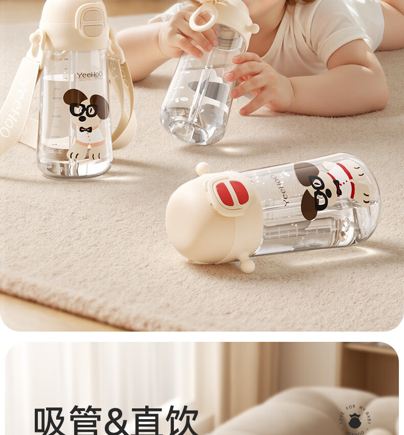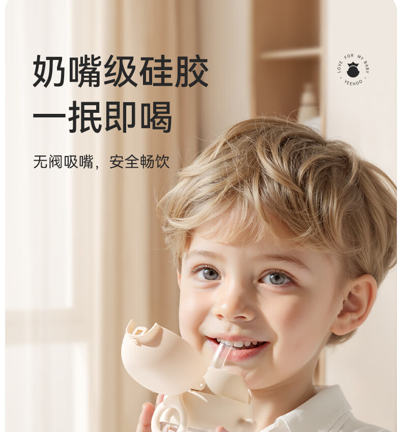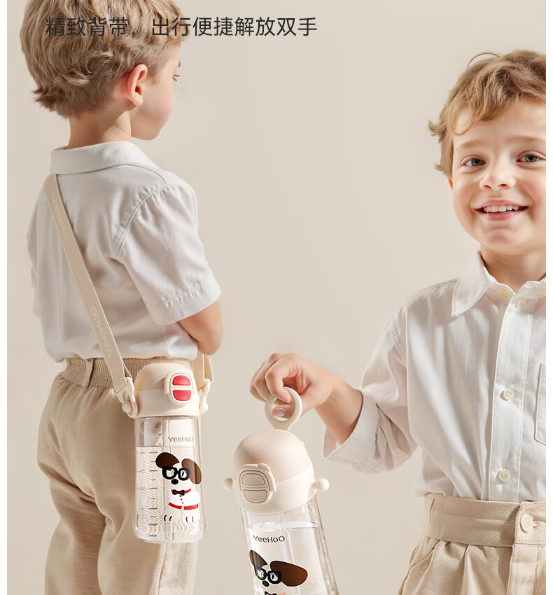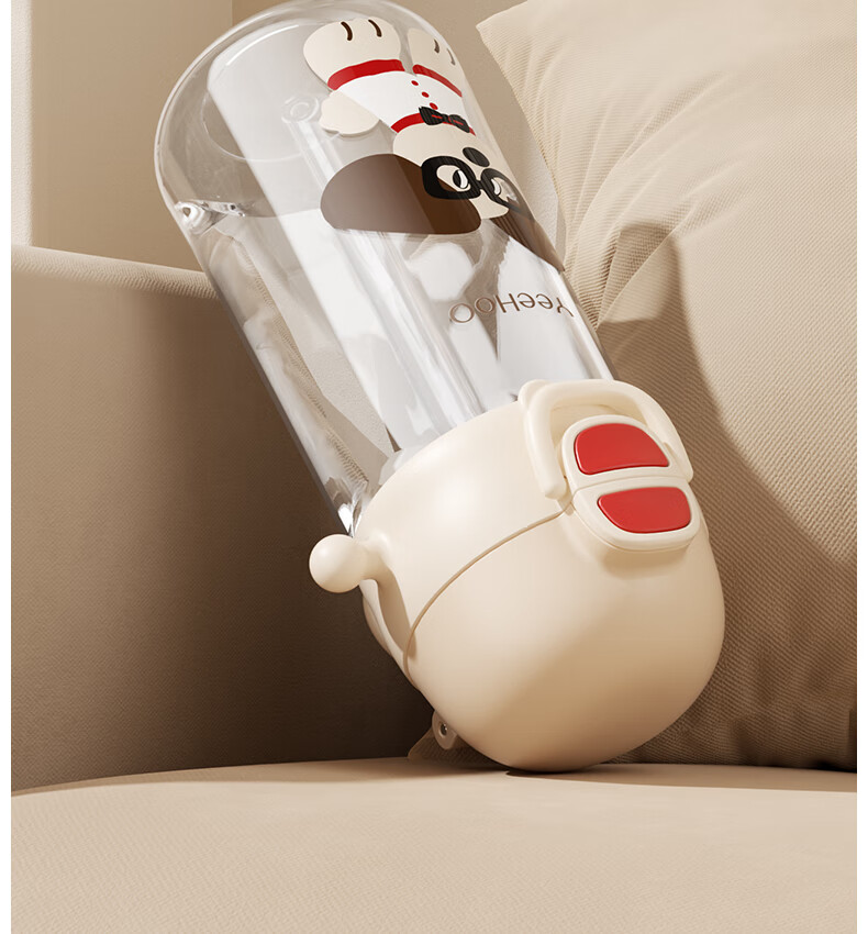 英氏(YEEHOO)儿童水杯男女孩直饮口小学生上学吸管杯子便携防摔大容量-红色