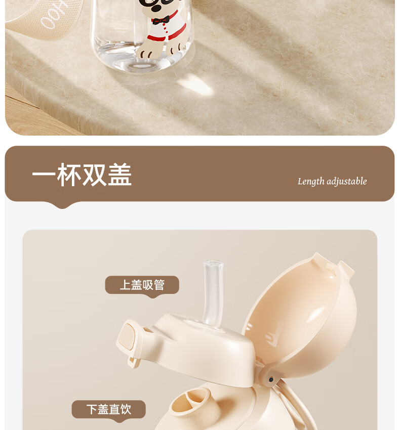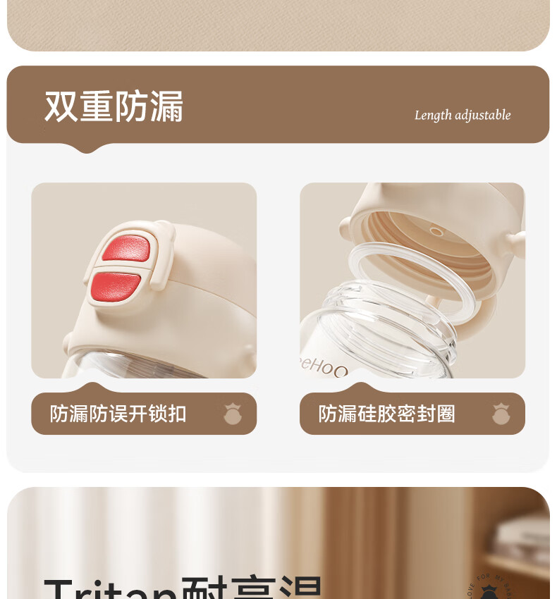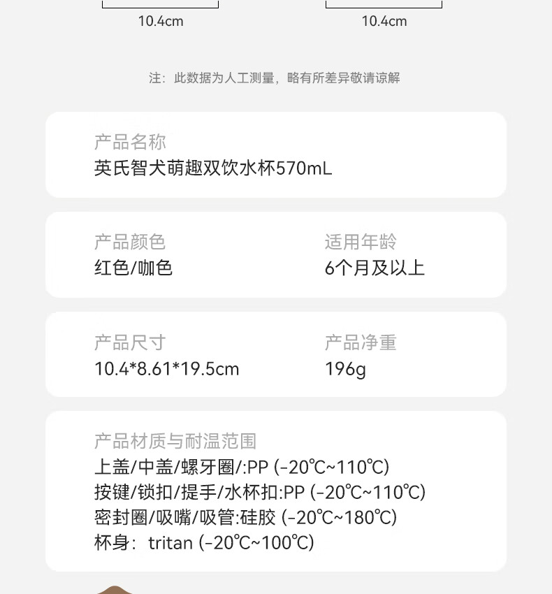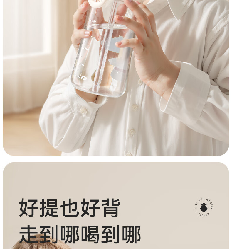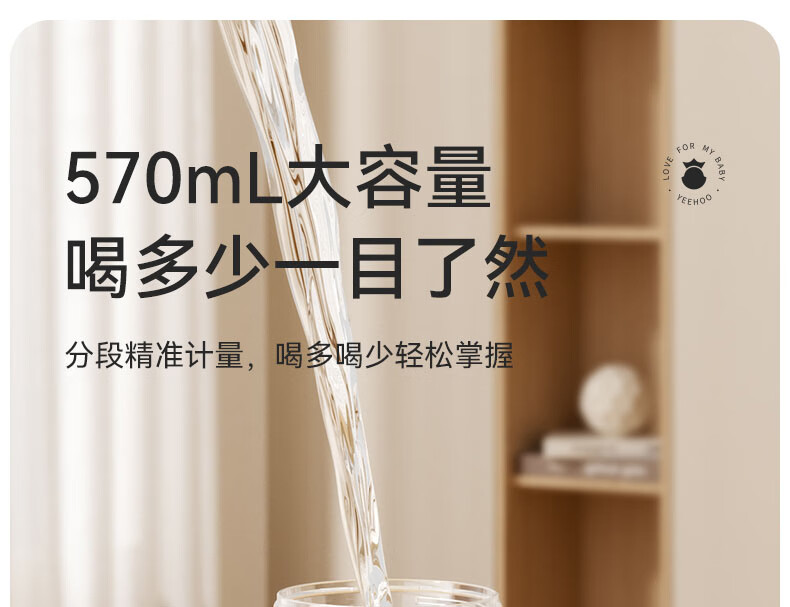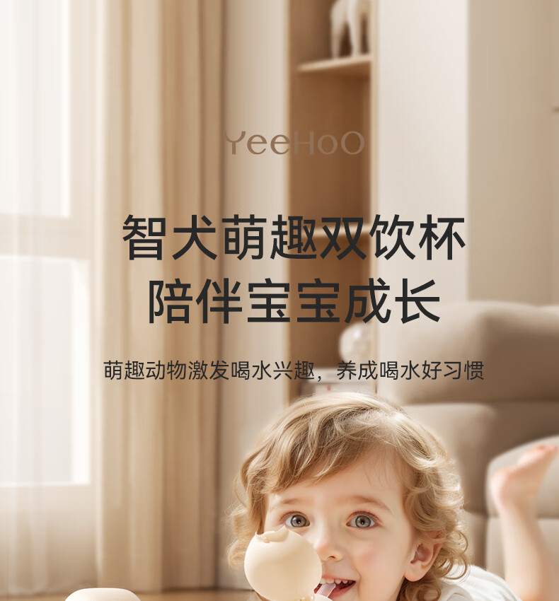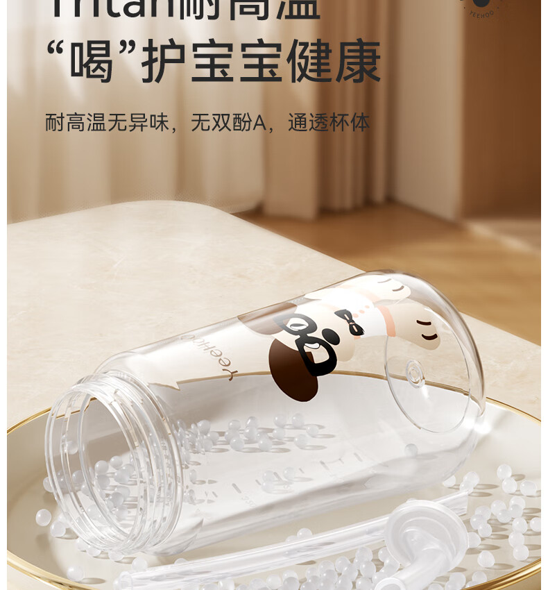 英氏(YEEHOO)儿童水杯男女孩直饮口小学生上学吸管杯子便携防摔大容量-红色