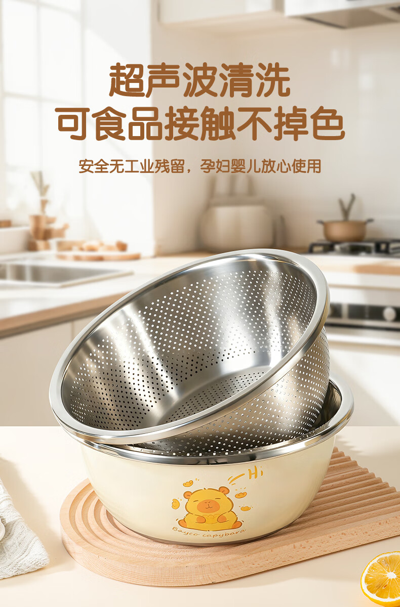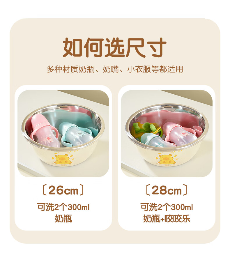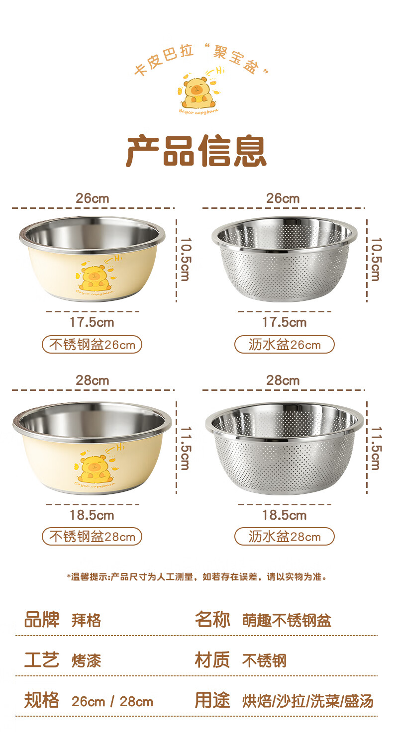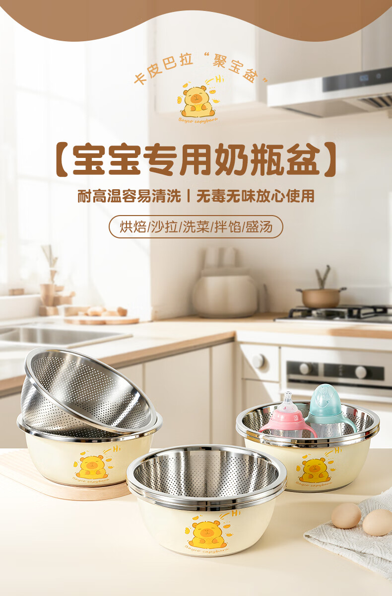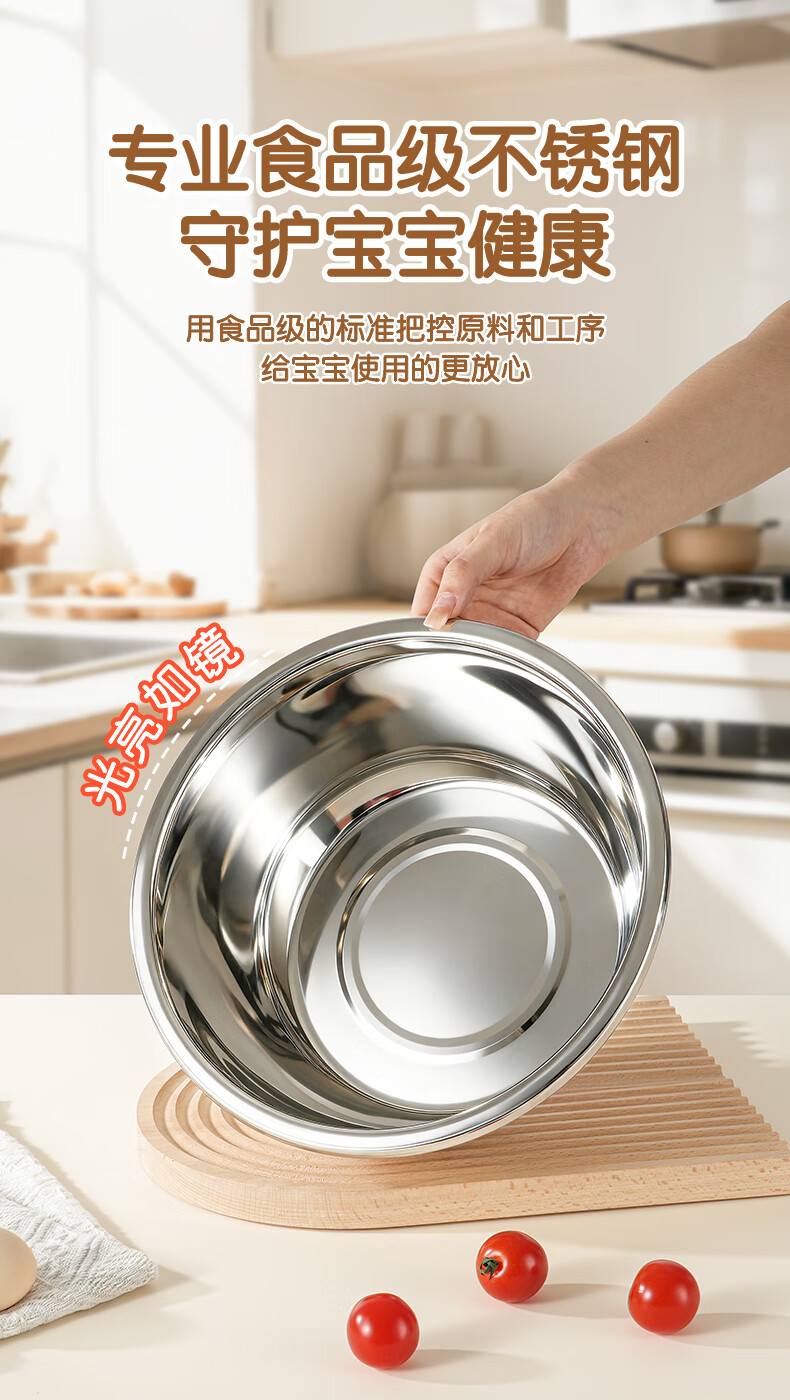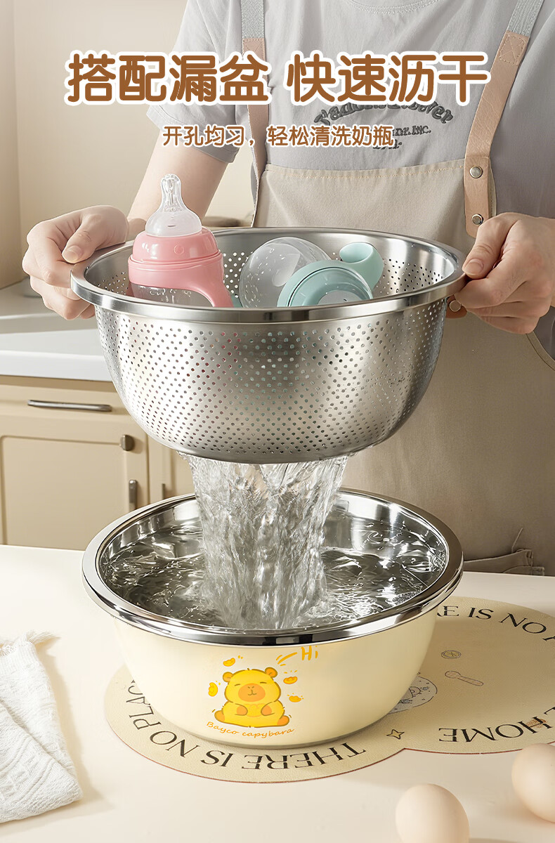 拜格(bayco)不锈钢盆食品接触级洗菜揉面盆洗奶瓶盆奶瓶清洗盆和面BX27672