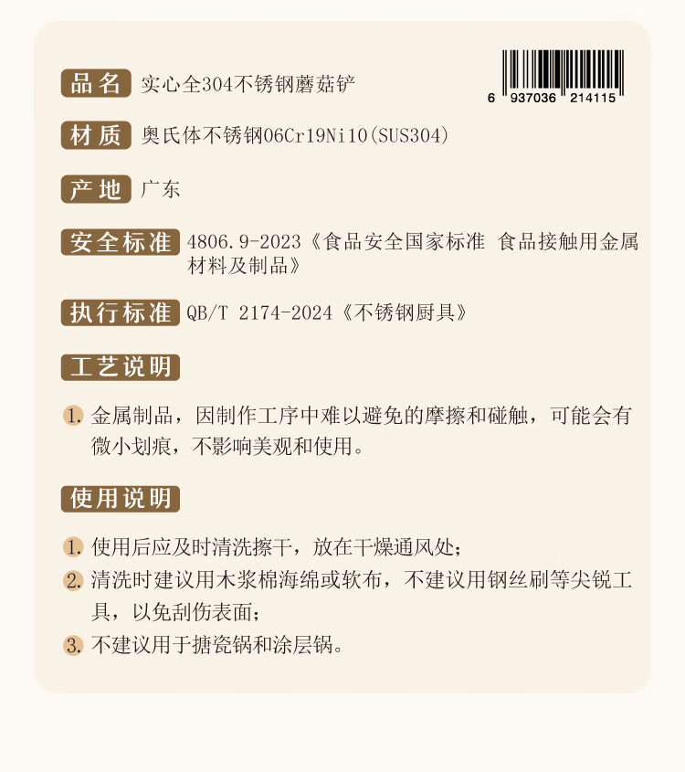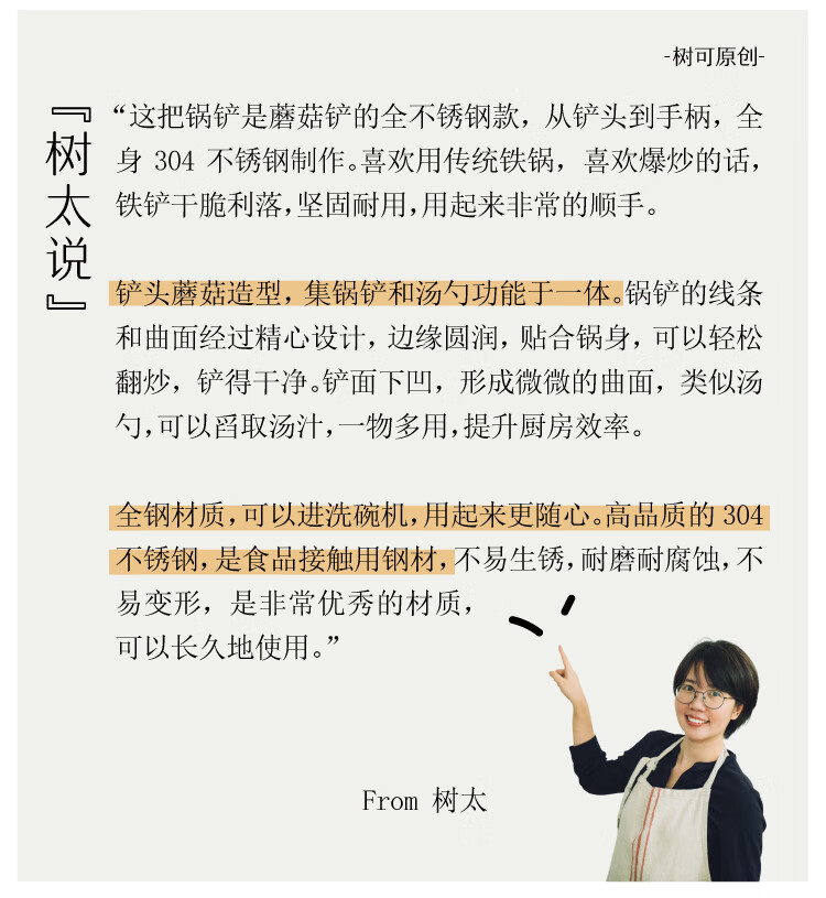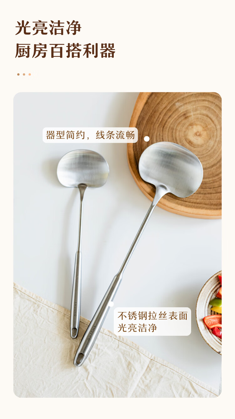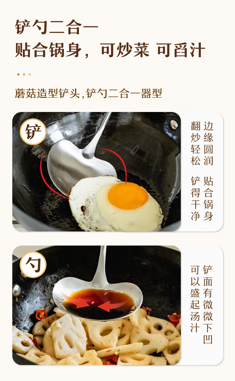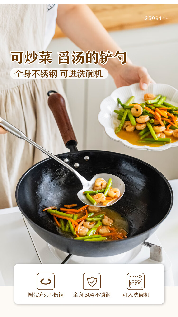 树可304不锈钢蘑菇锅铲炒菜铲子勺炒勺家用铲食品级铁铲中式铁锅铲勺