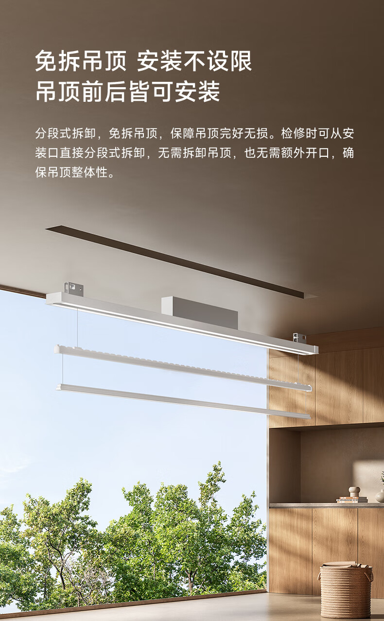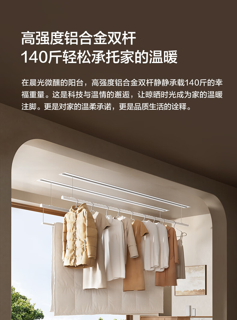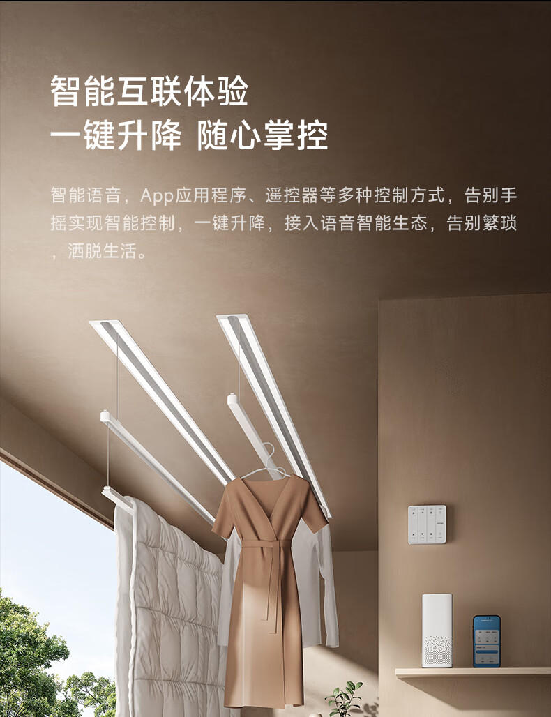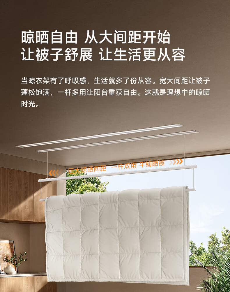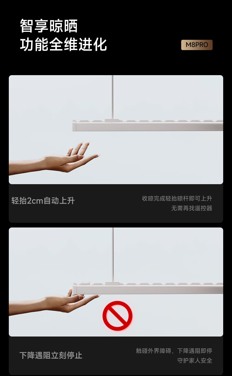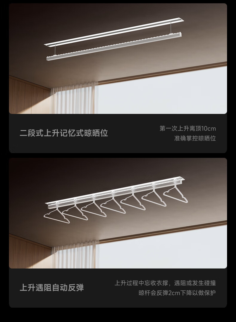 卡瑞琪(COURAGE)电动晾衣架隐形阳台隐藏式晾衣架薄晾衣杆双杆 语音2米+被杆M8
