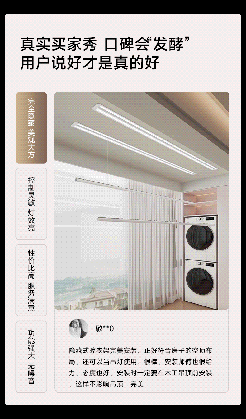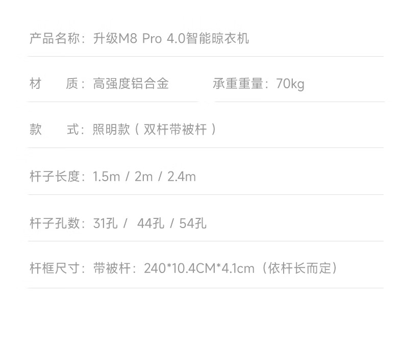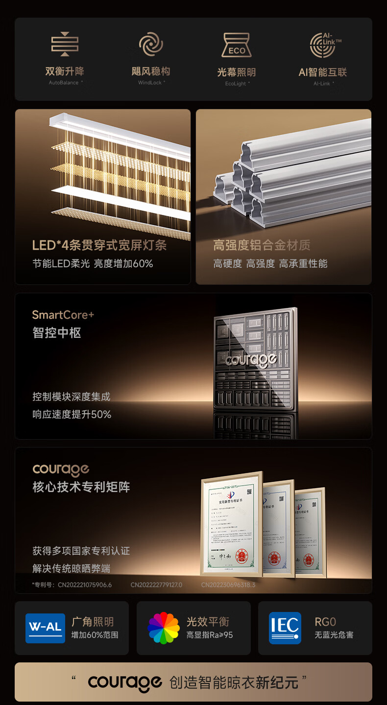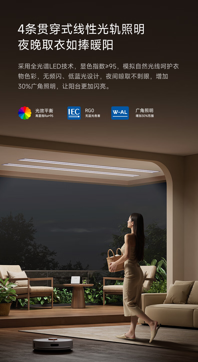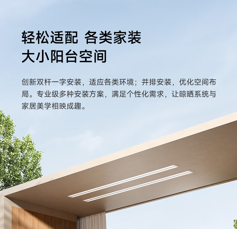 卡瑞琪(COURAGE)电动晾衣架隐形阳台隐藏式晾衣架薄晾衣杆双杆 语音2米+被杆M8